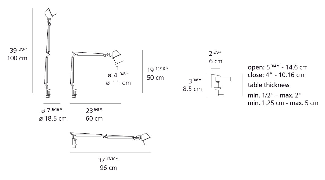 Constructed from high-quality aluminum for the arms and diffuser, with polished die-cast aluminum joints and stainless steel cables, this UL-listed lamp is built for durability and timeless appeal. Its integrated clamp base offers space-saving installation on various surfaces. With global plug compatibility, the Tolomeo Midi LED Table Lamp is an ideal lighting solution for a range of environments, including professional offices and home studies where targeted task lighting is essential, bedrooms for comfortable reading, living rooms for accent or ambient light, and hotel spaces seeking a touch of modern Italian elegance and superior functionality.
