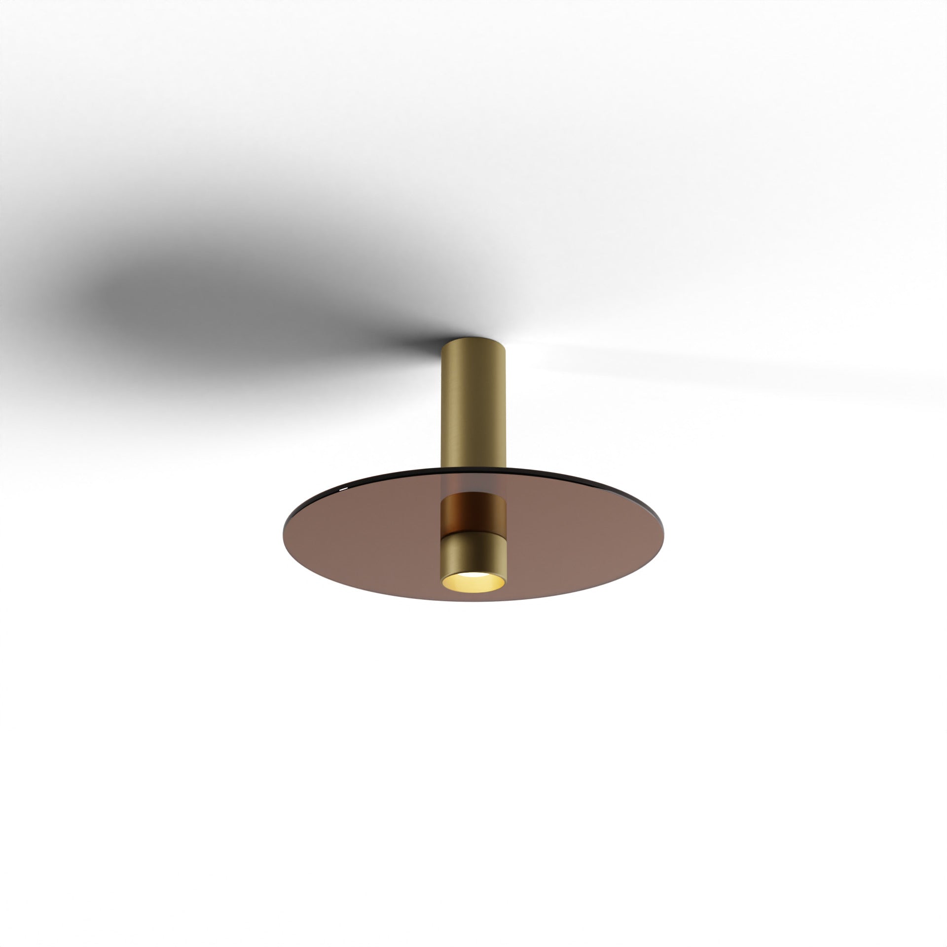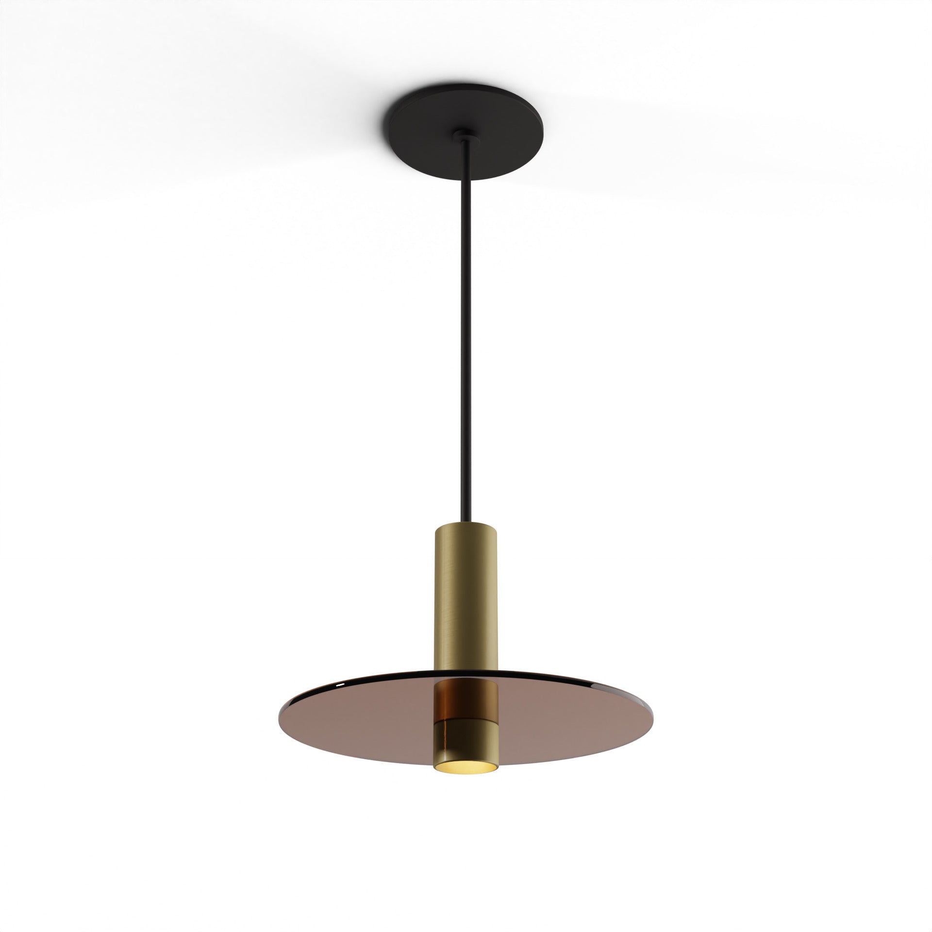 Koncept Combi Pendant 6" Brass Matte Black Canopy 9" Glass Plate Tea Brown Attachment Suspension Flush Mount 2-in-1
