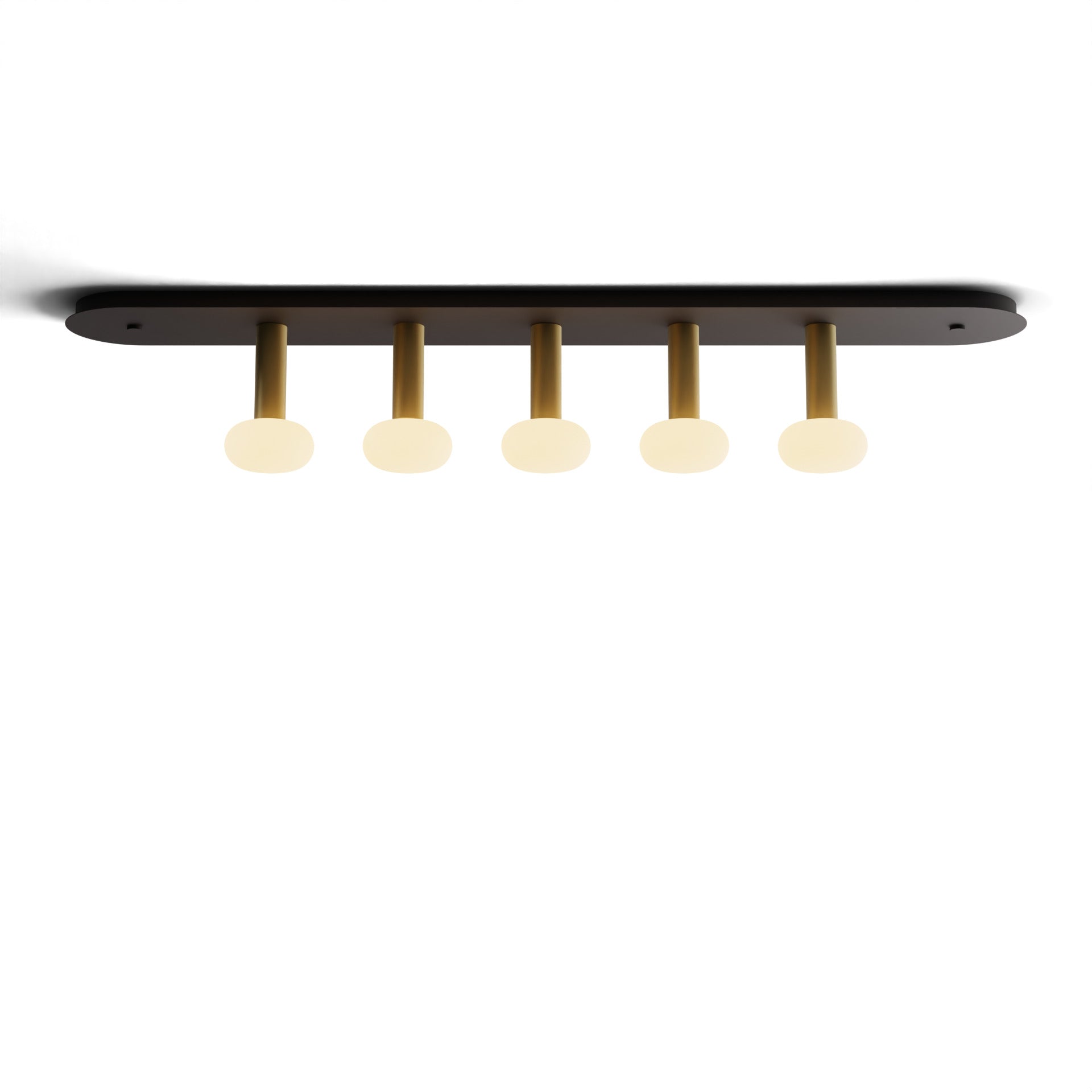 Koncept Combi Pendant 6" Linear 5 Combo Brass Matte Black Canopy Glass Ball Attachment Suspension Flush Mount 2-in-1 | CMP-L5-S-06-BRS+NA+GLB