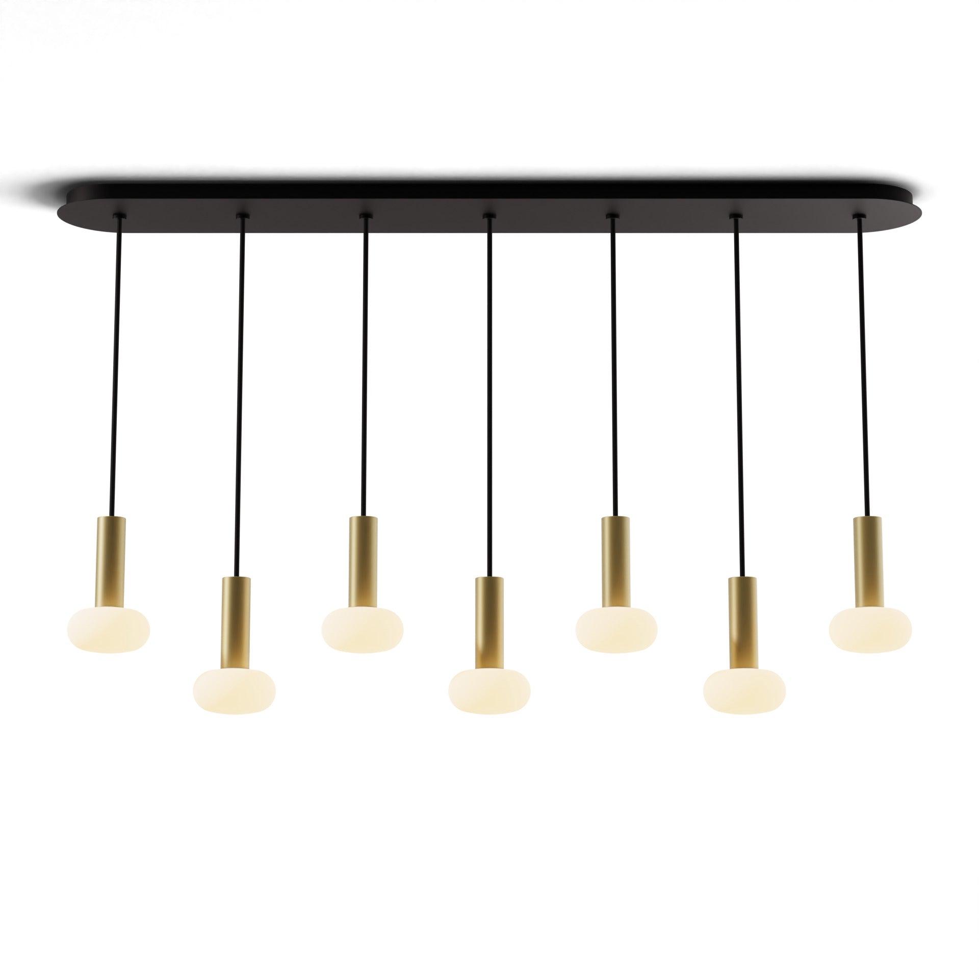 Koncept Combi Pendant 6" Linear 7 Combo Brass Matte Black Canopy Glass Ball Attachment Suspension Flush Mount 2-in-1 | CMP-L7-S-06-BRS+NA+GLB