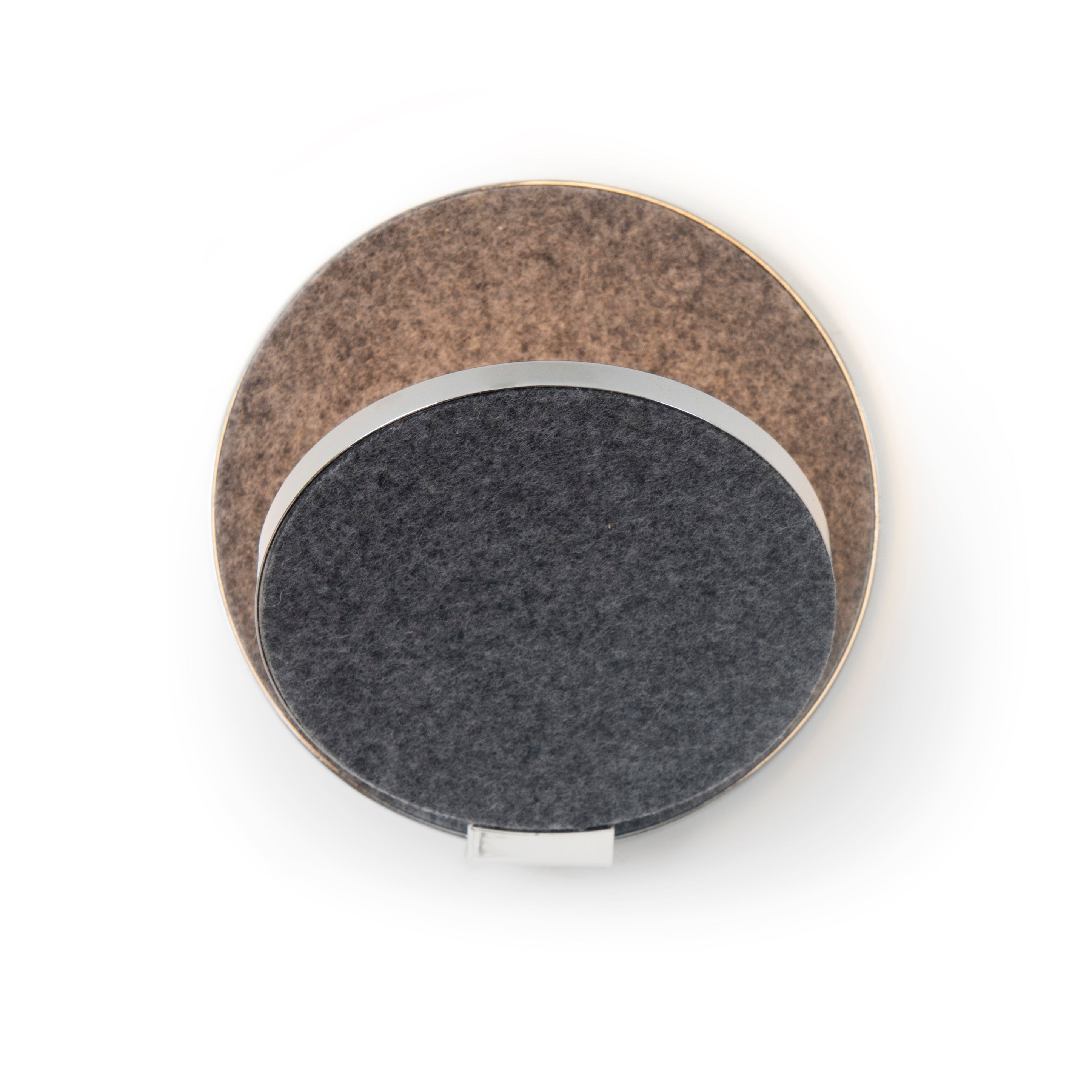 Designer/s: Kenneth Ng, Edmund NgWith a simple circular silhouette and an understated design, Gravy Wall Sconce fits any interior space. The hardwire version of this sconce allows the cord to be hidden, promoting a clean aesthetic. The joint design cleverly incorporates full range articulations, allowing it to be used for ambient lighting, task lighting or any other imaginable purposes. The swiveling shade shines where you need it, and controlling the light is easy – simply tap the center of the LED head’s underside to turn on or off, and hold to dim or brighten the light. The Gravy sconce comes in a wide selection of interchangeable finishes like felt, chrome, wood veneers, etc. to match your interior spaces perfectly.