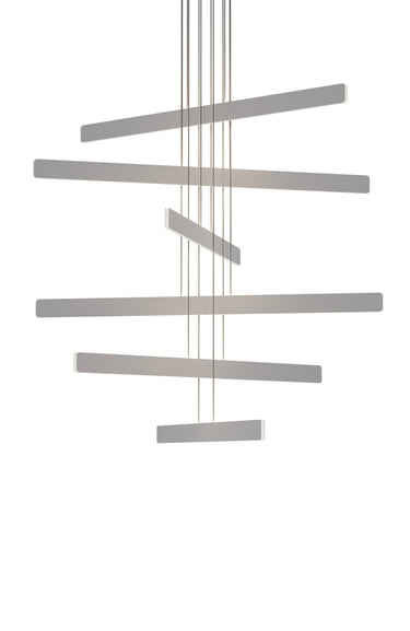 Designer/s: Kenneth Ng, Edmund NgThe exquisite Sub Pendant Circular 6 emits a soft, warm glow from a collection of 6 lights. A continuous line of LED light wraps around each pendant. The barely-there suspending wires (up to 10') and canopy match the silver finish and complete the distinguished profile of a modern classic.