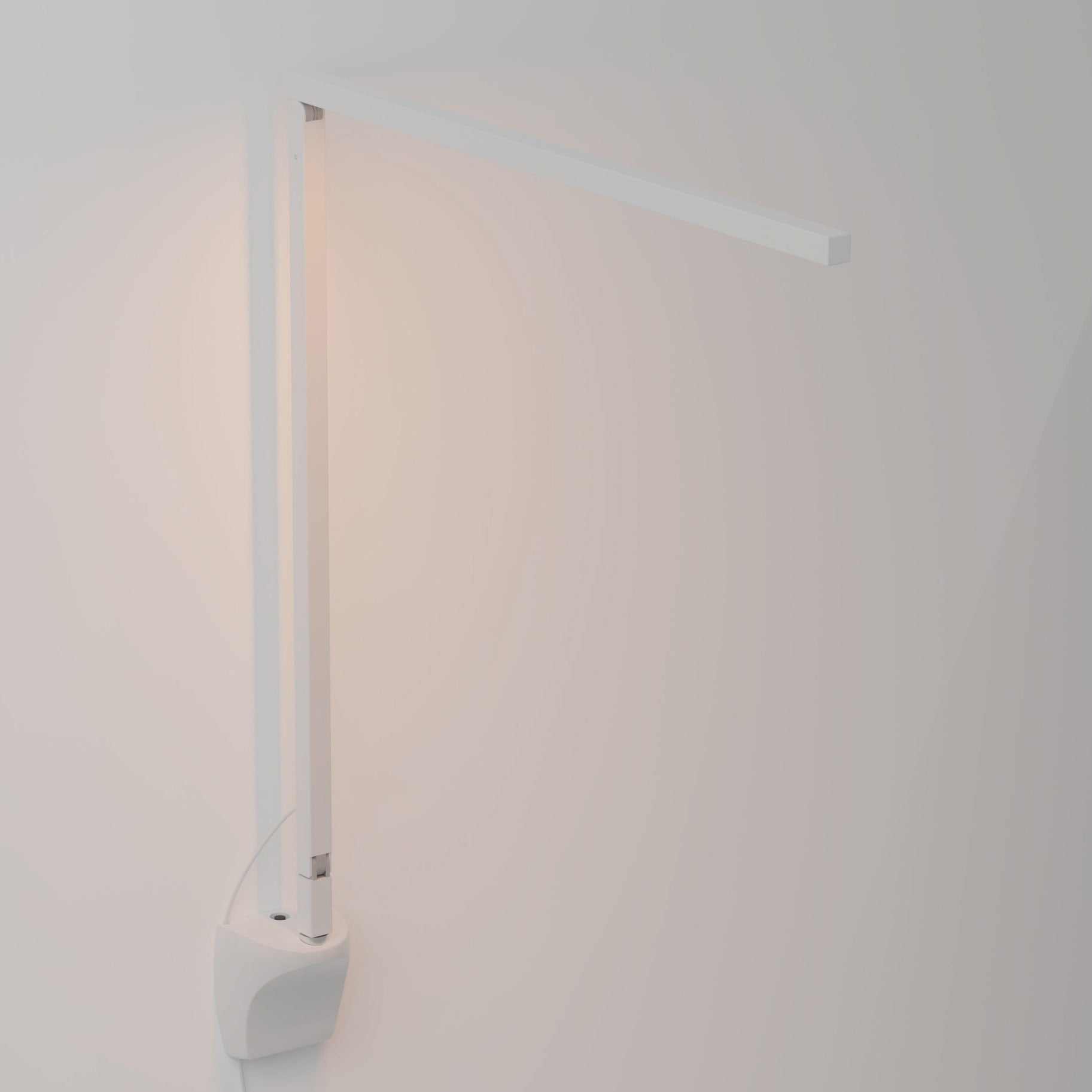 The Z-Bar Solo Gen 4 Wall Light is the ultimate lighting solution for creating a focused and comfortable atmosphere in any room, whether it's your home office, a cozy bedroom, or a high-end hotel suite. This award-winning lamp features a minimalist two-bar design with hidden joints for a clean, streamlined profile. You have complete control over your lighting with the 360-degree rotating and spinning head, which allows you to precisely aim the 8.8W integrated LED module for bright, even light with minimal harsh shadows. Easily adjust brightness and turn the lamp on or off using a simple touchstrip dimmer located on the lamp head. Built with environmentally friendly, fully recyclable aluminum and water-based paint, this energy-efficient fixture is designed to last over 60,000 hours. The Z-Bar Solo Gen 4 offers versatile mounting options including hardwired wall mount, or plug-in slatwall and wall mounts, making it a perfect fit for a variety of applications.