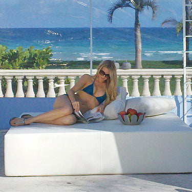 The La-Fête Playpad 8 is a bold, modern interpretation of a resort-style bed, designed by Angie Thornbury to bring luxurious comfort to poolside lounges, patios, or even indoor spaces. With its generous 8-foot square footprint, this piece invites sunbathing, stargazing, or lively outdoor entertaining in style. Built from all-weather materials and marine-grade vinyl, the Playpad 8 delivers plush comfort, commercial-grade durability, and sleek minimalism—all in one iconic silhouette.