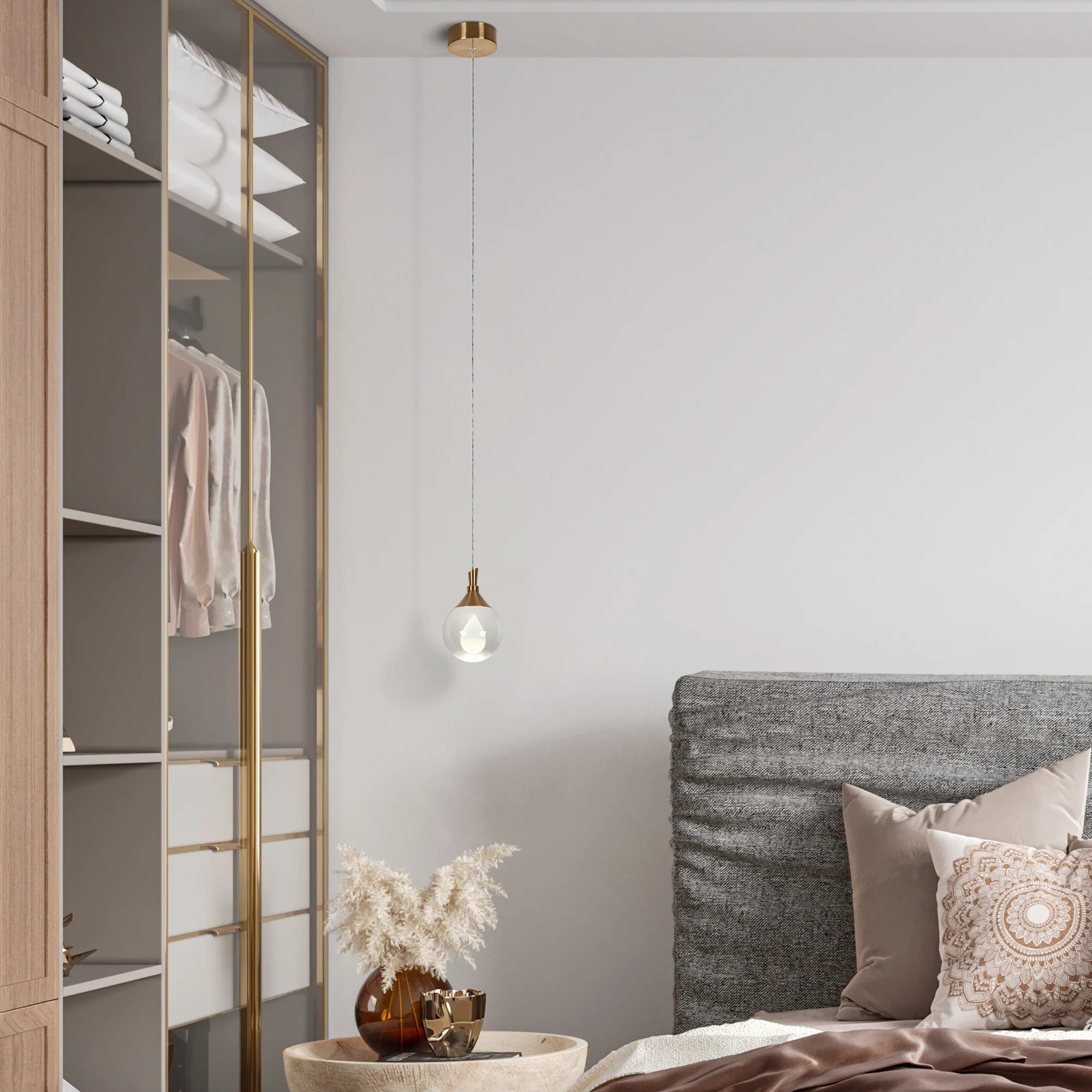 Dsenlupor 1-Light Modern Brass LED Glass Pendant Light
