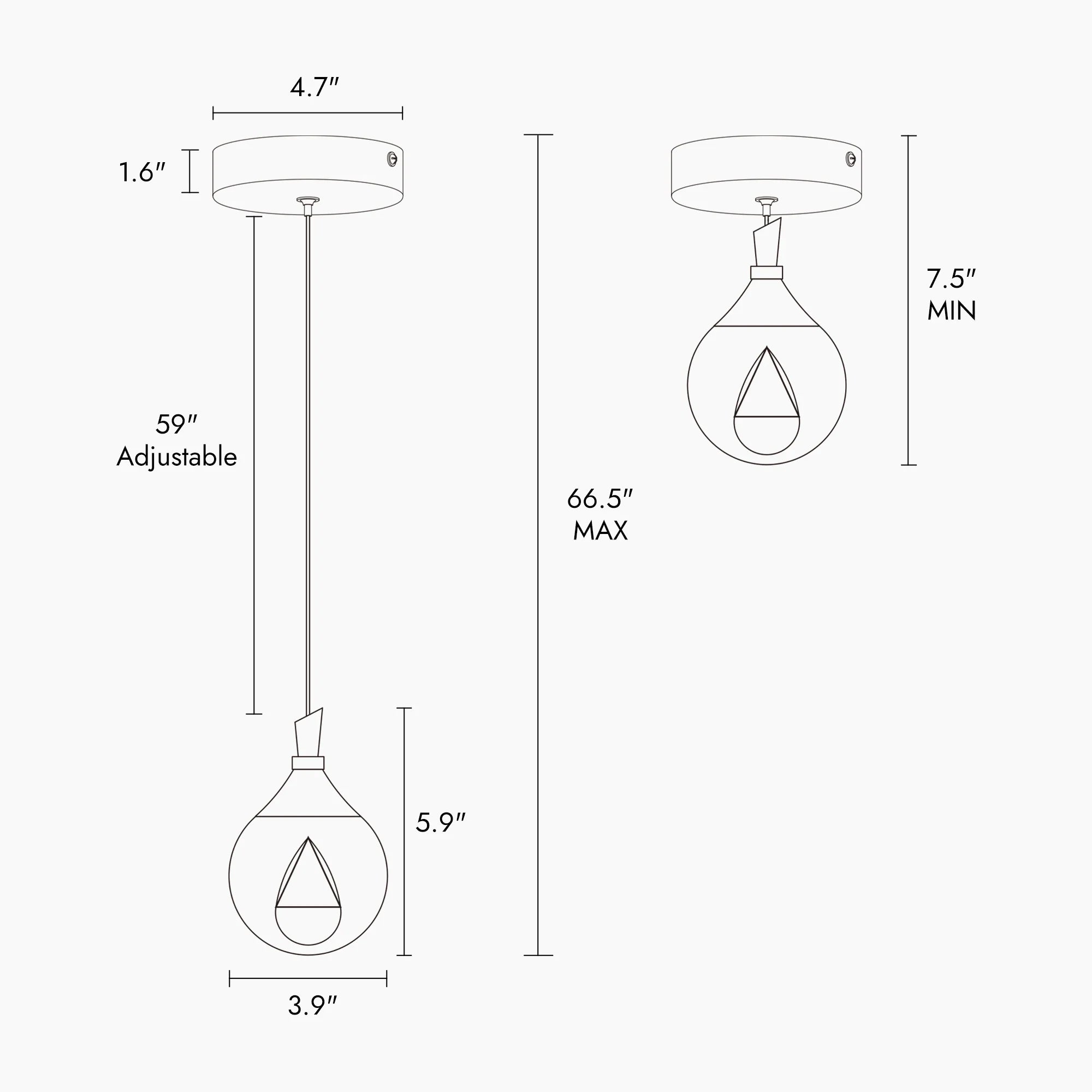 - Minimum Hanging Height: 7.5"