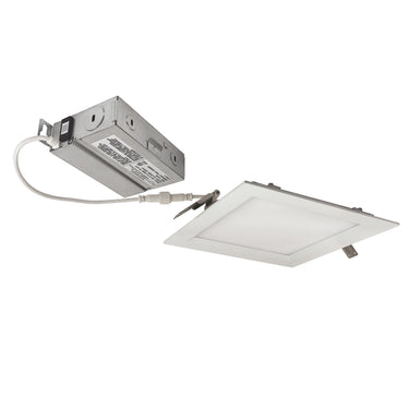 6" Square E-Series FLIN are a thin can-less recessed downlight for easy installation in new construction or remodel applications. Luminaires include a selectable color temperature switch located on the junction box of each luminaire with a quick connect that allows for easy disconnect and mounting in the ceiling.