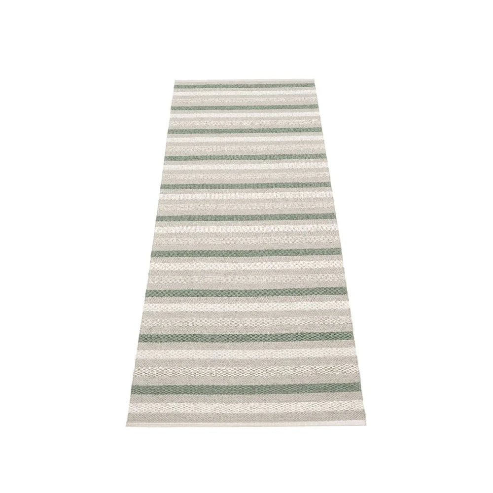 The GRACE Rugs are woven on a traditional loom using wooden shuttles. For indoor or outdoor use, the rugs are machine-washable, and made from Swedish-manufactured certified PVC. Each rug features reinforced, welded edges for strength and durability.