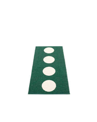 The VERA Rugs are woven on a traditional loom using wooden shuttles. For indoor or outdoor use, the rugs are reversible, machine-washable, and made from Swedish-manufactured certified PVC. Each rug features reinforced, welded edges for strength and durability.