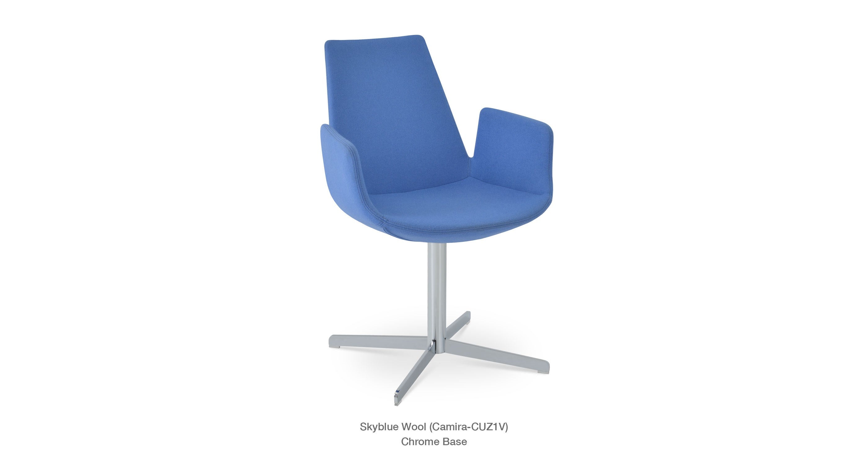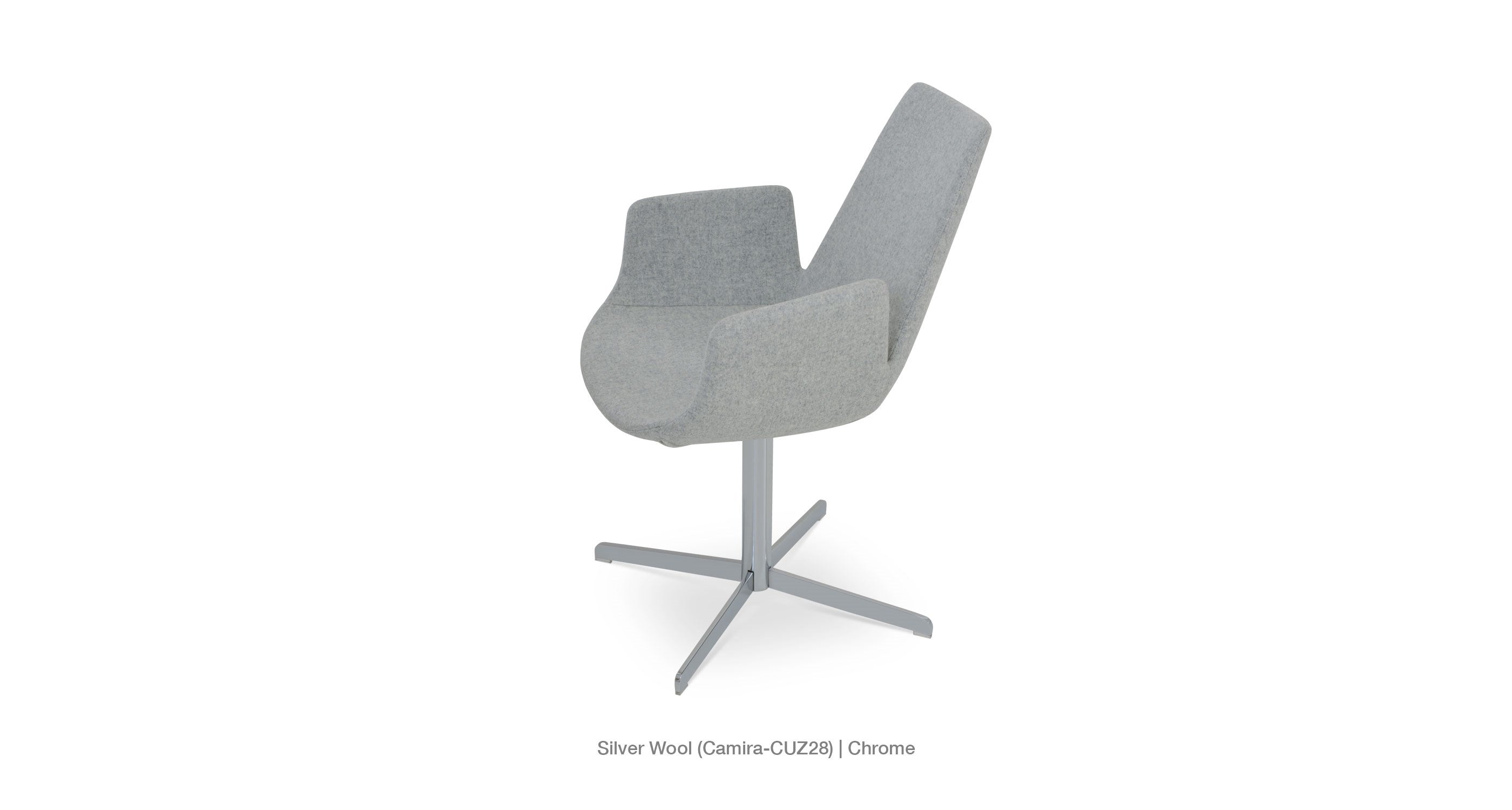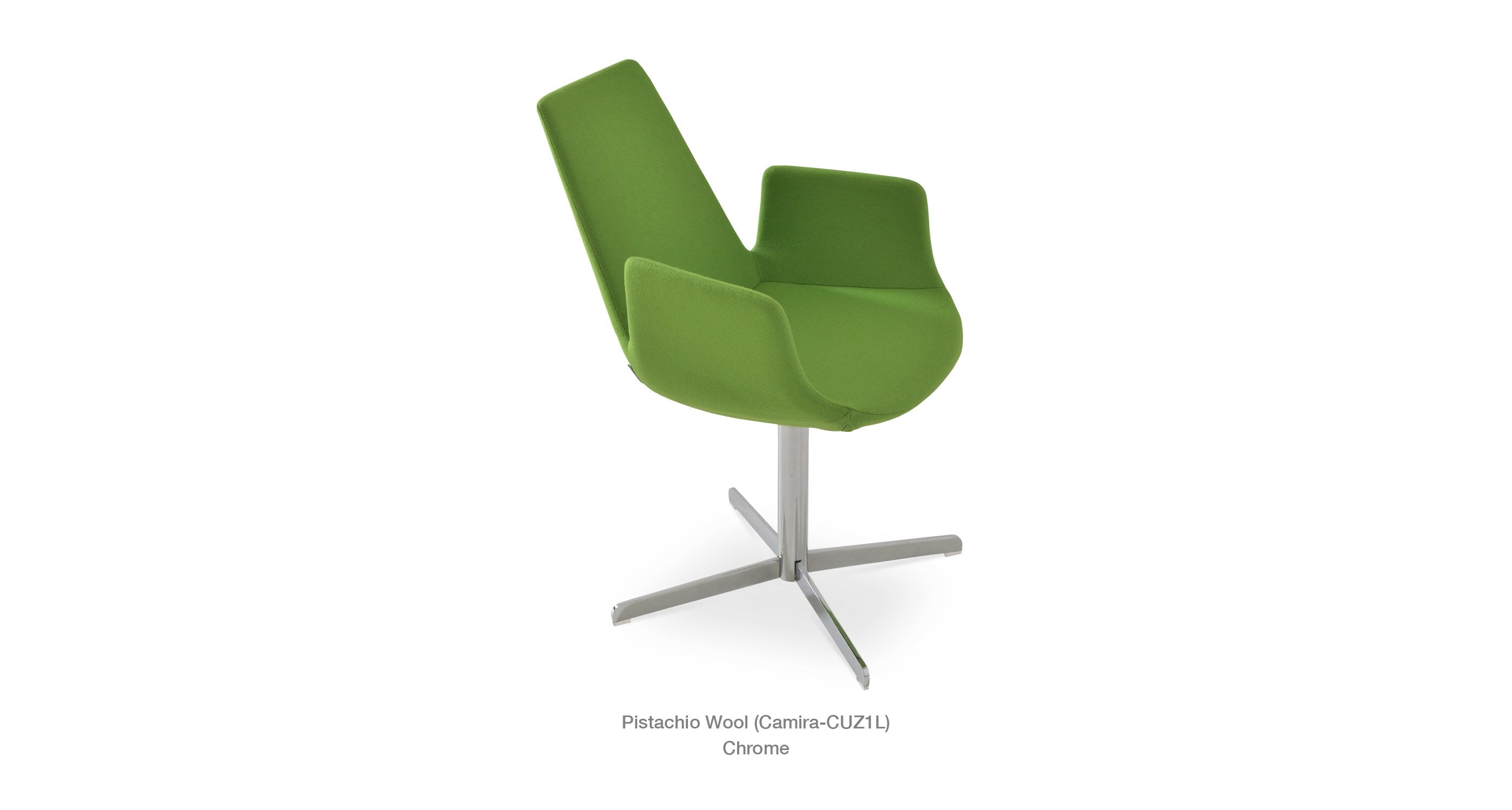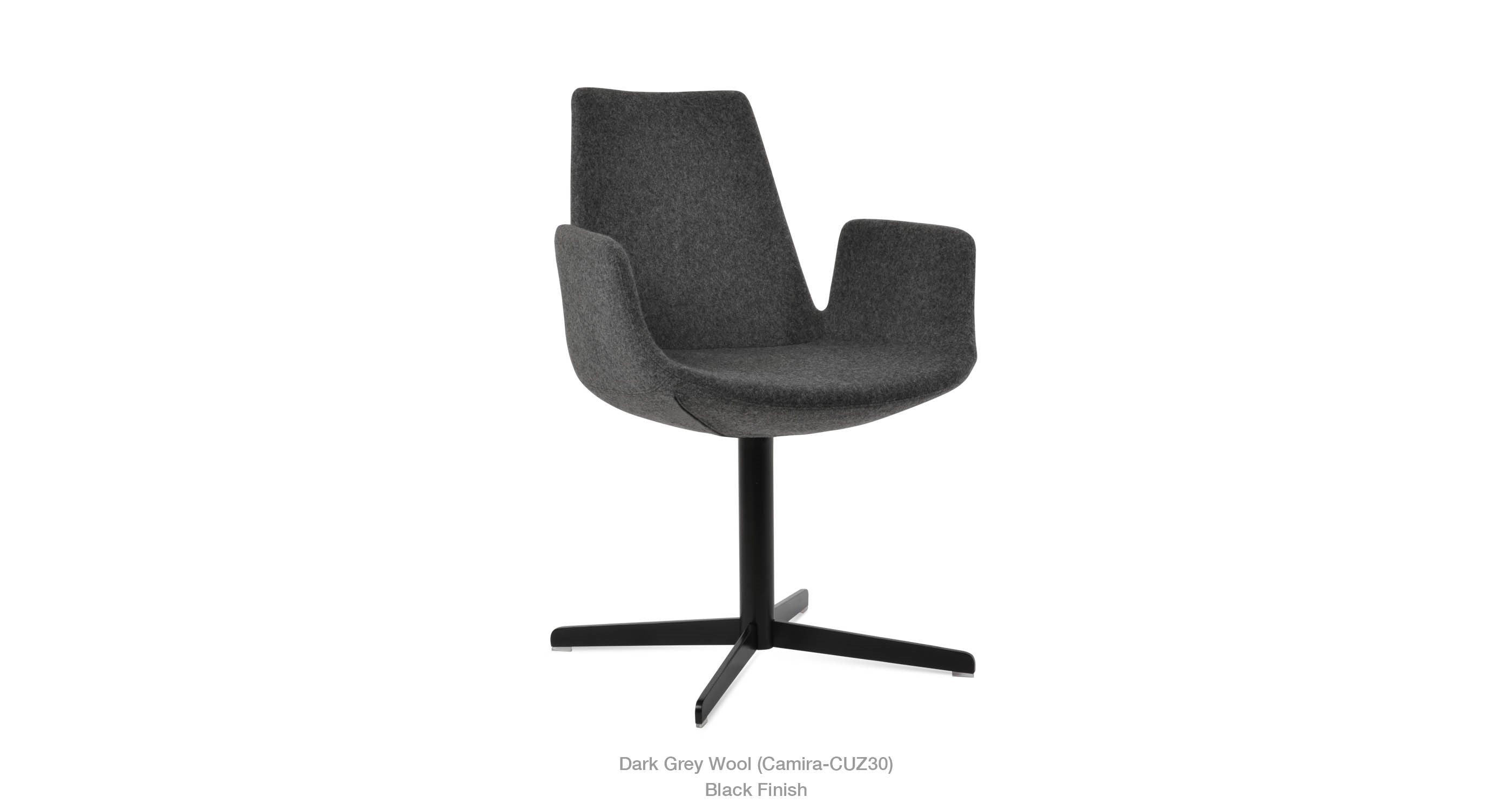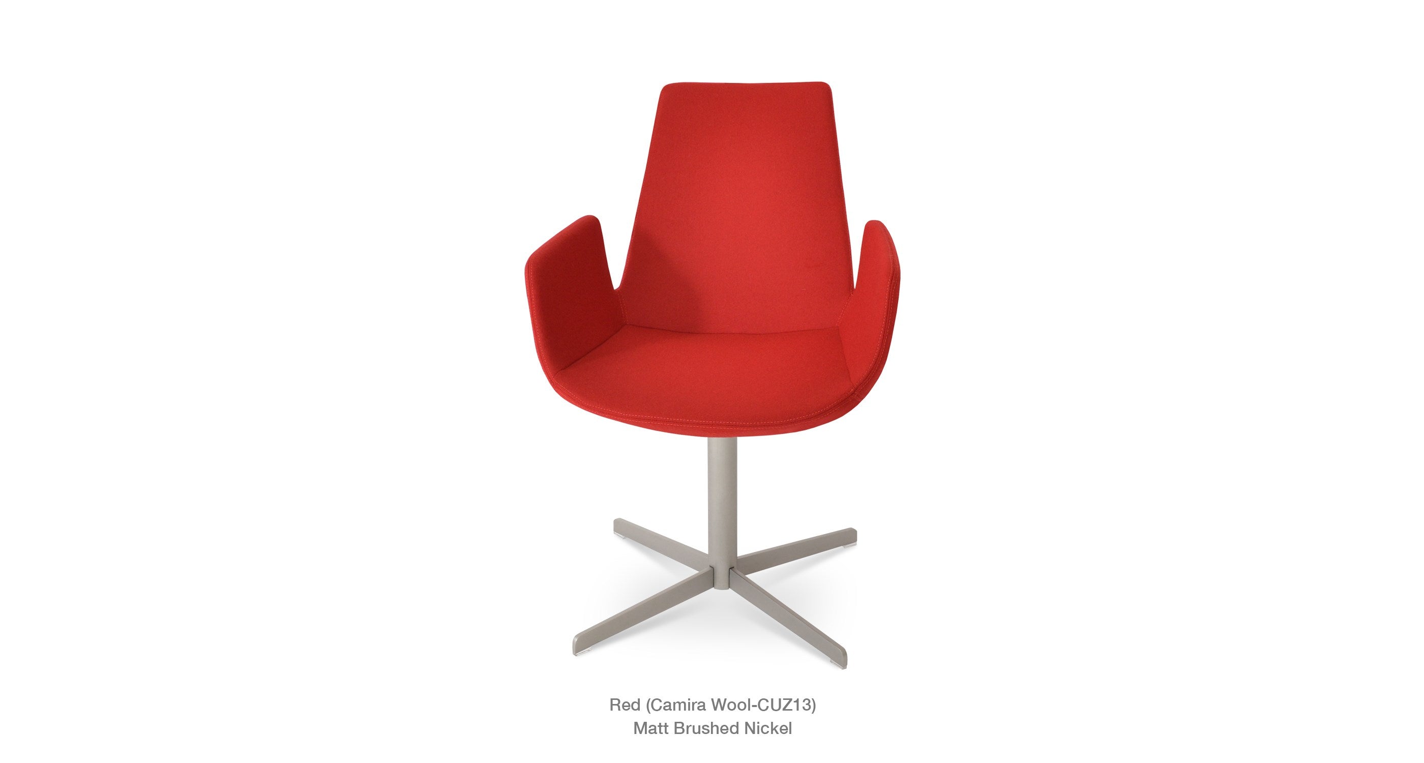 Eiffel Arm 4 Star is a contemporary chair with a comfortable upholstered seat and backrest on a 4 star matt brushed nickel legs. The chrome base is available with automatic memory swivel option that is very convenient. The seat has a steel structure with “S” shape springs for extra flexibility and strength. This steel frame is molded by injecting polyurethane foam. Eiffel seat is upholstered with a removable velcro, enclosed leather, PPM, leatherette, wool as well as Camira organic wool slip cover that can be changed with professional help. Eiffel Arm 4 Star may be upholstered with variety of other colors as a special order with a minimum of quantity required. The chair is suitable for both residential and commercial use.