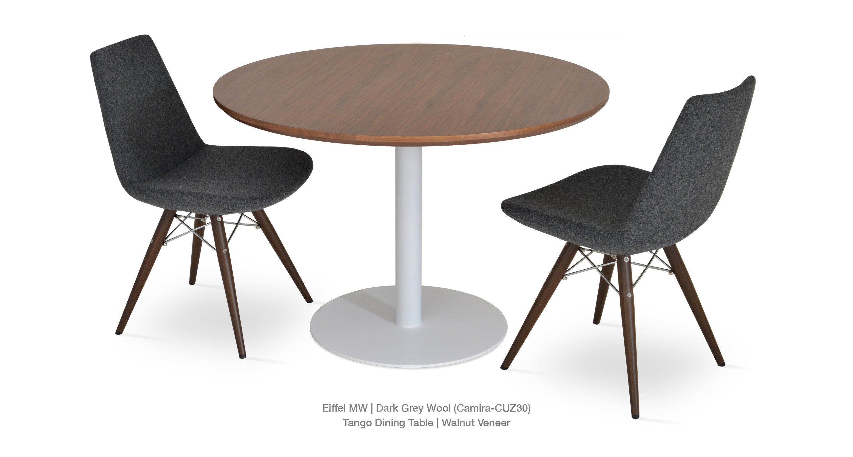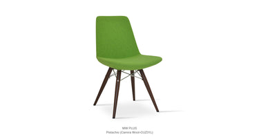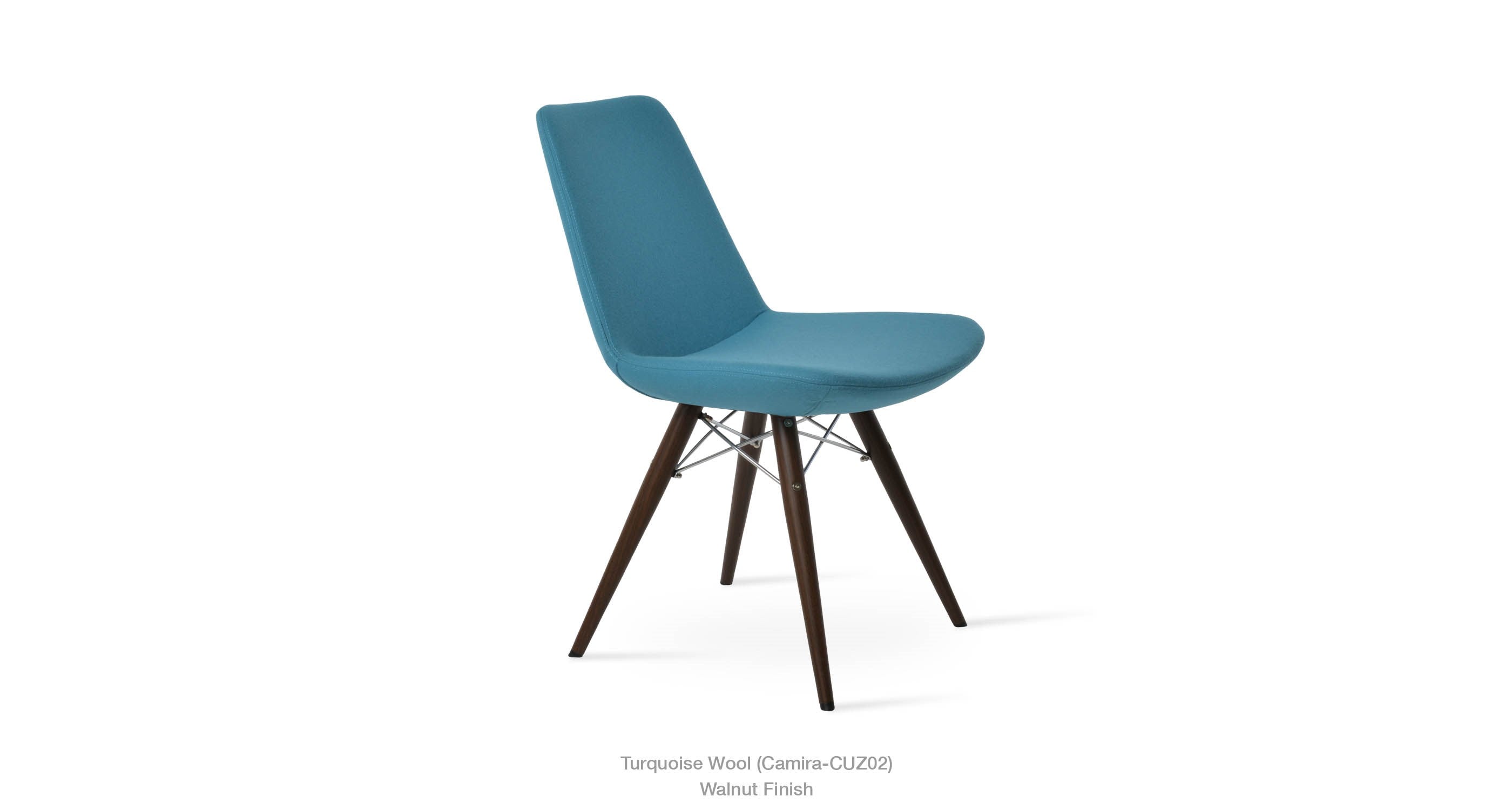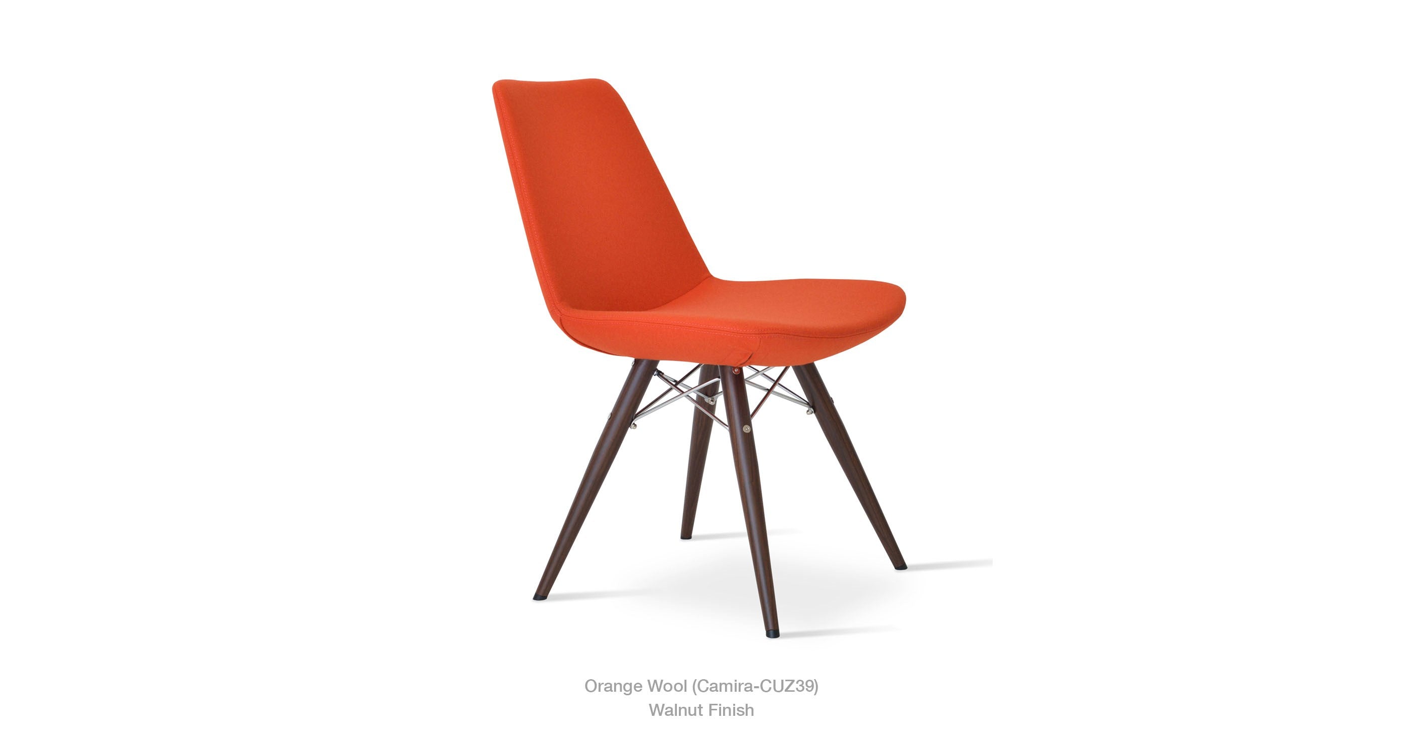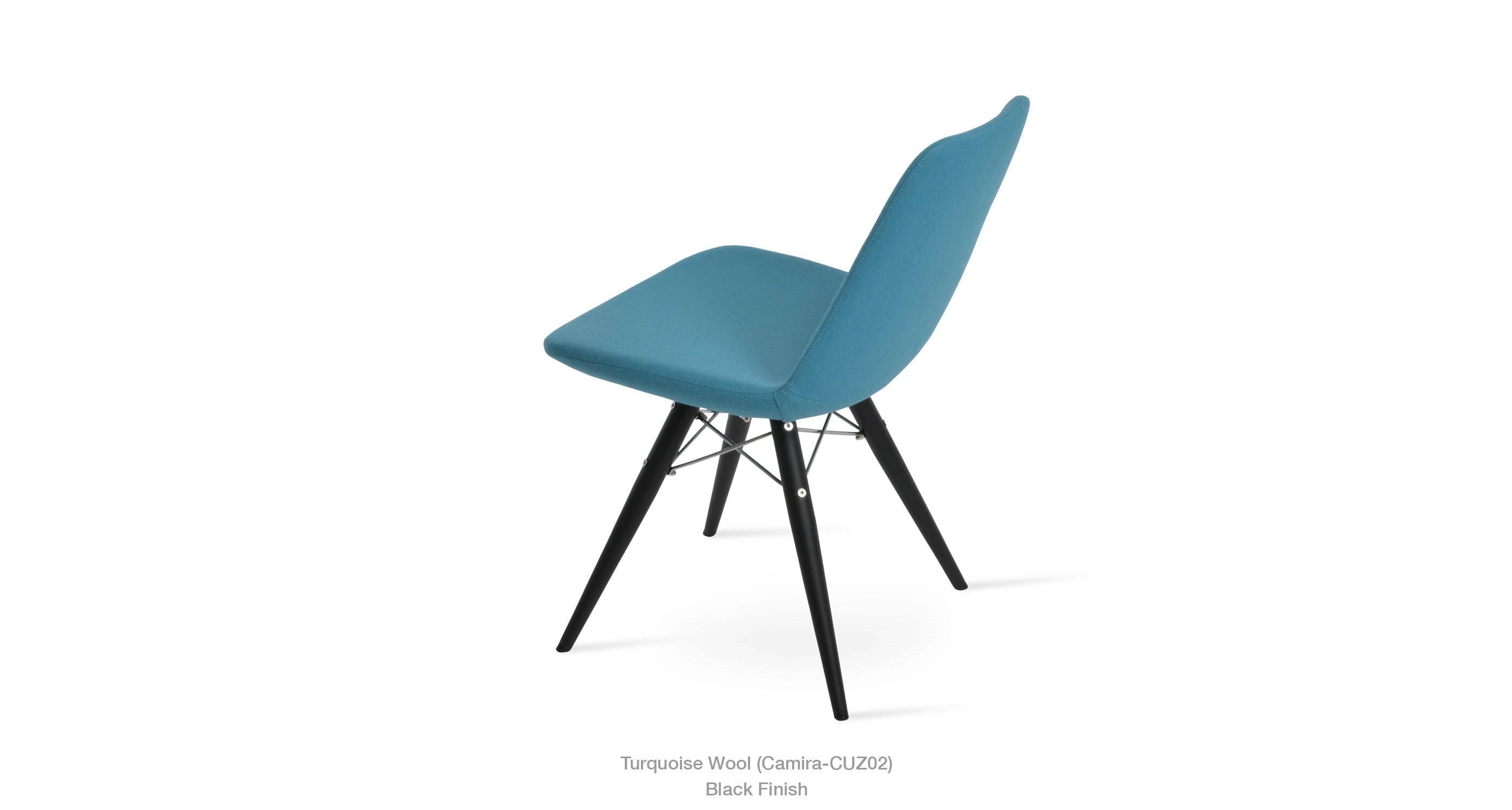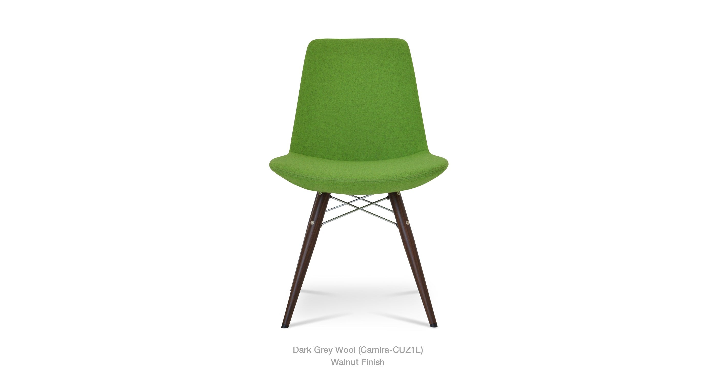 Eiffel MW is a contemporary dining chair with a comfortable upholstered seat and backrest on dowel legs. Eiffel MW has veneer steel legs available in black powder, natural as well as stainless steel finishes. Black wires are used with natural metal legs and chrome wires are used with black powdered metal legs. Each leg is tipped with a plastic glide screwed into the foot. The seat has a steel structure with “S” shape springs for extra flexibility and strength. This steel frame is molded by an injecting polyurethane foam. Eiffel seat is upholstered with a removable velcro, enclosed leather, PPM, leatherette, wool as well as Camira organic wool slip cover. Eiffel MW may be upholstered with variety of other colors as a special order with a minimum of quantity required. The chair is suitable for both residential and commercial use.
