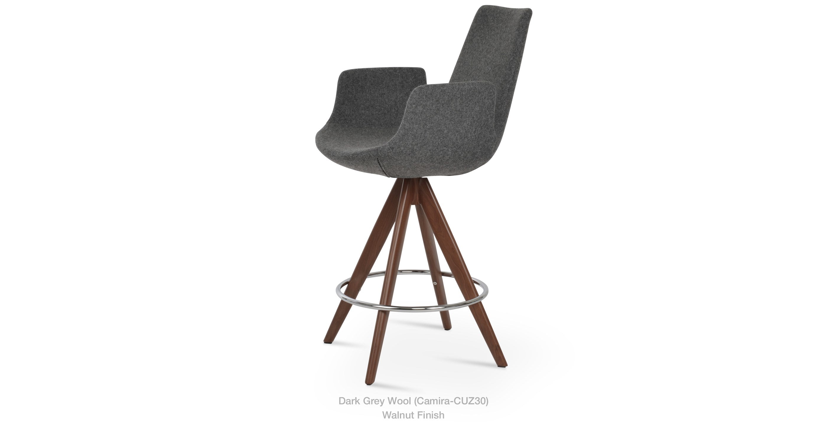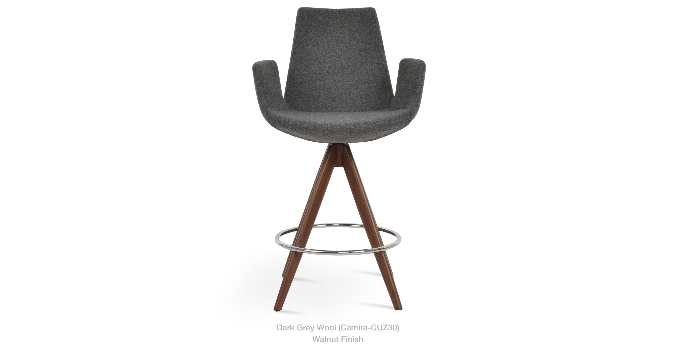 Eiffel Arm Pyramid MW is a contemporary stool with a comfortable upholstered seat and backrest on swivel steel base. The seat has a steel structure with “S” shape springs for extra flexibility and strength. This steel frame is molded by injecting polyurethane foam. Eiffel Arm seat is upholstered with a removable velcro, enclosed leather, PPM, leatherette, wool as well as Camira organic wool slip cover. Eiffel Arm Pyramid MW Stools may be upholstered with variety of other colors as a special order with a minimum of quantity required. The stool is suitable for both residential and commercial use.