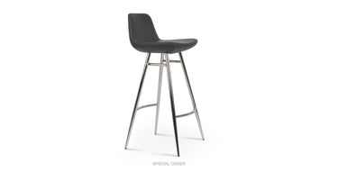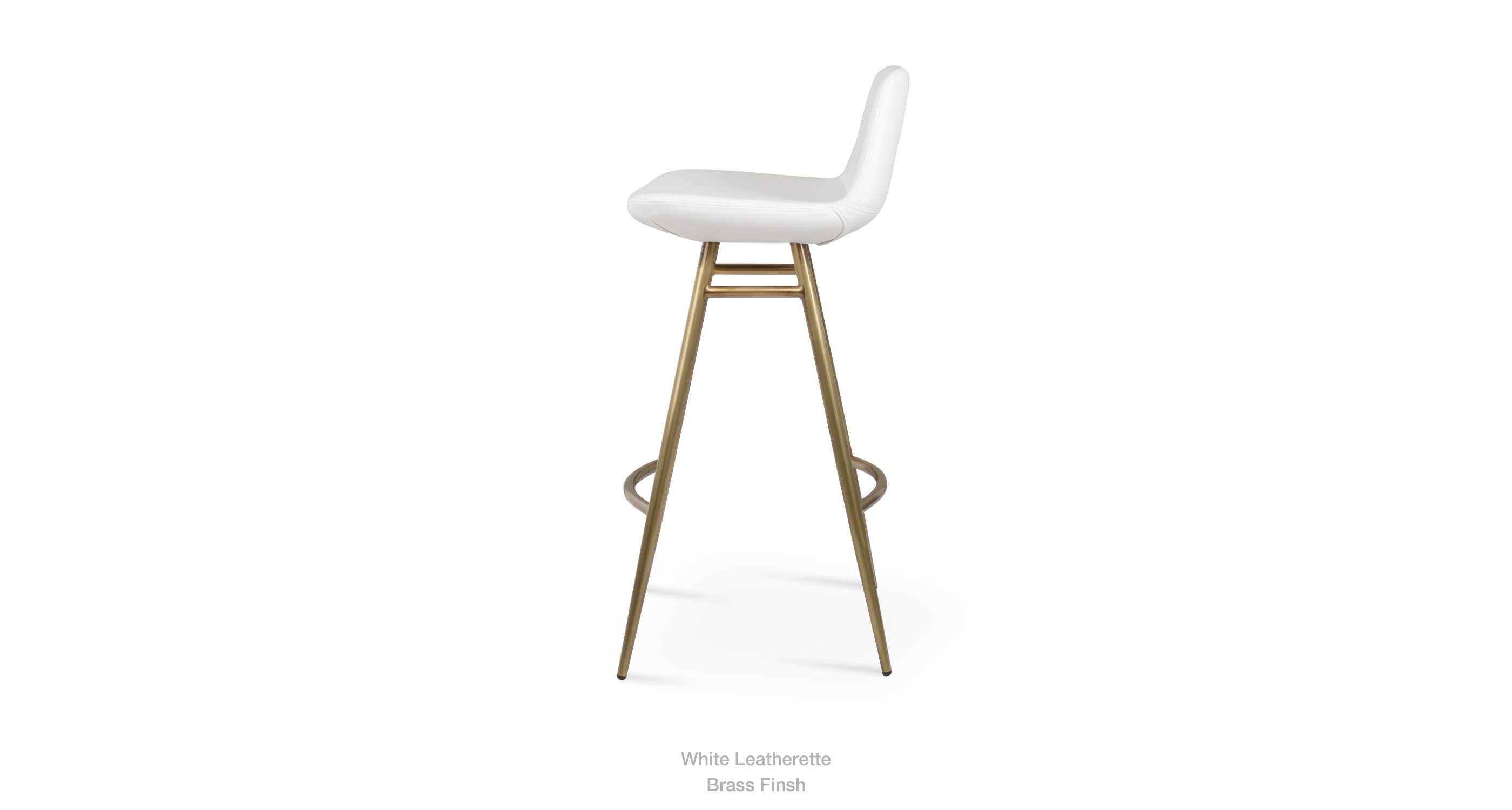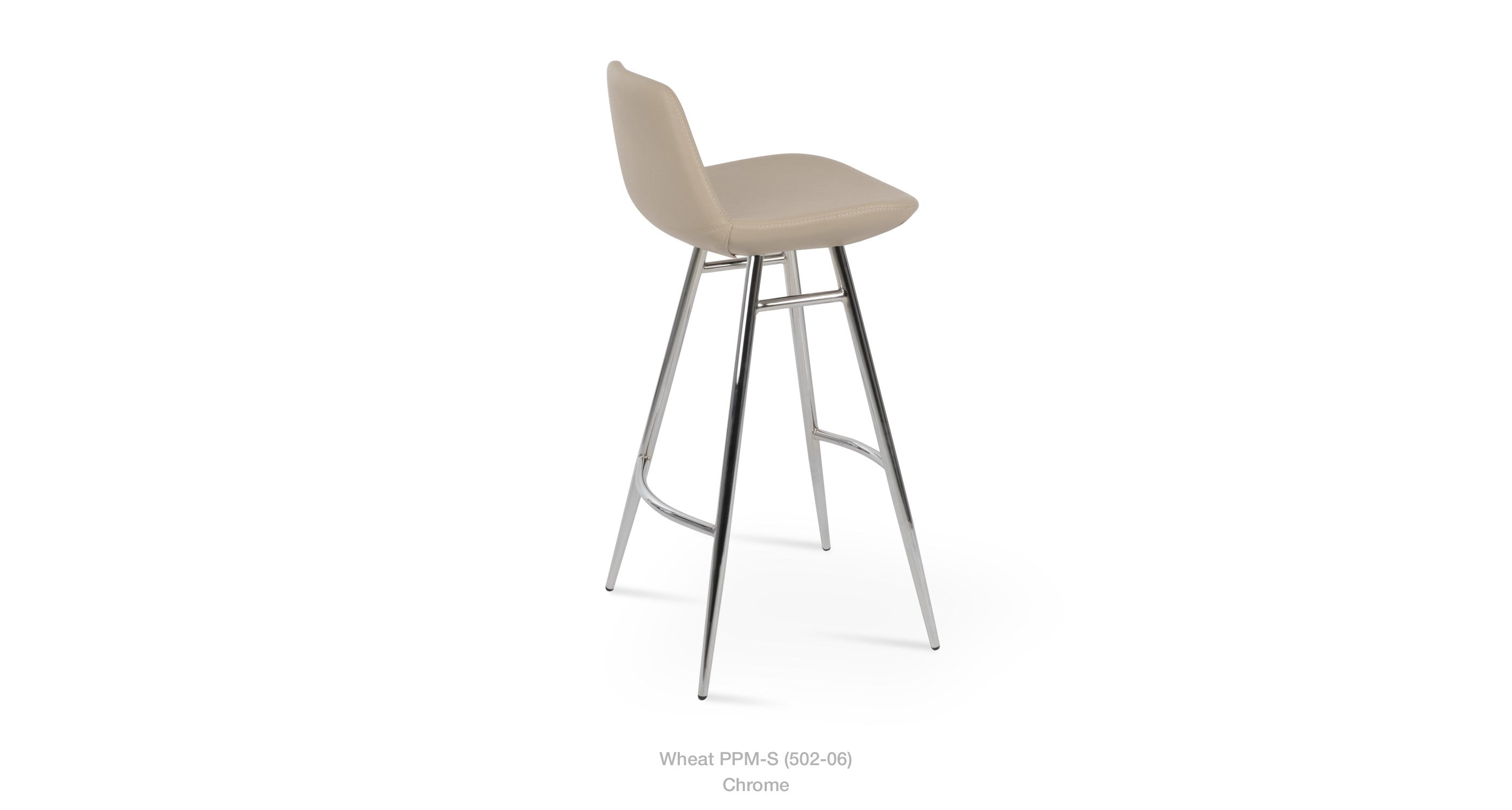 Pera Galata stool is a unique stool with a comfortable upholstered seat and backrest on steel frame. Each leg is tipped with a plastic glide inserted to the foot. With its chromed steel tubular footrests, it becomes an ideal solution for kitchen and bar counters. The footrests are fixed inside the four-leg frame. The seat has a steel structure with “S” shape springs for extra flexibility and strength. This steel frame molded by injecting polyurethane foam. Pera seat is upholstered with a removable velcro enclosed leather, PPM or wool fabric slip cover. The stool is suitable for both residential and commercial use and can be ordered as counter or bar stool. Pera Galata stool are available with swivel seat options too.