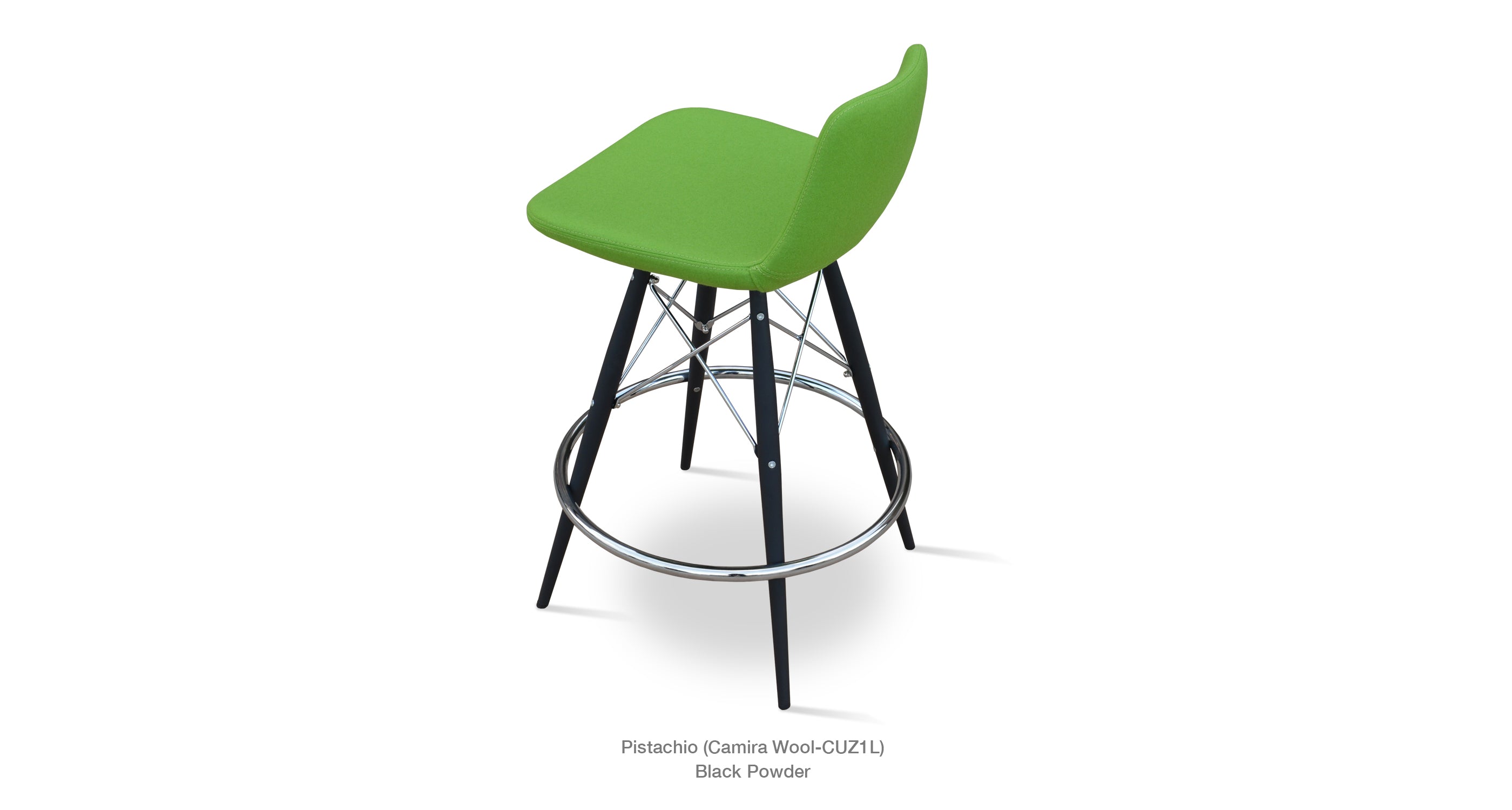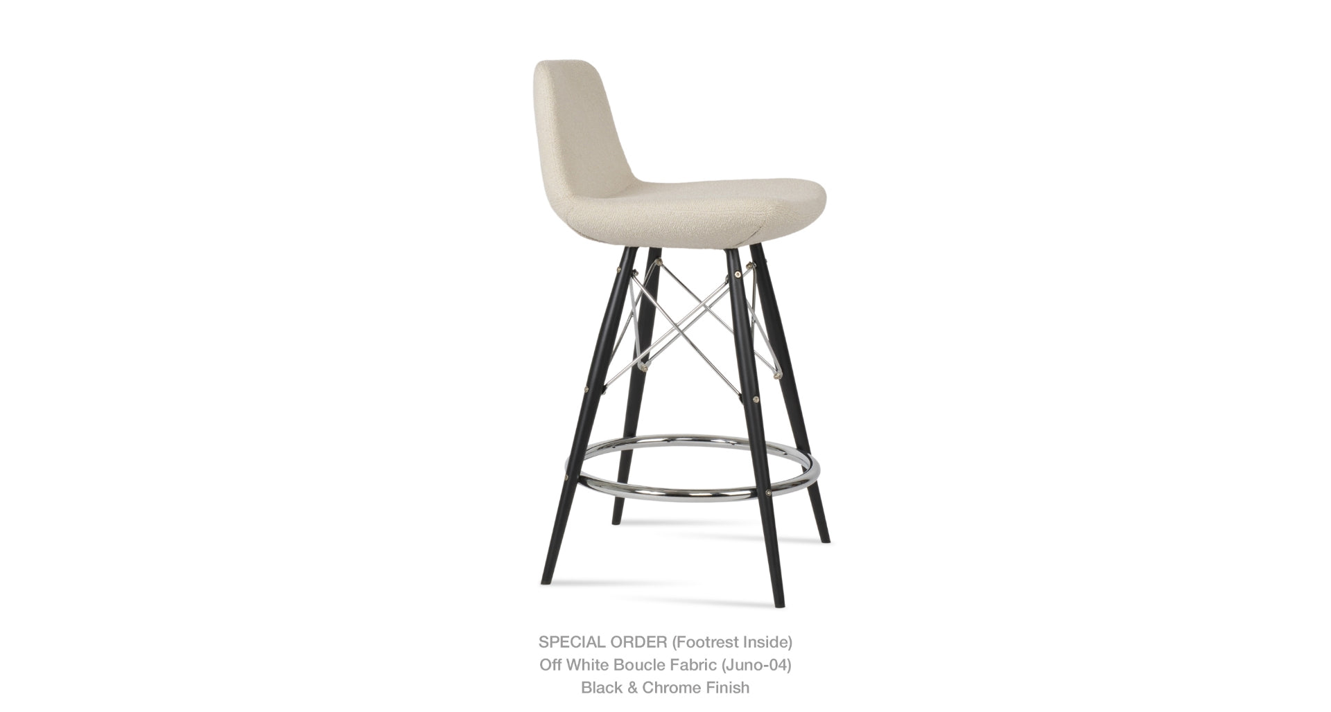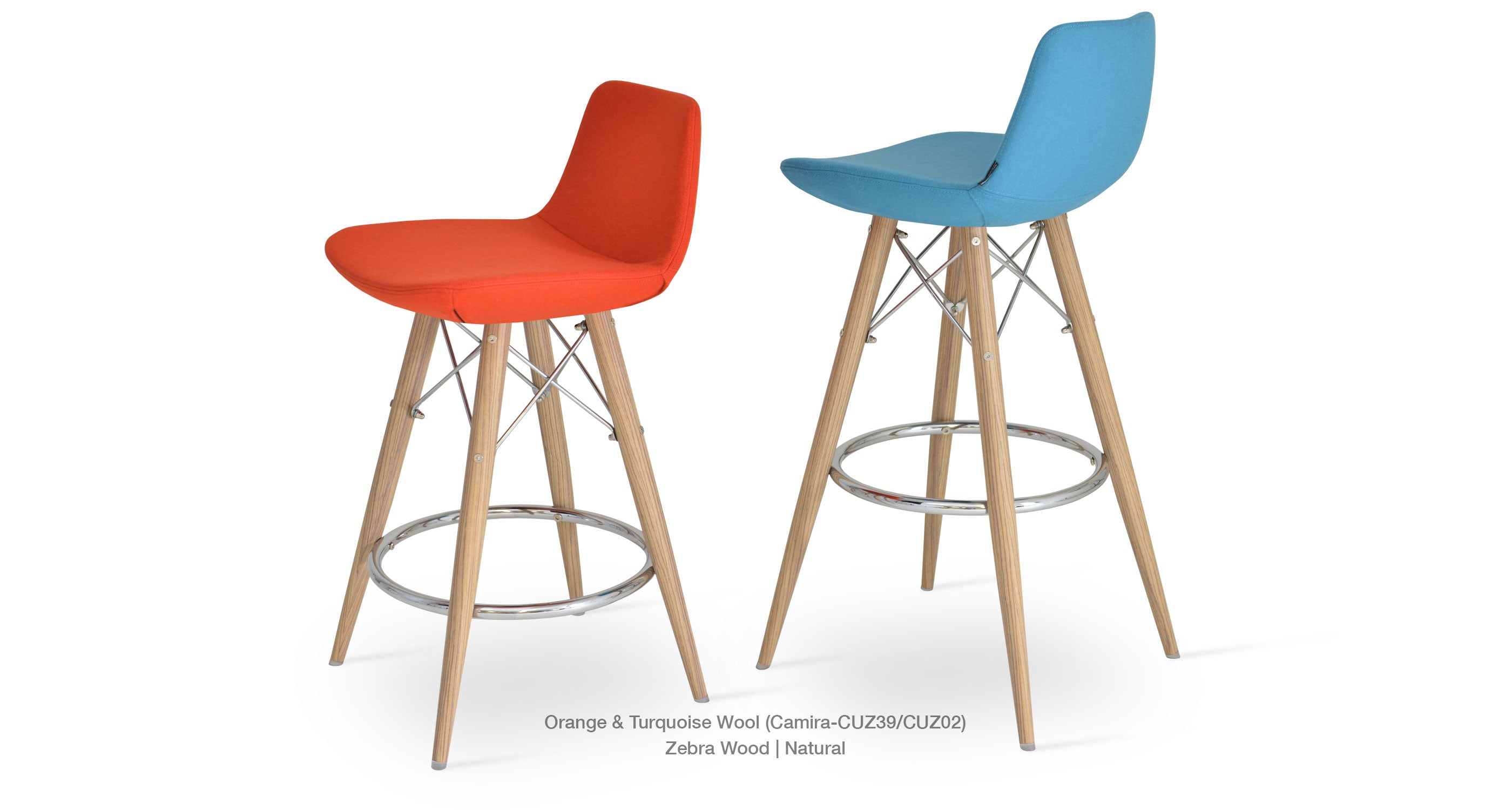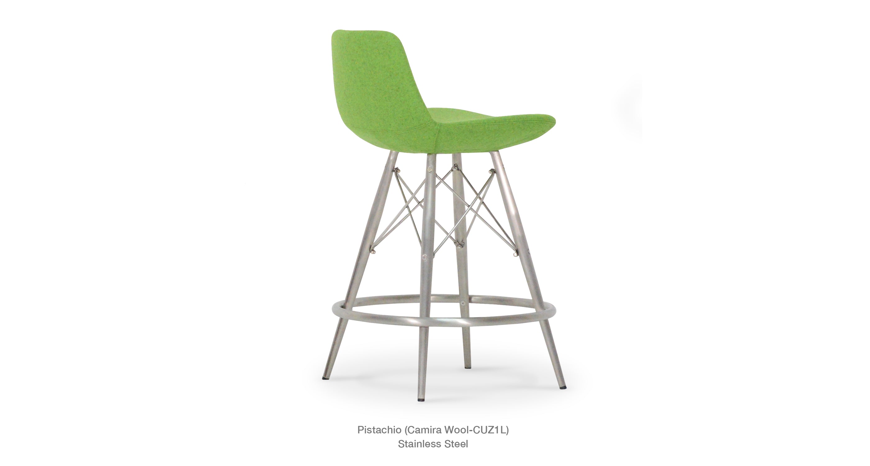 Pera MW stool is a unique stool with a comfortable upholstered seat and backrest on a powder-coated steel frame. Each leg is tipped with a plastic glide inserted to the foot. With its chromed steel tubular footrests, it becomes an ideal solution for kitchen and bar counters. The footrests are fixed inside the four-leg frame. The seat has a steel structure with “S” shape springs for extra flexibility and strength. This steel frame molded by injecting polyurethane foam. Pera seat is upholstered with a removable velcro enclosed leather, PPM or wool fabric slip cover. The stool is suitable for both residential and commercial use and can be ordered as counter or bar stool. Pera MW stool are available with swivel seat options too.