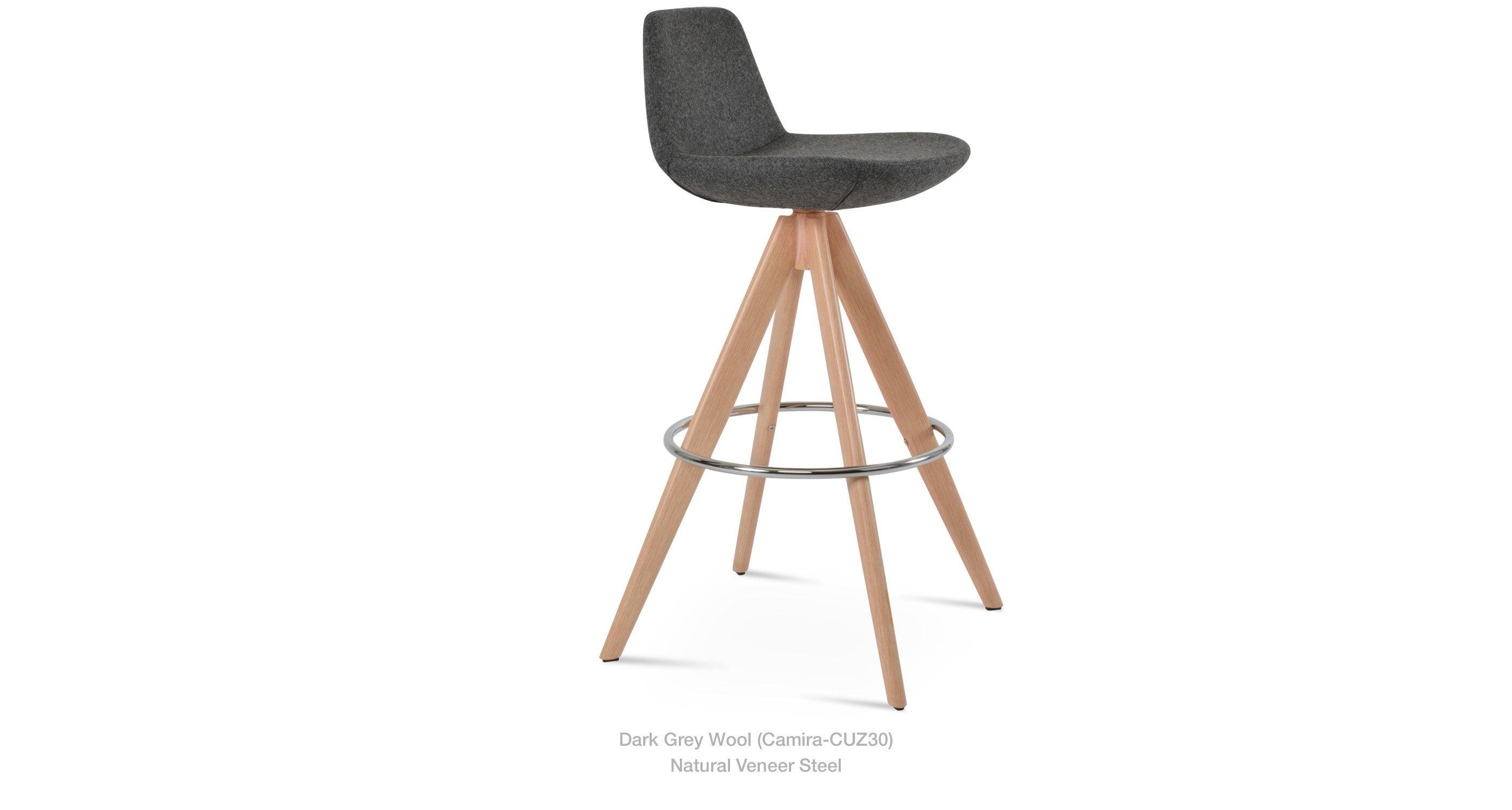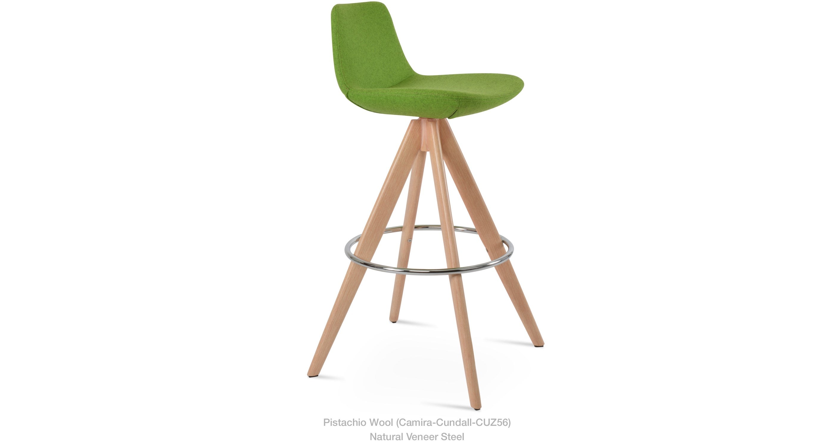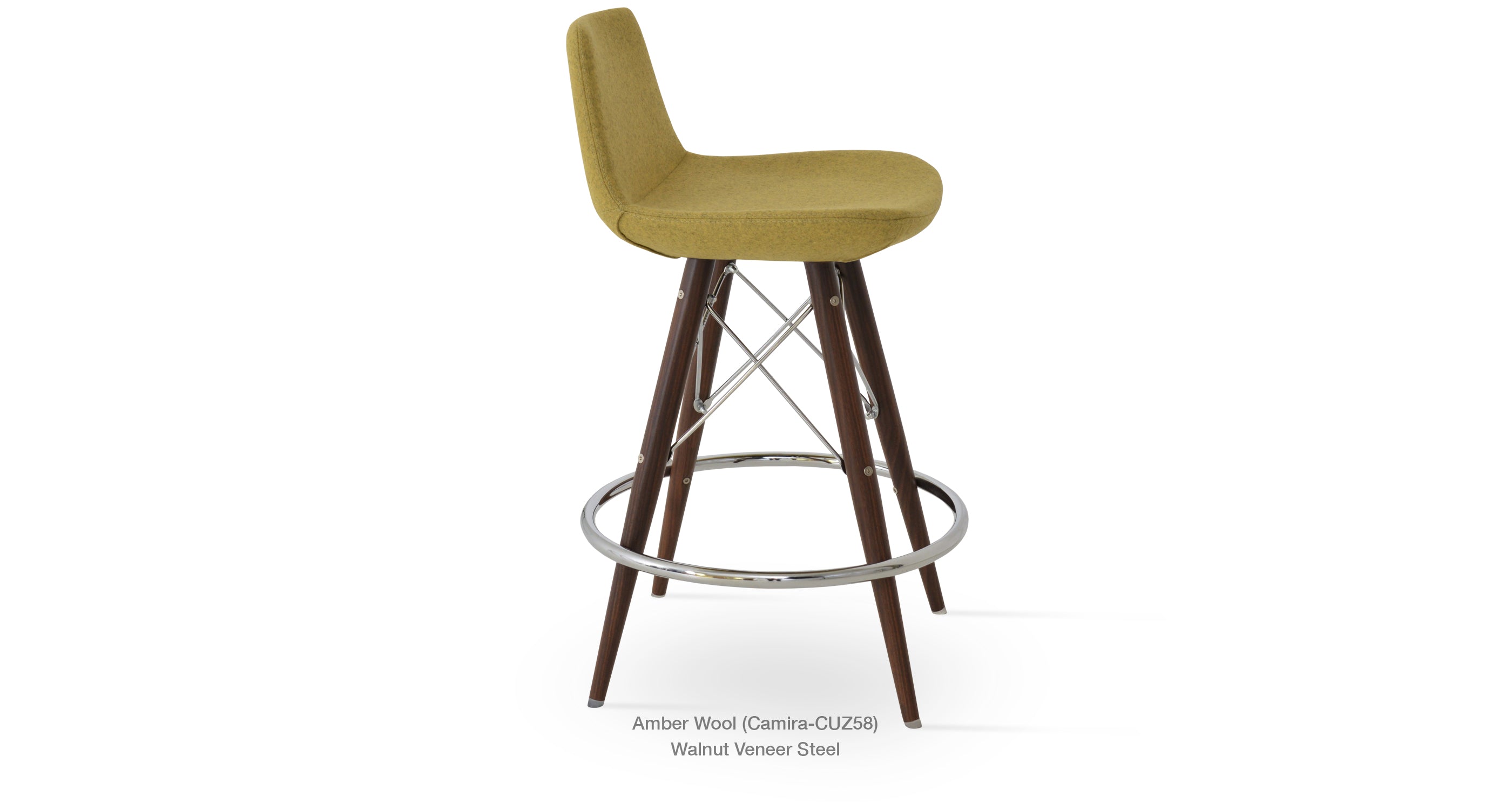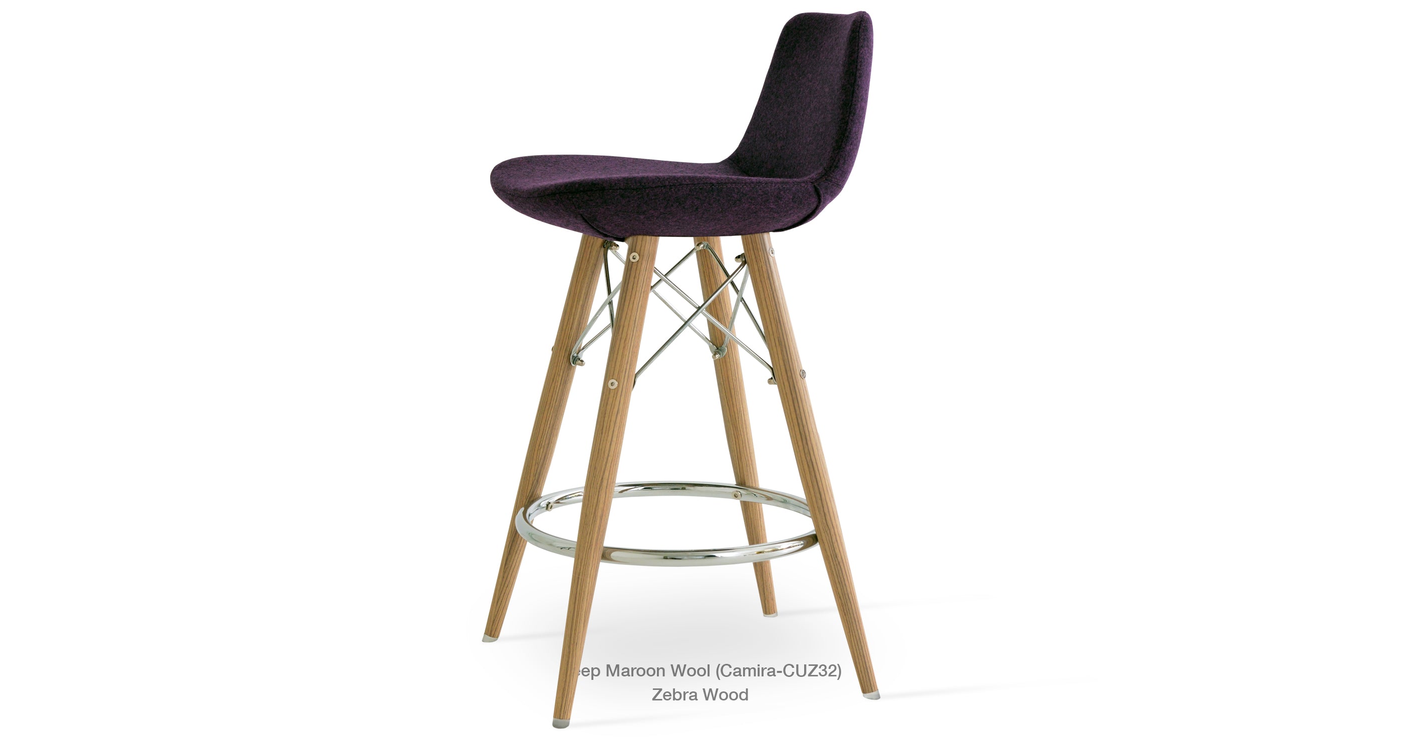 Pera MW stool is a unique stool with a comfortable upholstered seat and backrest on a powder-coated steel frame. Each leg is tipped with a plastic glide inserted to the foot. With its chromed steel tubular footrests, it becomes an ideal solution for kitchen and bar counters. The footrests are fixed inside the four-leg frame. The seat has a steel structure with “S” shape springs for extra flexibility and strength. This steel frame molded by injecting polyurethane foam. Pera seat is upholstered with a removable velcro enclosed leather, PPM or wool fabric slip cover. The stool is suitable for both residential and commercial use and can be ordered as counter or bar stool. Pera MW stool are available with swivel seat options too.