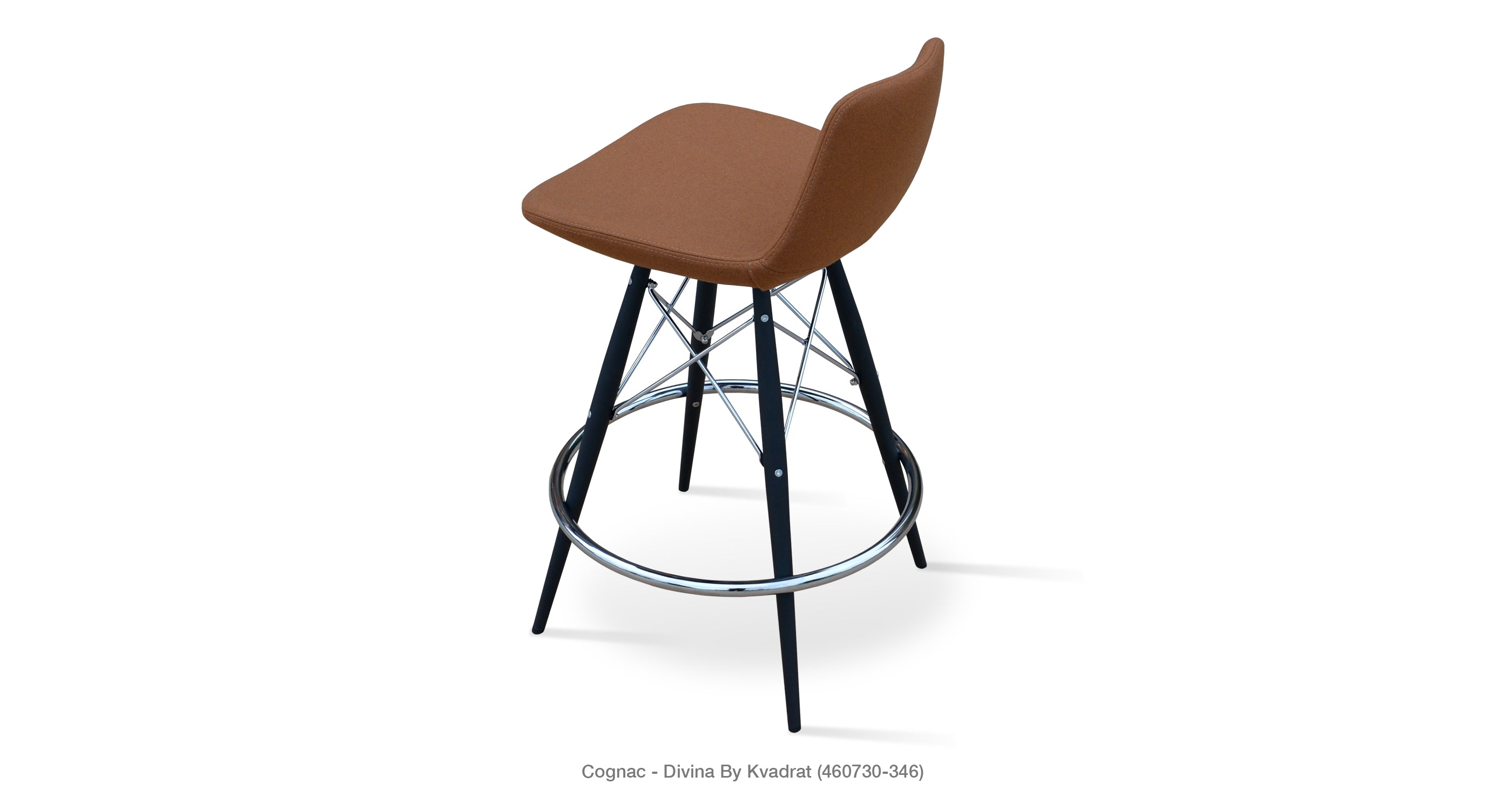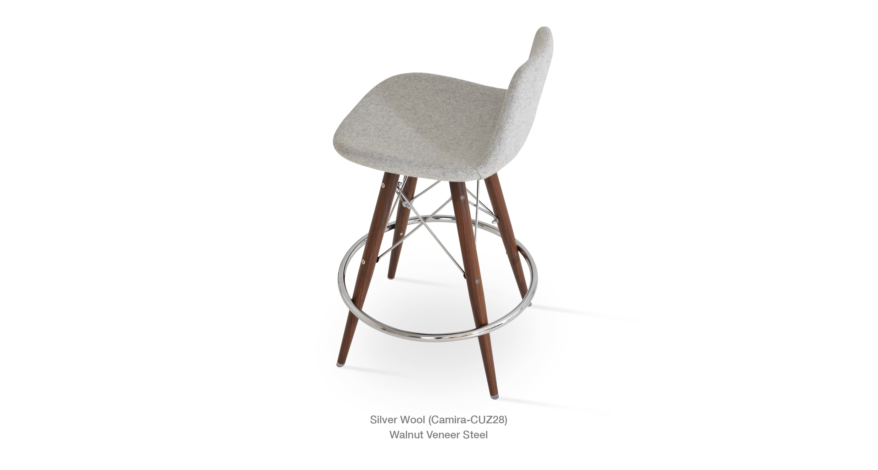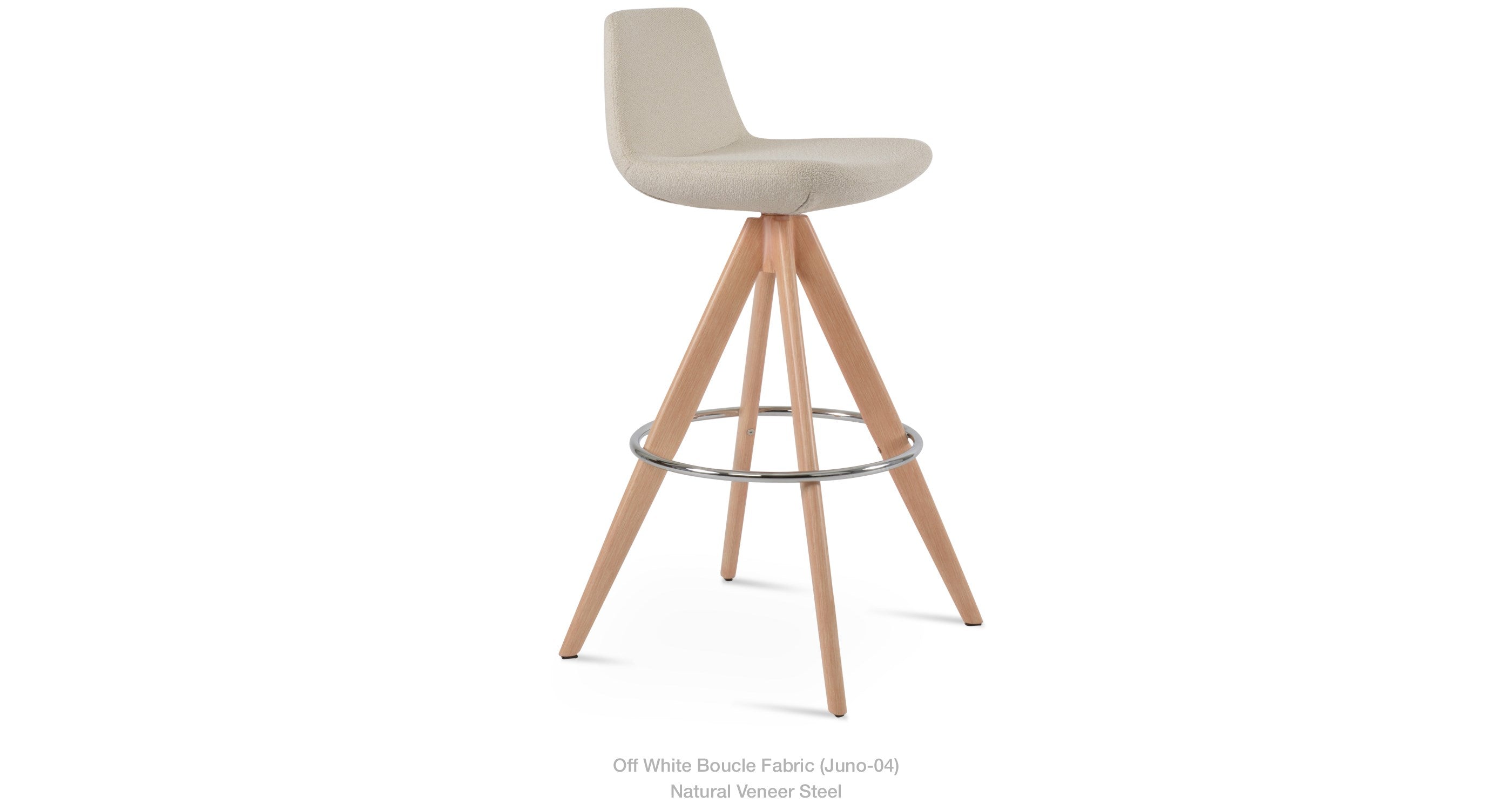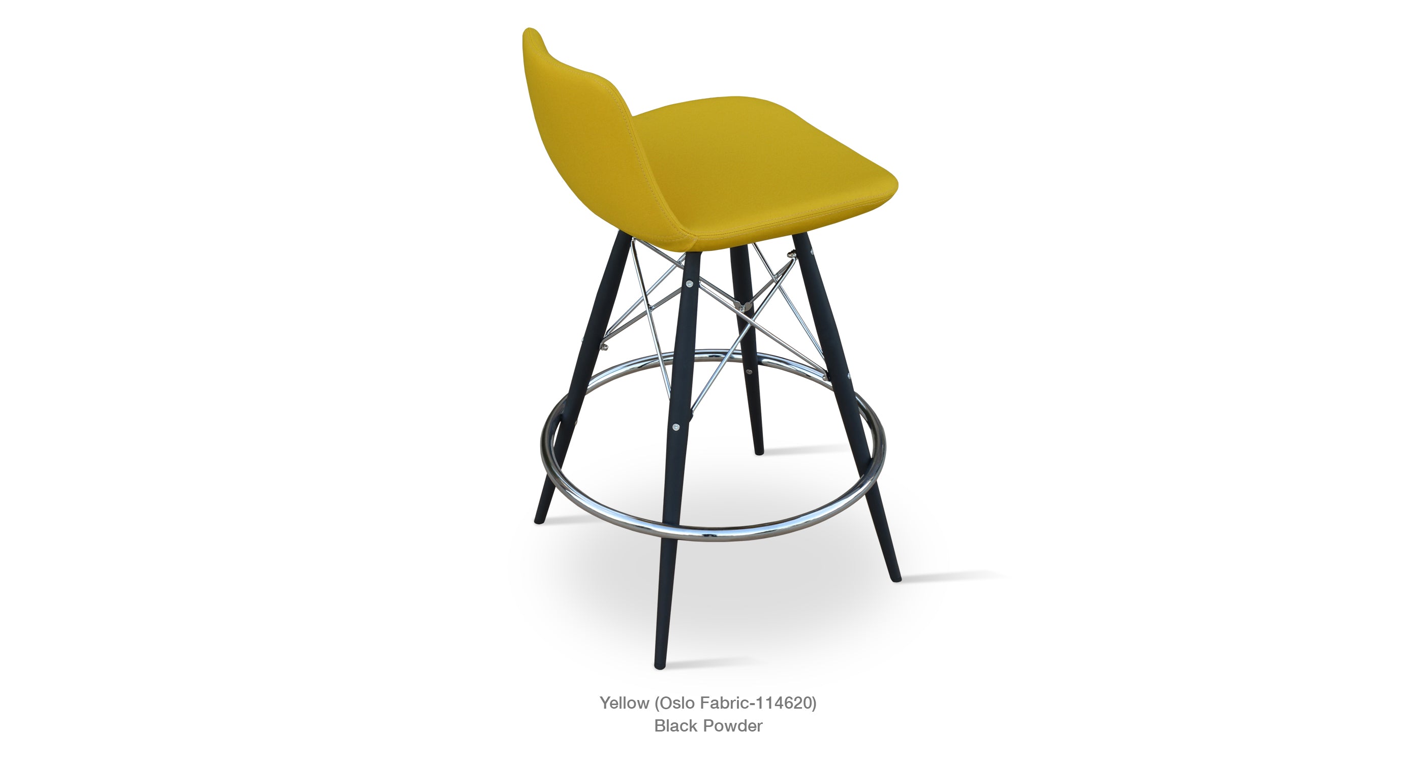 Pera MW stool is a unique stool with a comfortable upholstered seat and backrest on a powder-coated steel frame. Each leg is tipped with a plastic glide inserted to the foot. With its chromed steel tubular footrests, it becomes an ideal solution for kitchen and bar counters. The footrests are fixed inside the four-leg frame. The seat has a steel structure with “S” shape springs for extra flexibility and strength. This steel frame molded by injecting polyurethane foam. Pera seat is upholstered with a removable velcro enclosed leather, PPM or wool fabric slip cover. The stool is suitable for both residential and commercial use and can be ordered as counter or bar stool. Pera MW stool are available with swivel seat options too.