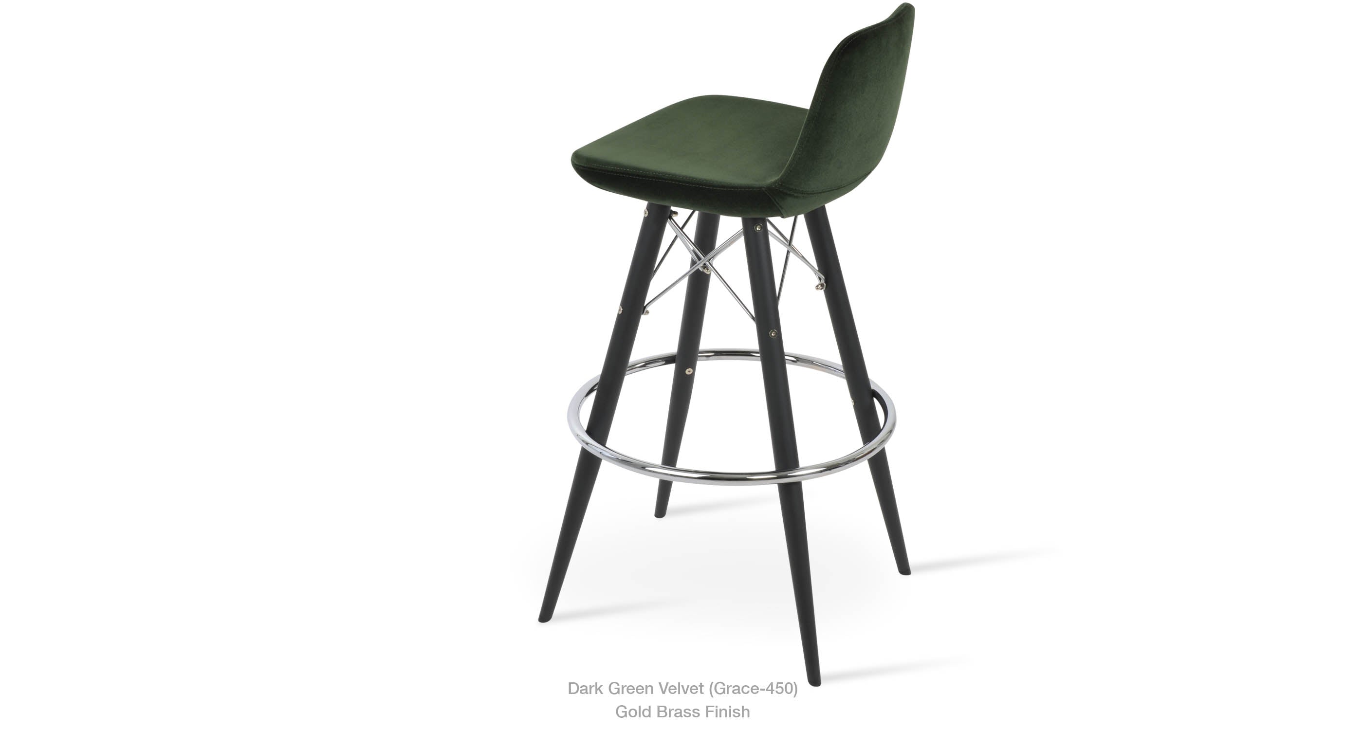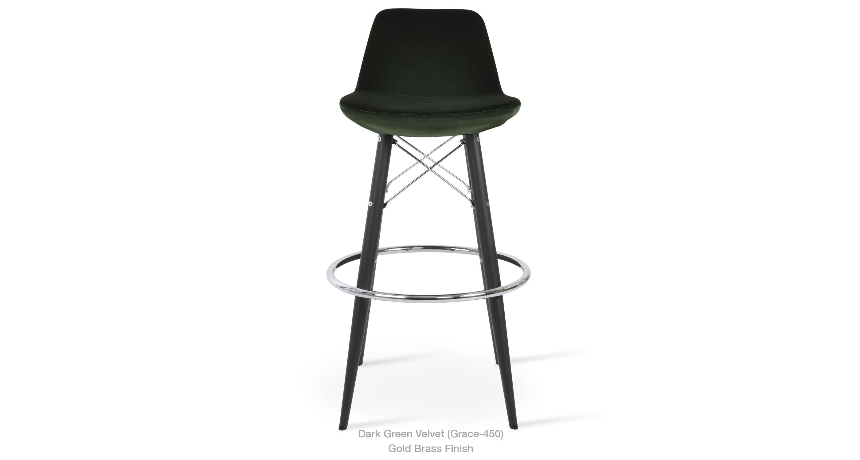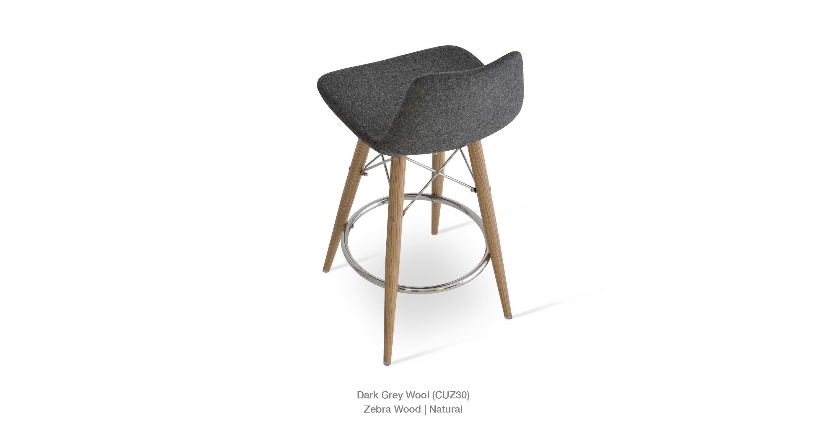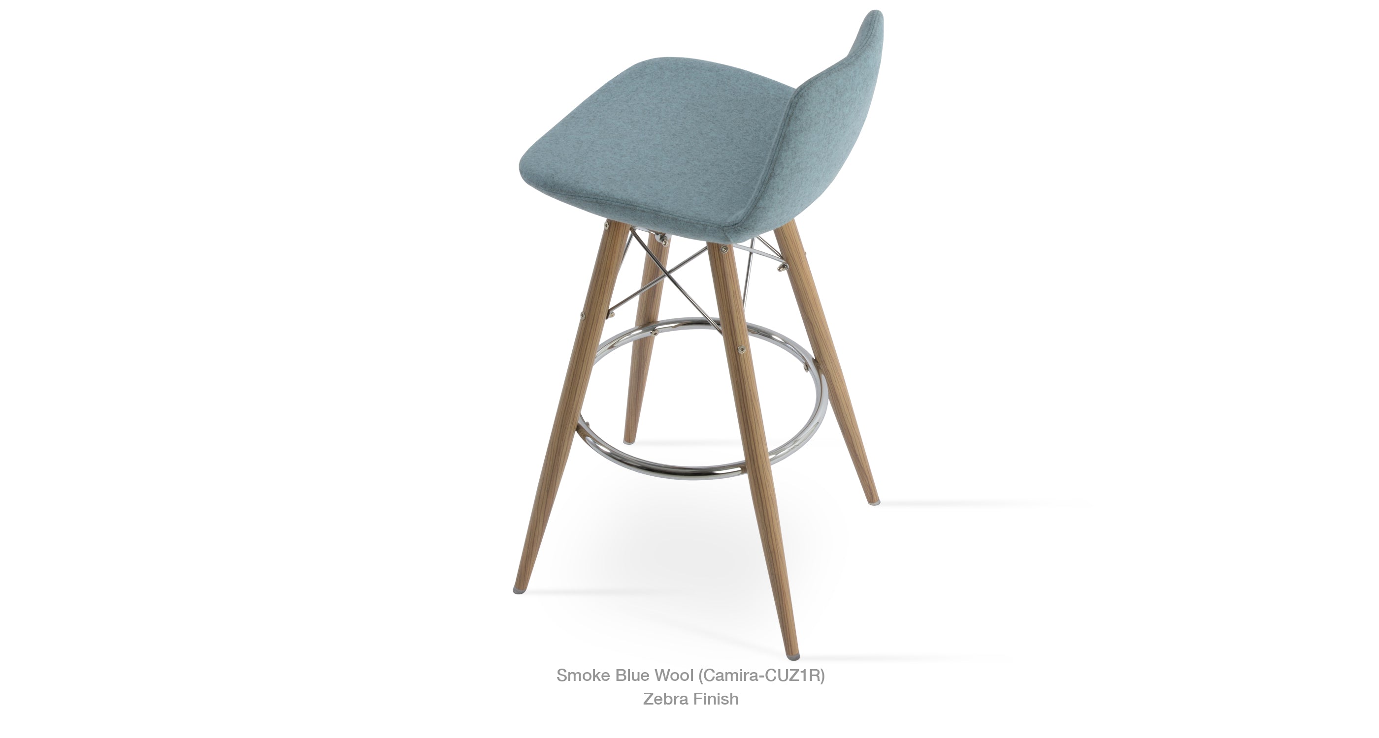 Pera MW stool is a unique stool with a comfortable upholstered seat and backrest on a powder-coated steel frame. Each leg is tipped with a plastic glide inserted to the foot. With its chromed steel tubular footrests, it becomes an ideal solution for kitchen and bar counters. The footrests are fixed inside the four-leg frame. The seat has a steel structure with “S” shape springs for extra flexibility and strength. This steel frame molded by injecting polyurethane foam. Pera seat is upholstered with a removable velcro enclosed leather, PPM or wool fabric slip cover. The stool is suitable for both residential and commercial use and can be ordered as counter or bar stool. Pera MW stool are available with swivel seat options too.