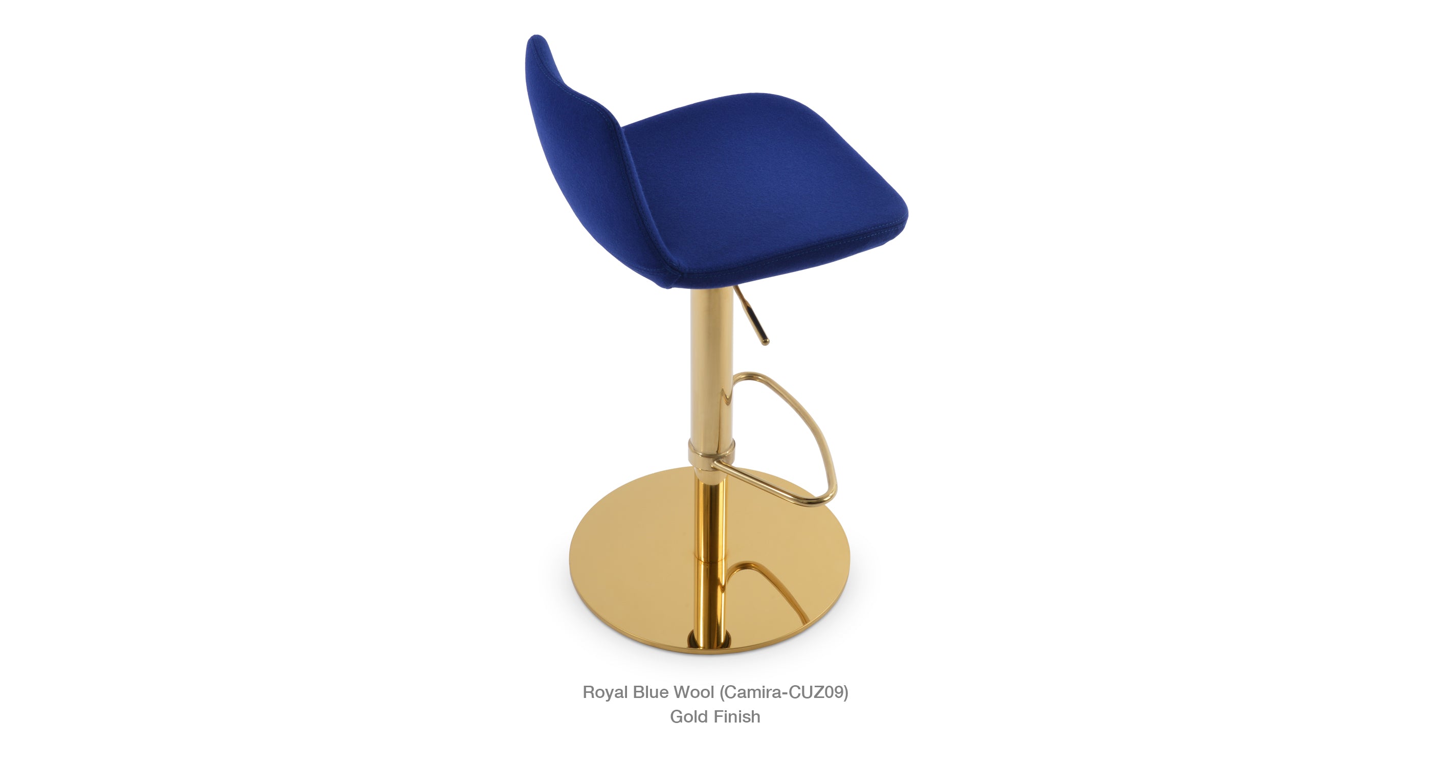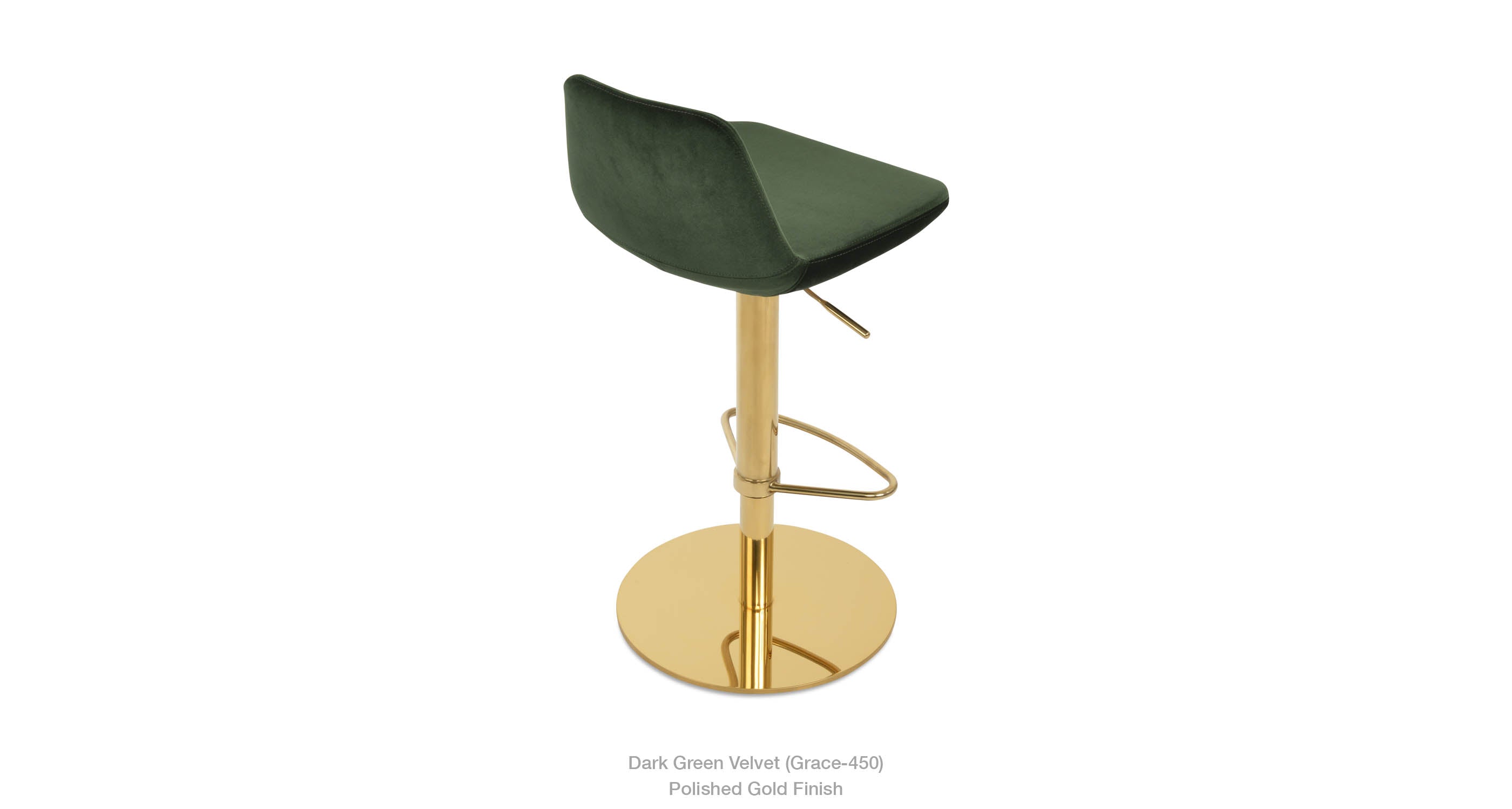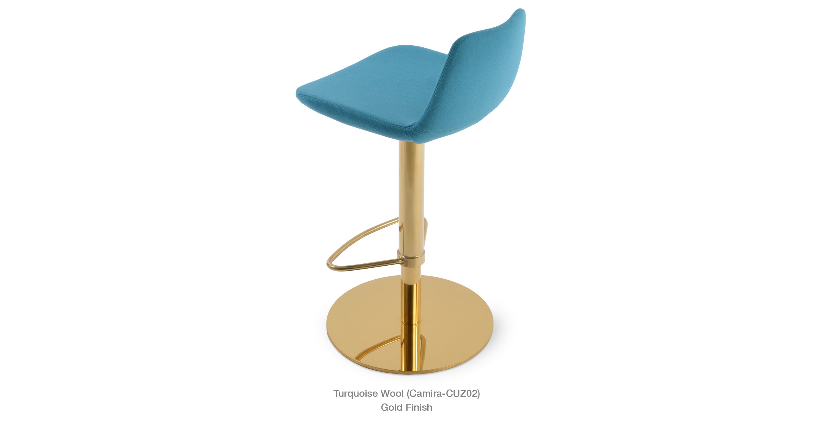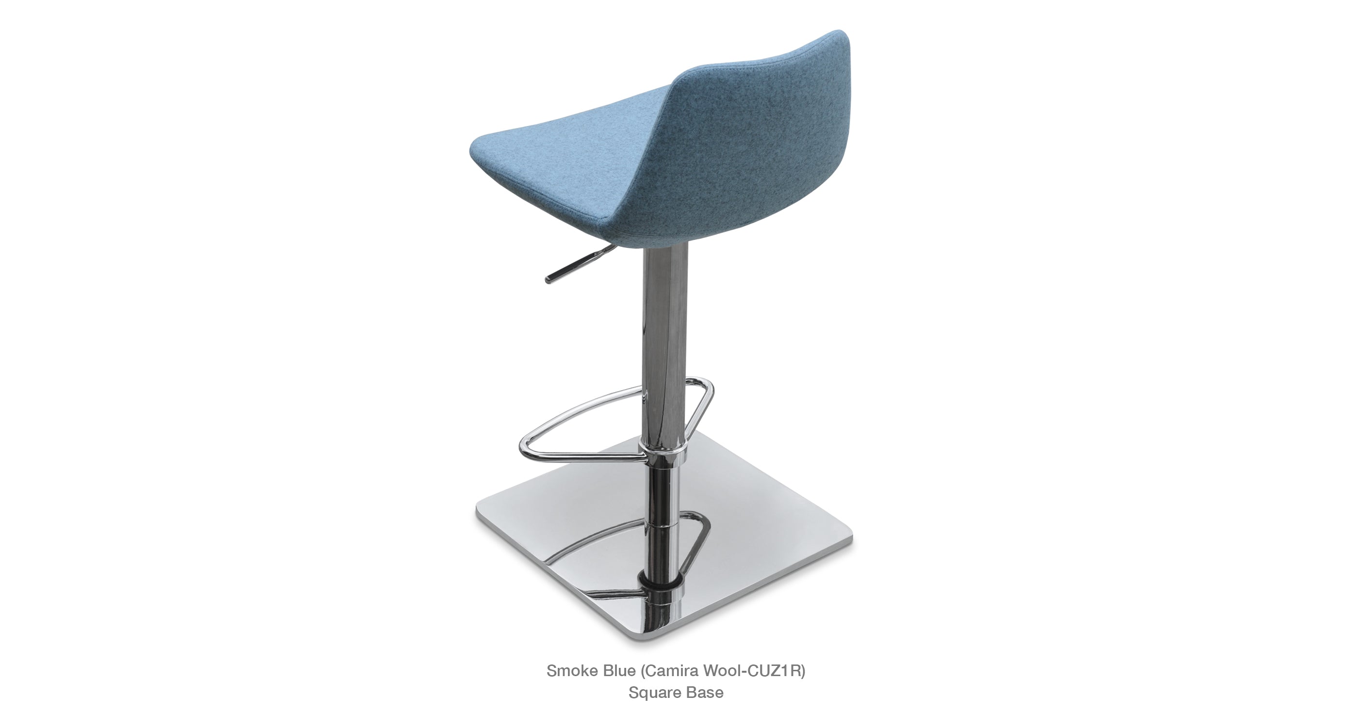 Pera Piston Half Footrest is a unique stool with a comfortable upholstered seat and backrest on an adjustable gas piston base which swivels and also adjusts easily from a counter height to a bar height with a lever that activates the gas piston mechanism. The solid steel round base is available in chrome or stainless steel. The seat has a steel structure with “S” shape springs for extra flexibility and strength. This steel frame molded by injecting polyurethane foam. Pera seat is upholstered with a removable velcro enclosed leather, PPM or wool fabric slip cover. The stool is suitable for both residential and commercial use.