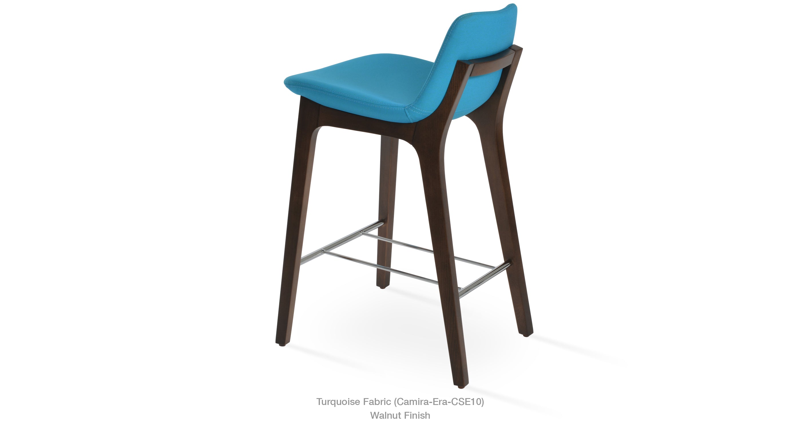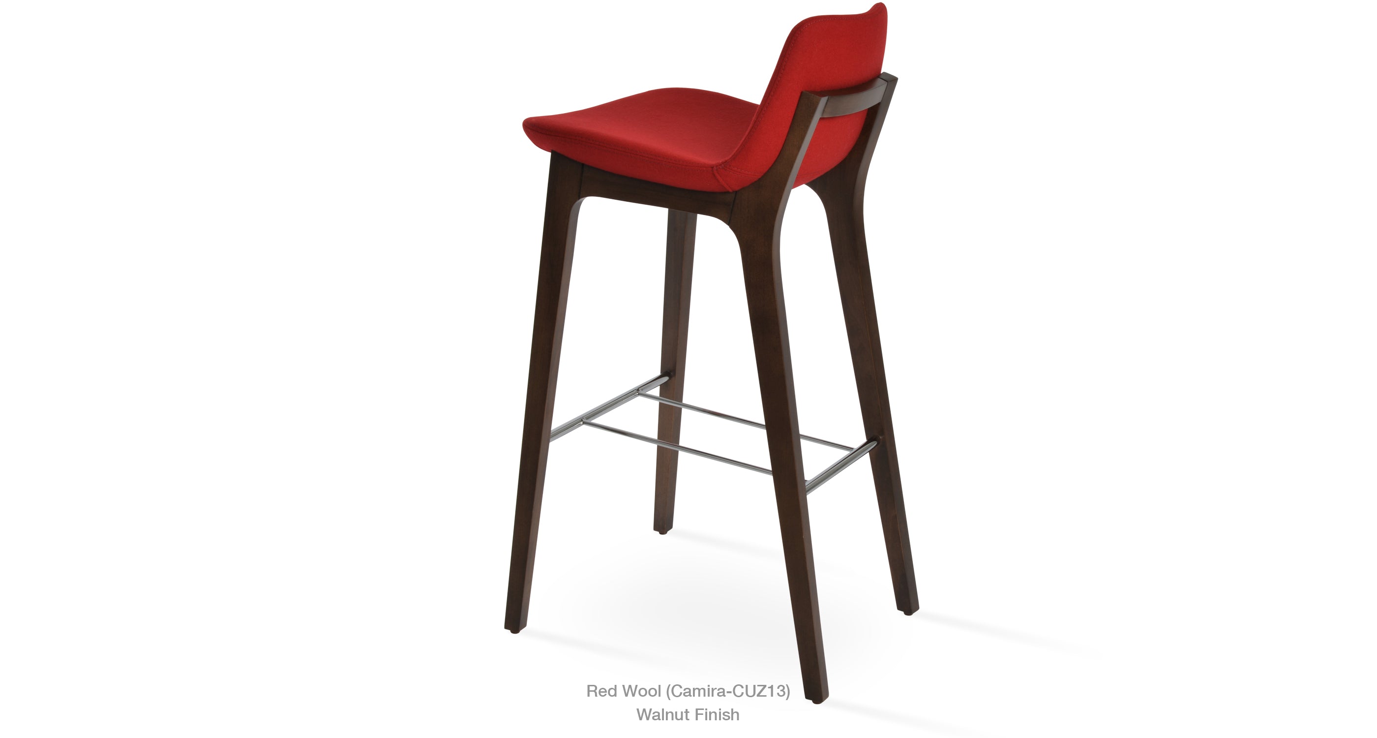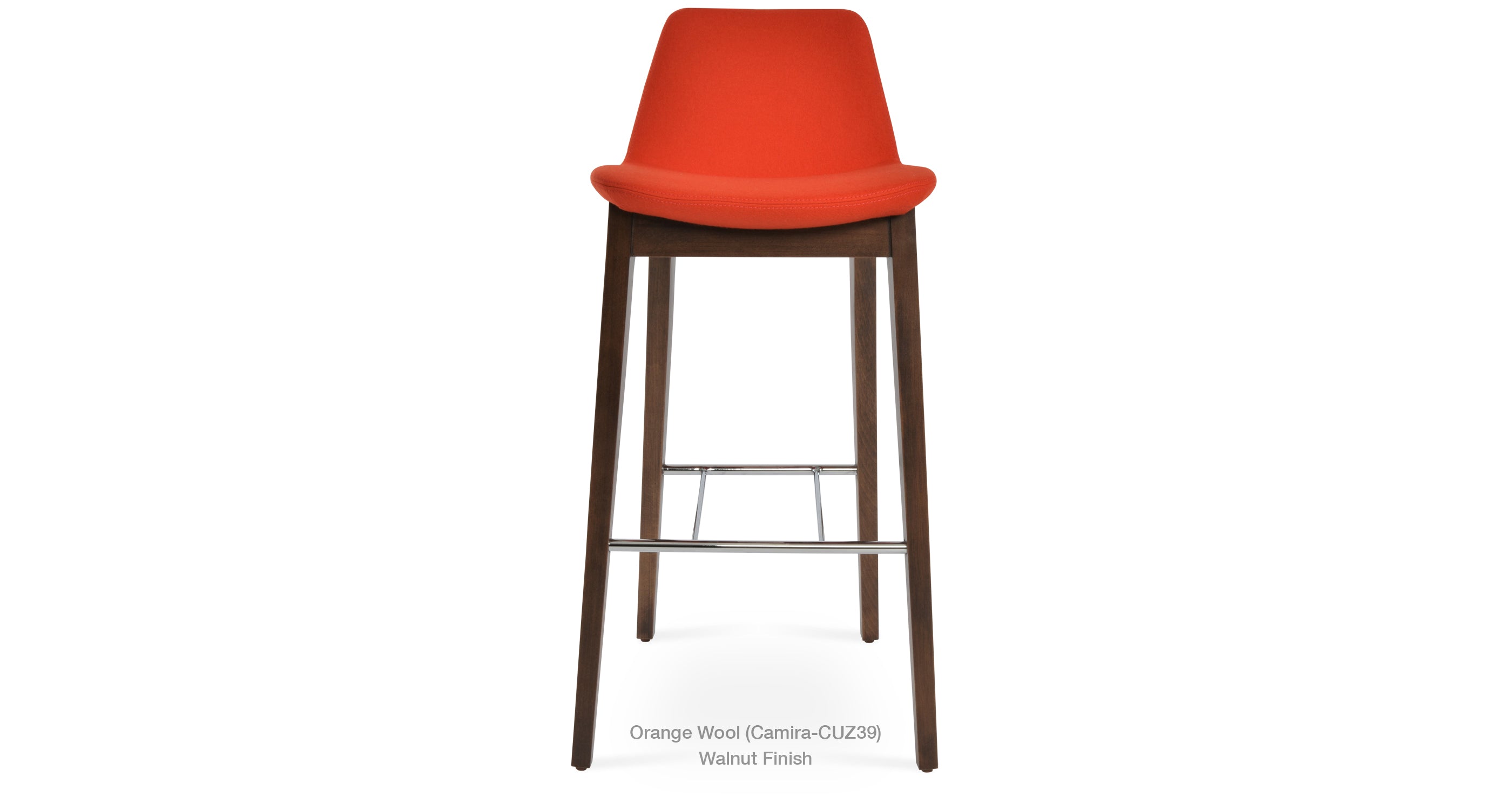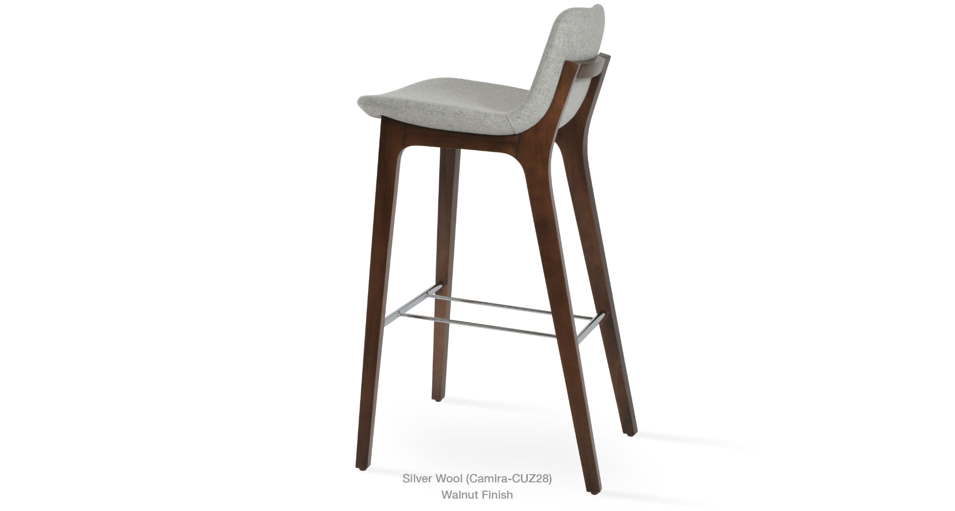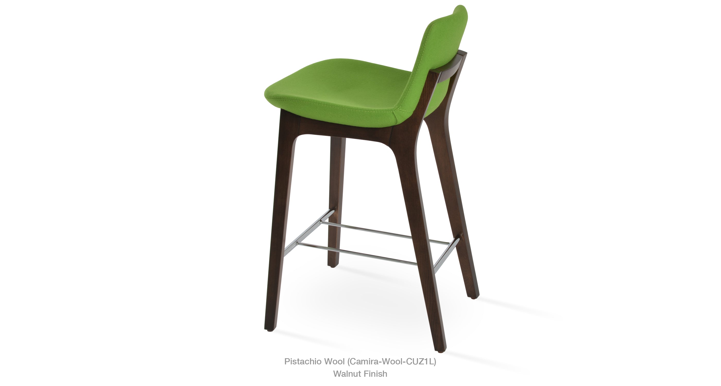 Pera Wood Handle Back is a unique counter and bar stool with a comfortable upholstered seat and backrest on a walnut finish base. The seat has a steel structure with “S” shape springs for extra flexibility and strength. This steel frame is molded by an injecting polyurethane foam. Pera seat is upholstered with a removable velcro slip cover. The stool is specially recommended for commercial use with its durability. Upon request, stainless steel footrest will be used especially for contract projects.