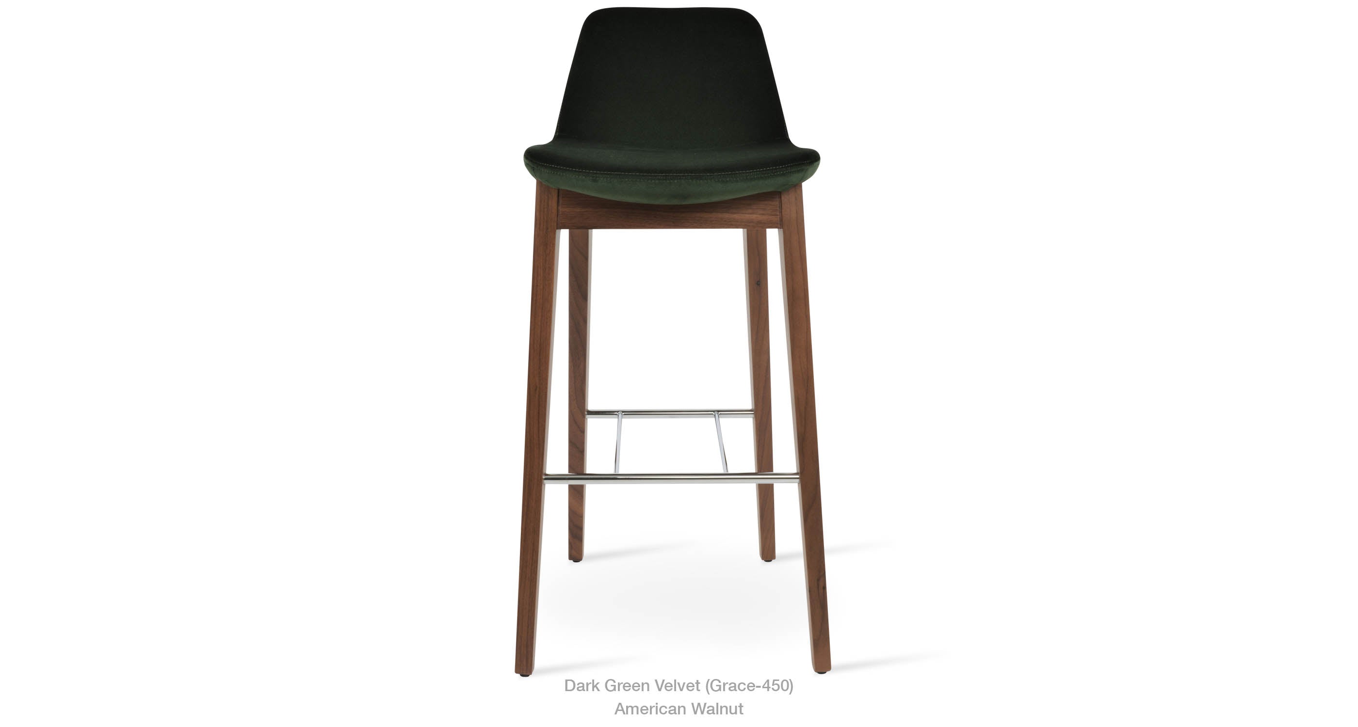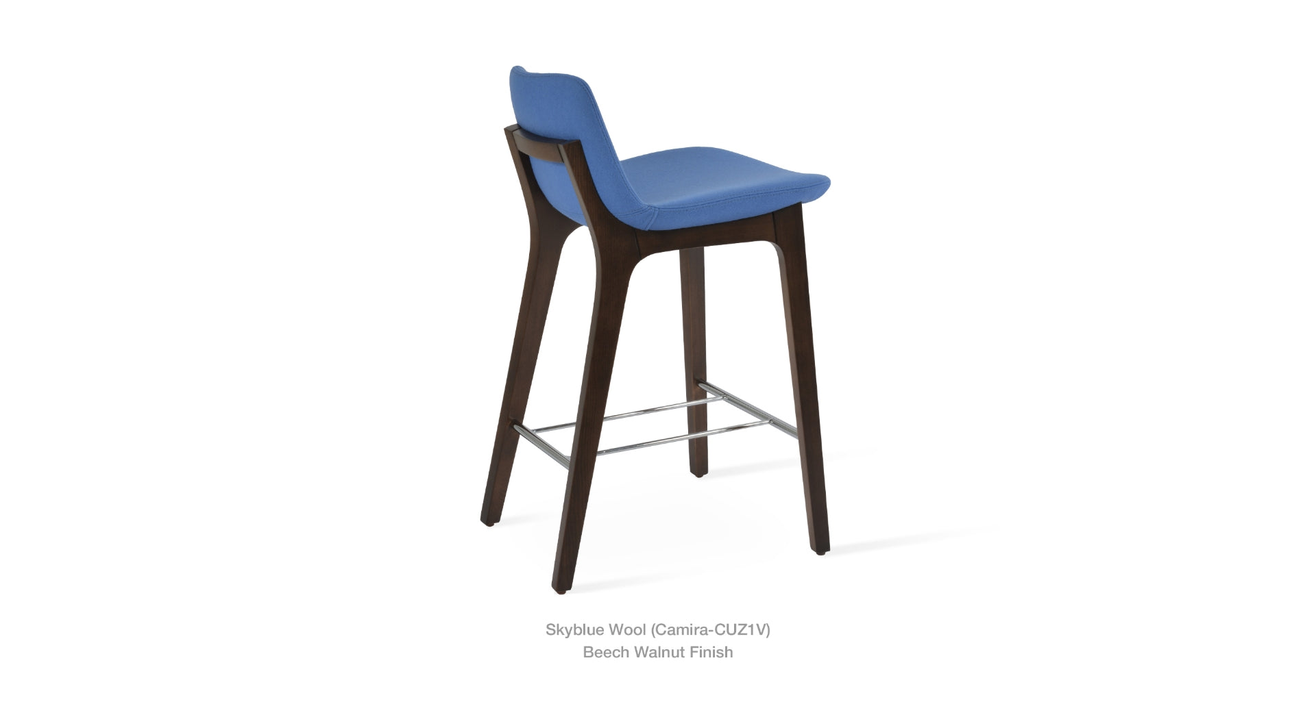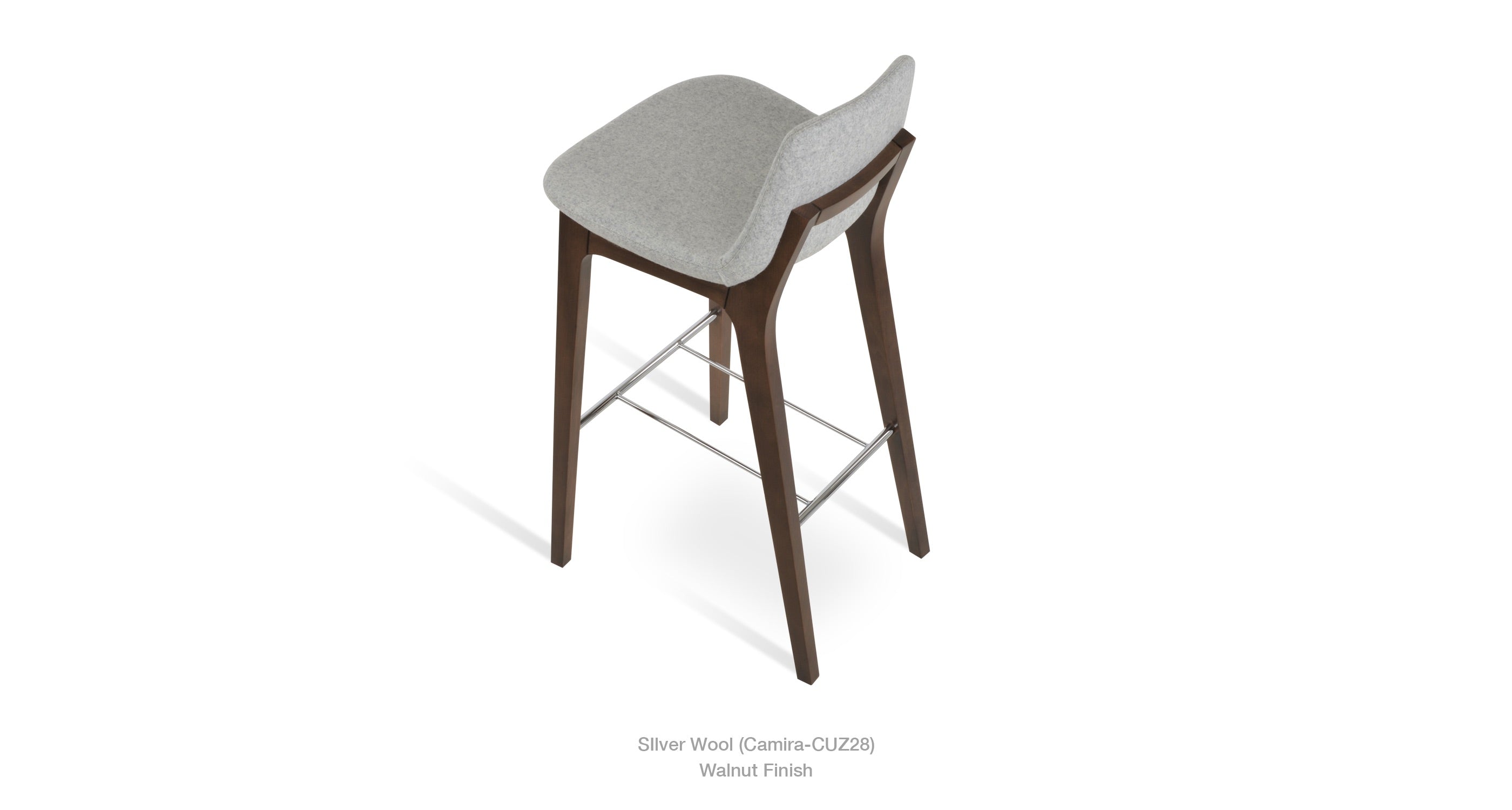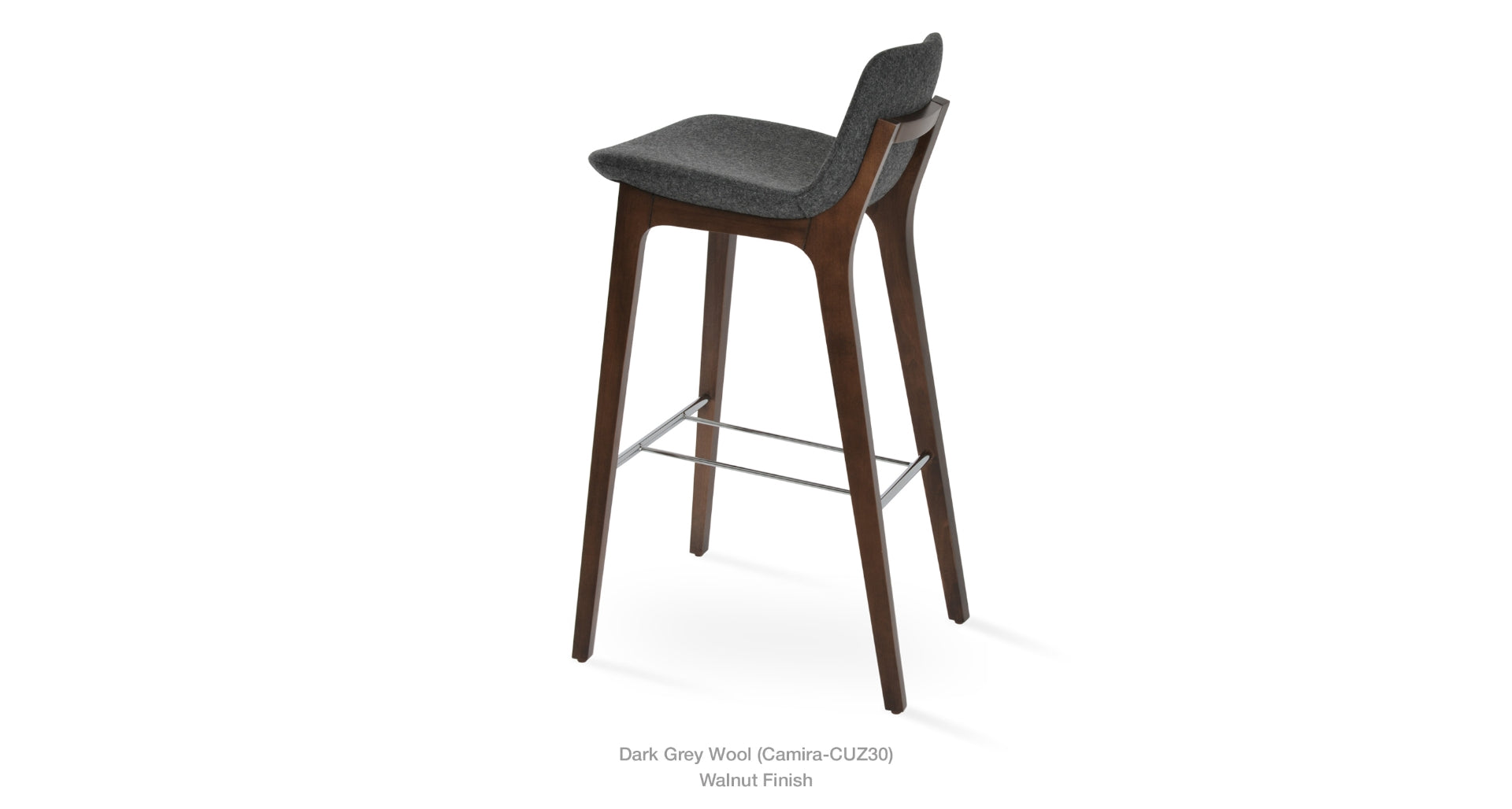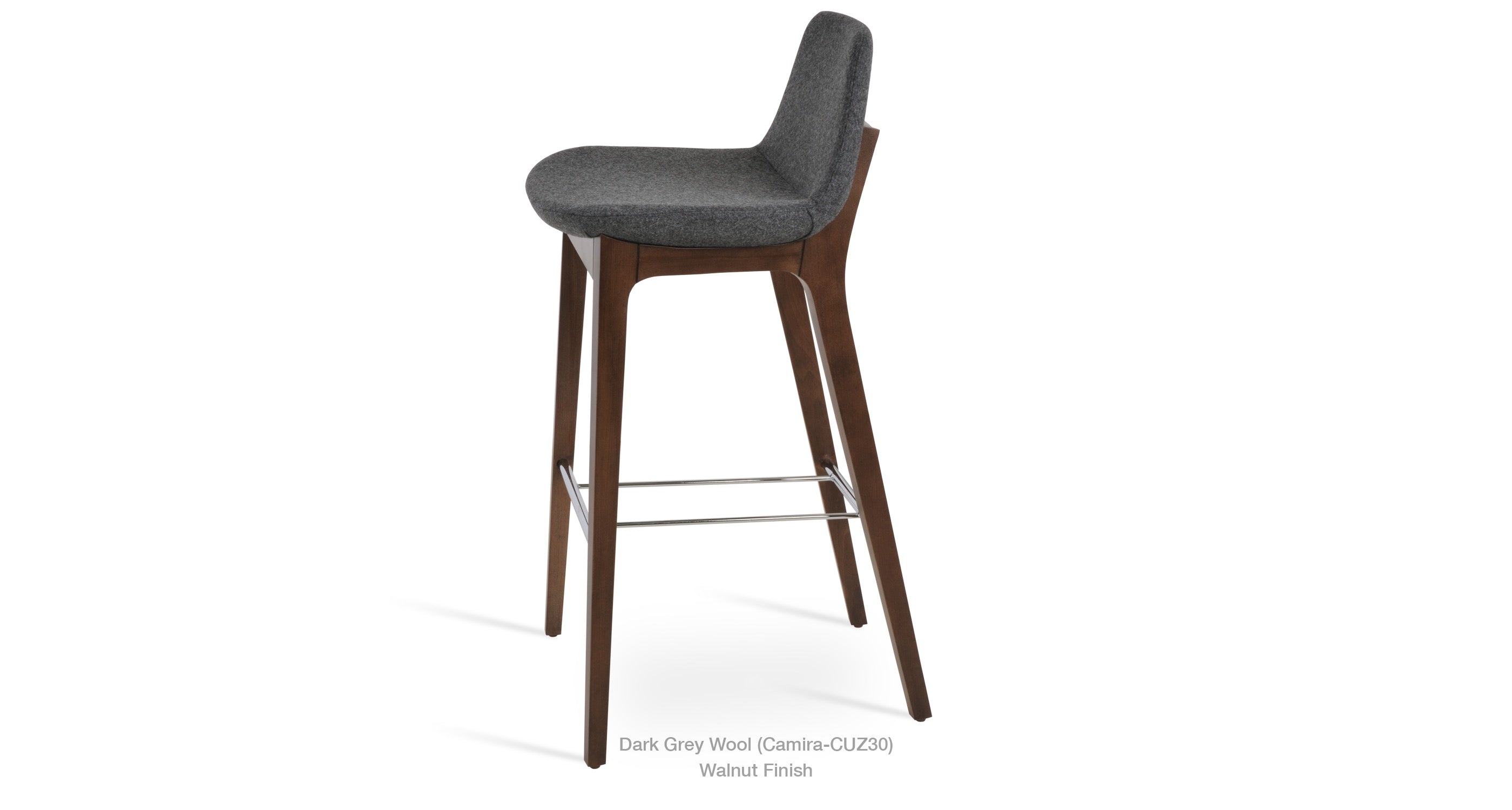 Pera Wood Handle Back is a unique counter and bar stool with a comfortable upholstered seat and backrest on a walnut finish base. The seat has a steel structure with “S” shape springs for extra flexibility and strength. This steel frame is molded by an injecting polyurethane foam. Pera seat is upholstered with a removable velcro slip cover. The stool is specially recommended for commercial use with its durability. Upon request, stainless steel footrest will be used especially for contract projects.