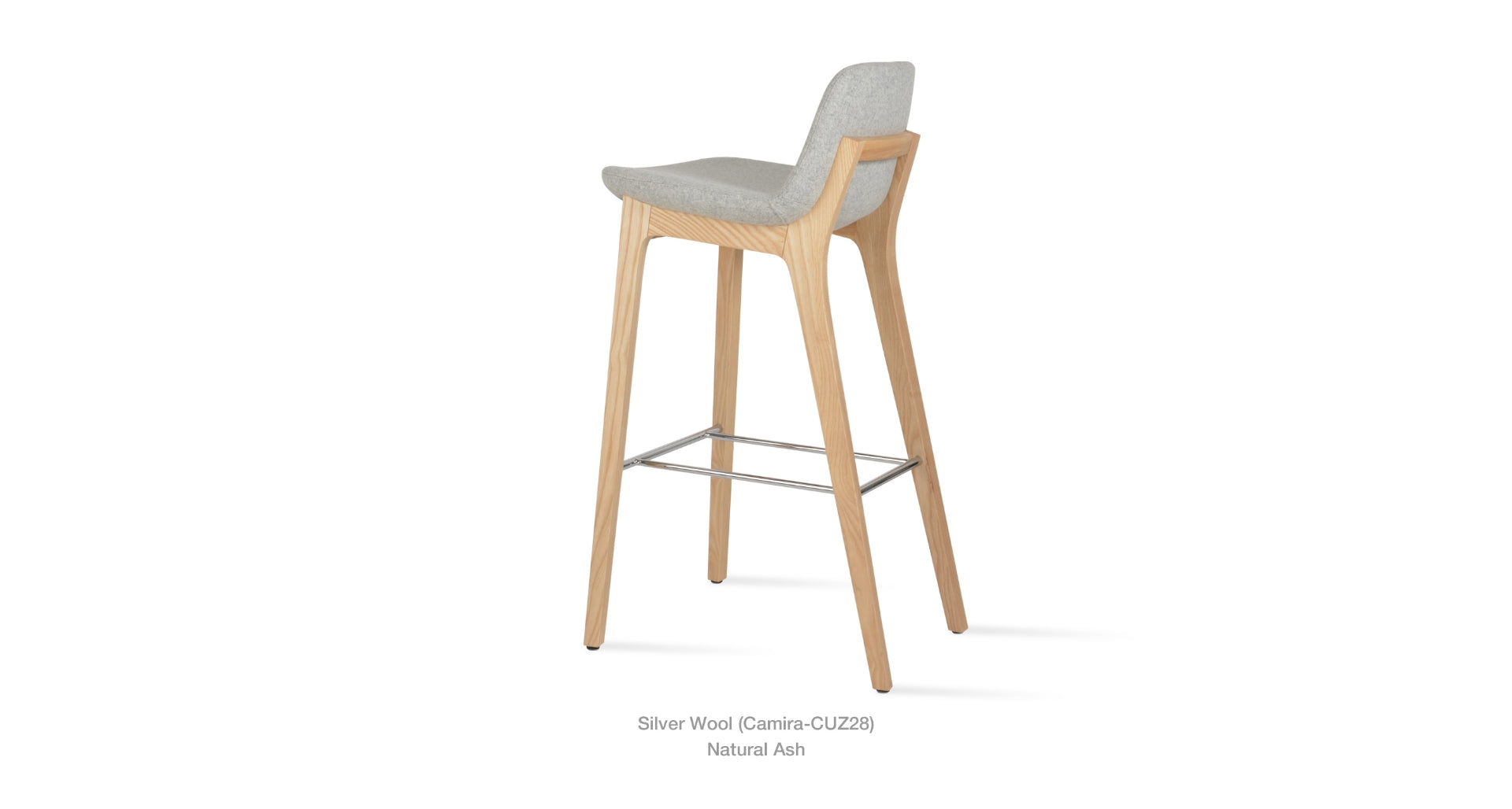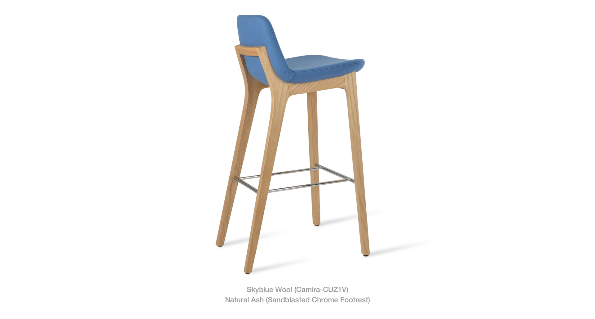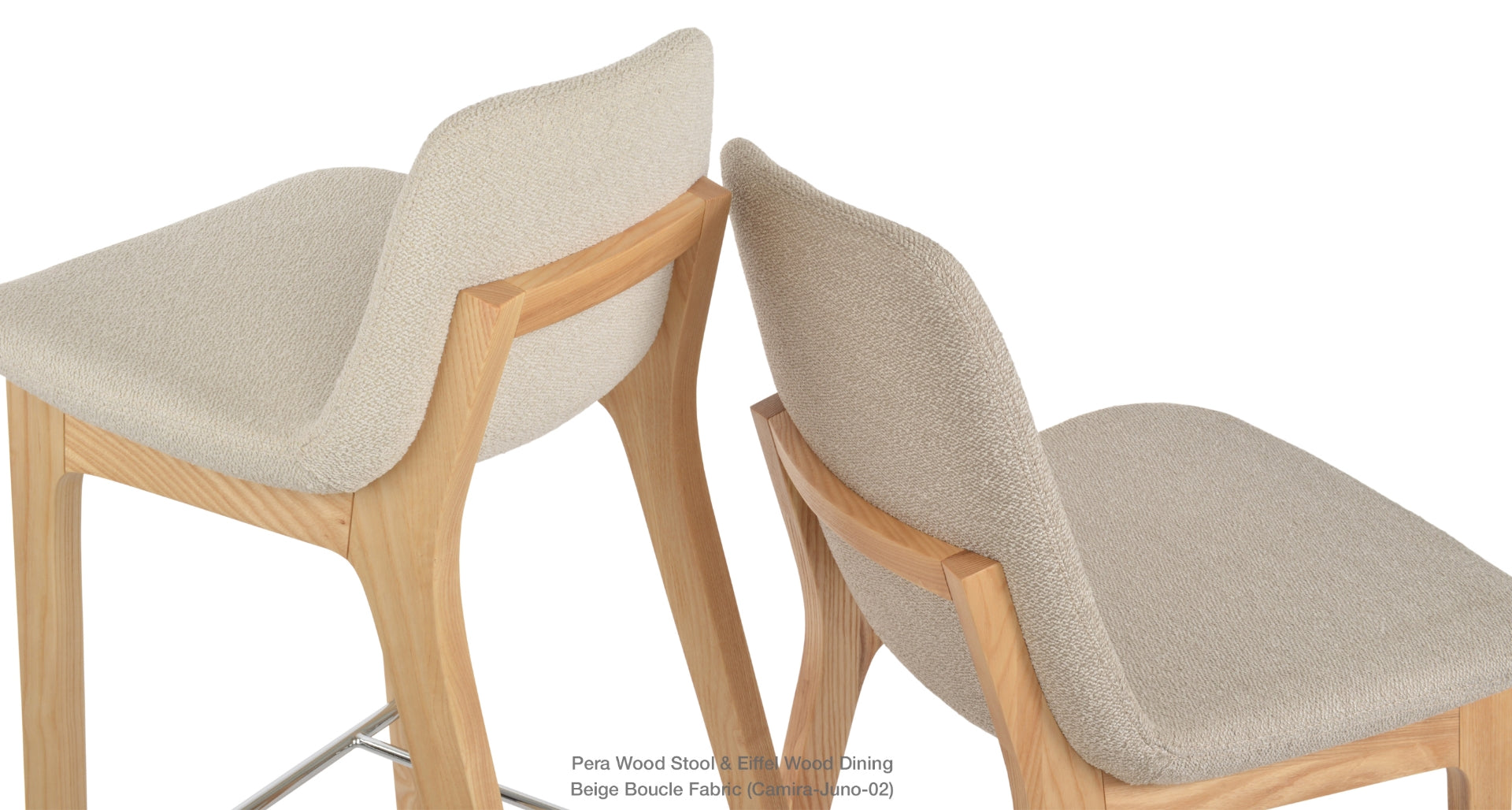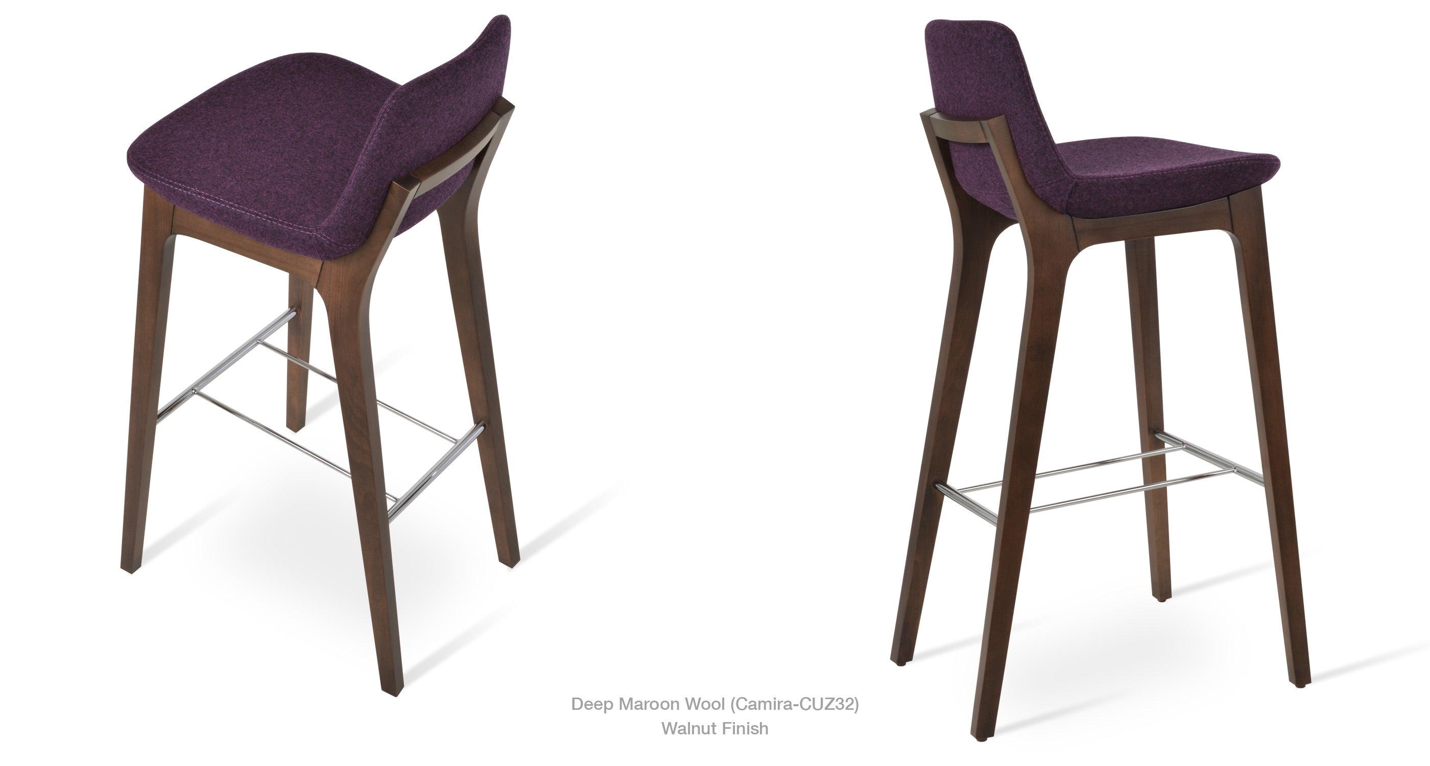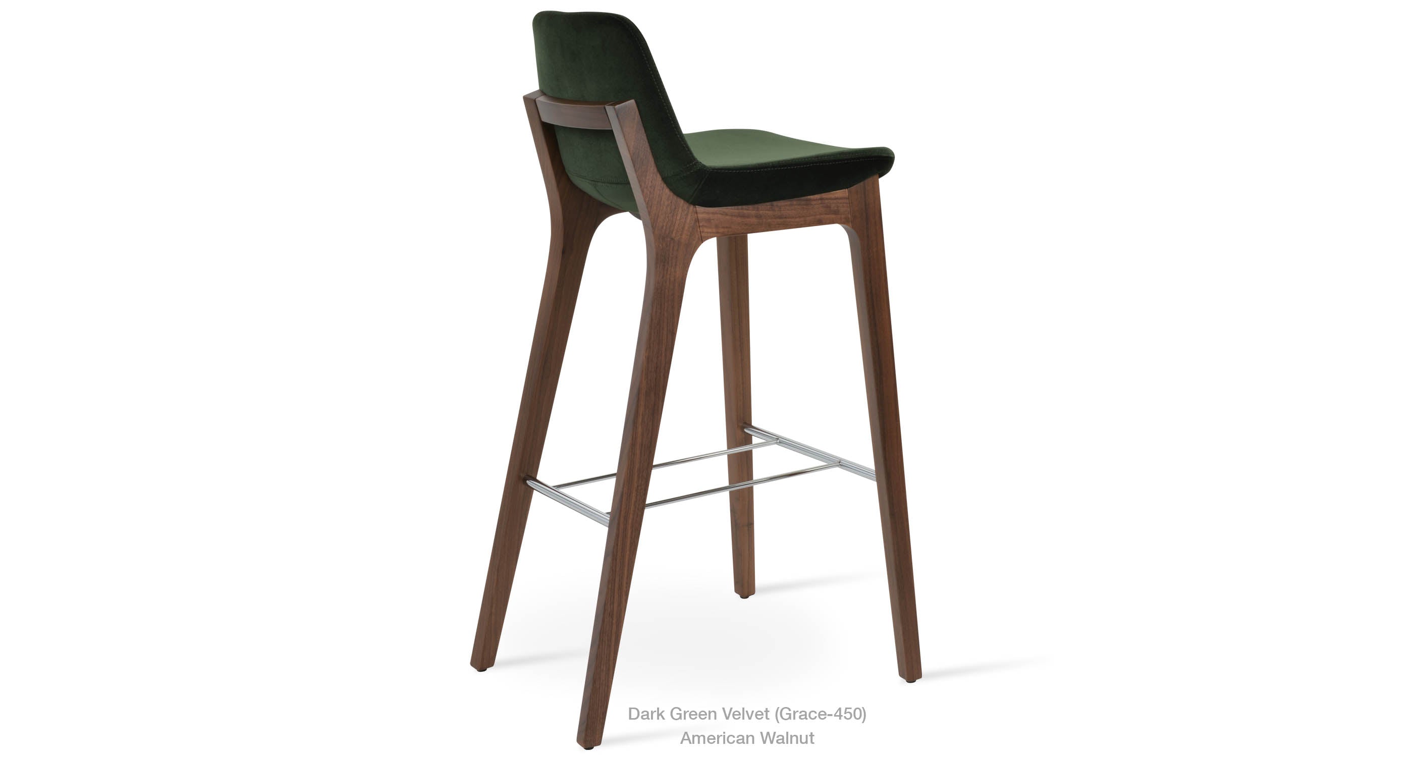 Pera Wood Handle Back is a unique counter and bar stool with a comfortable upholstered seat and backrest on a walnut finish base. The seat has a steel structure with “S” shape springs for extra flexibility and strength. This steel frame is molded by an injecting polyurethane foam. Pera seat is upholstered with a removable velcro slip cover. The stool is specially recommended for commercial use with its durability. Upon request, stainless steel footrest will be used especially for contract projects.