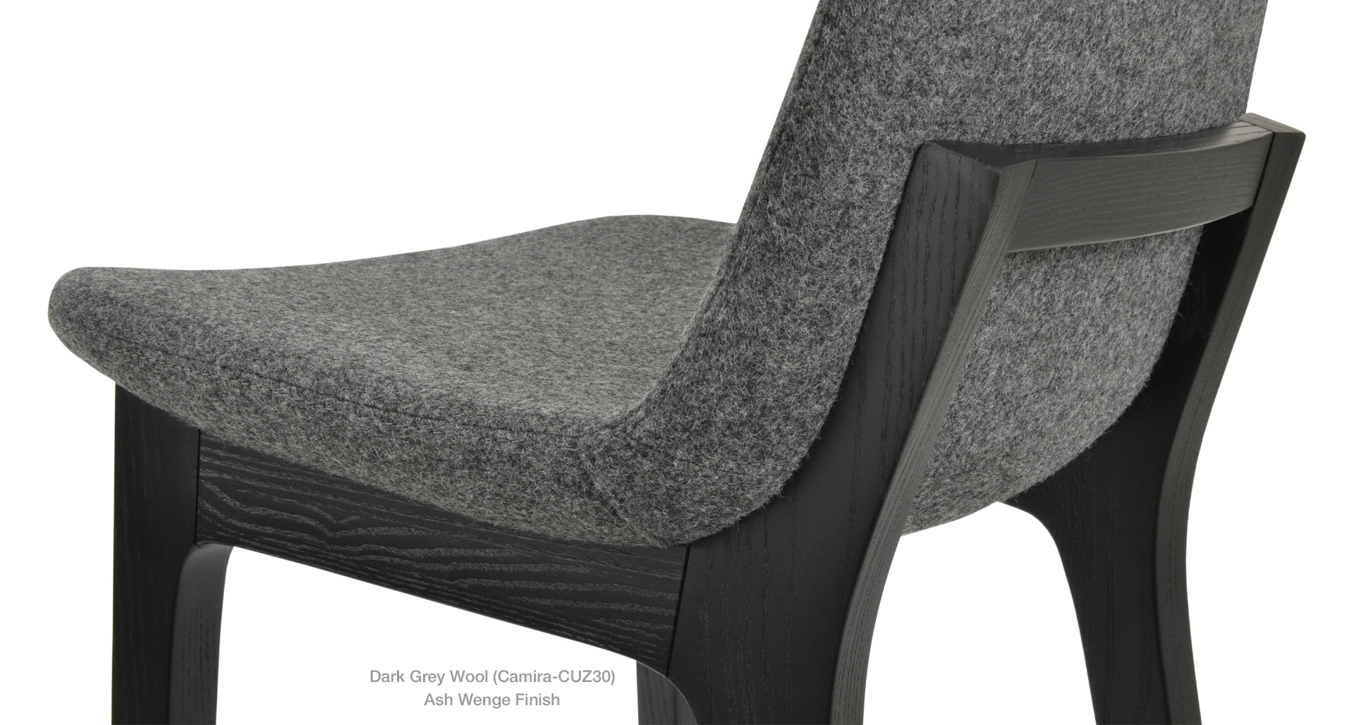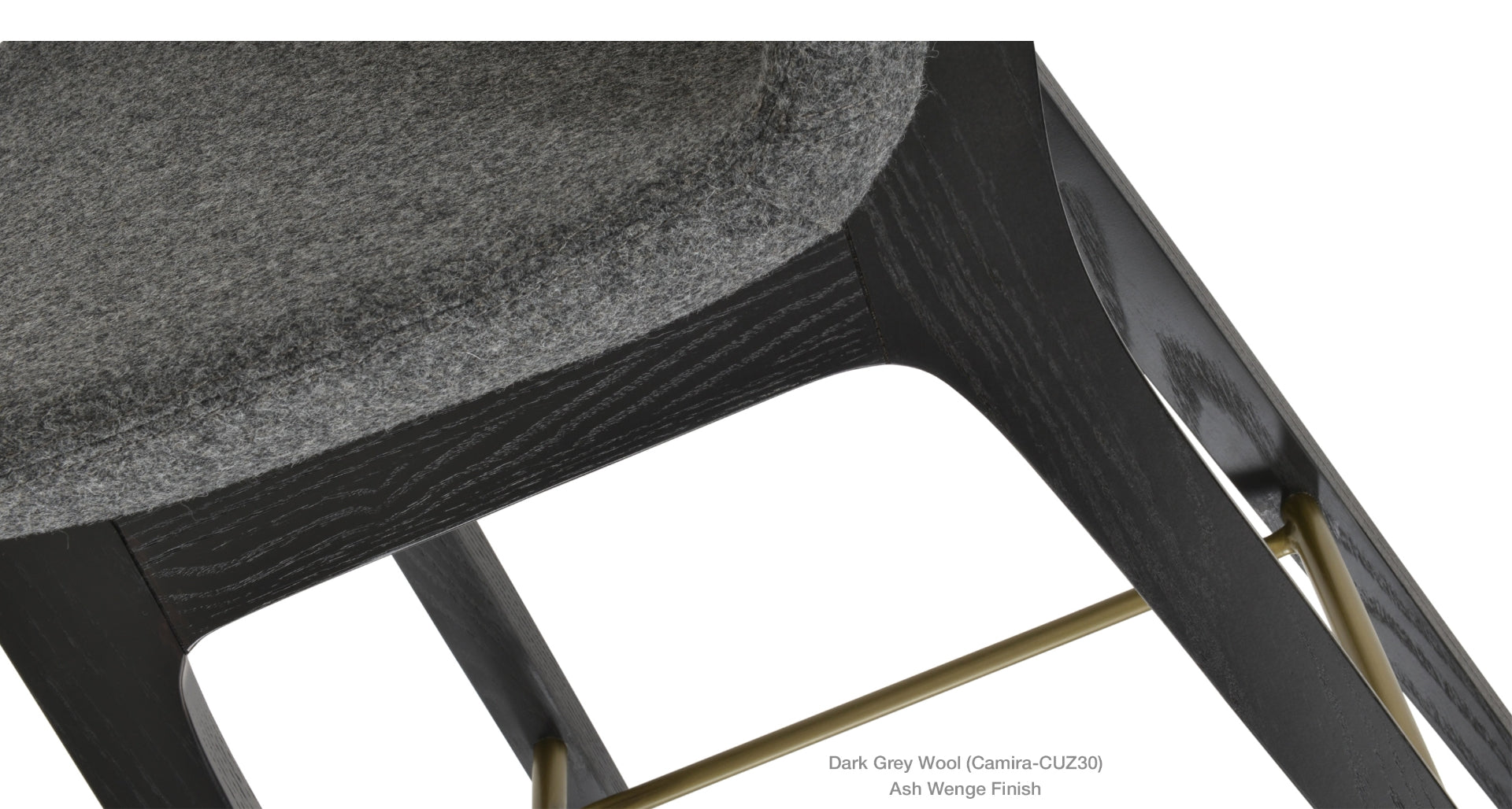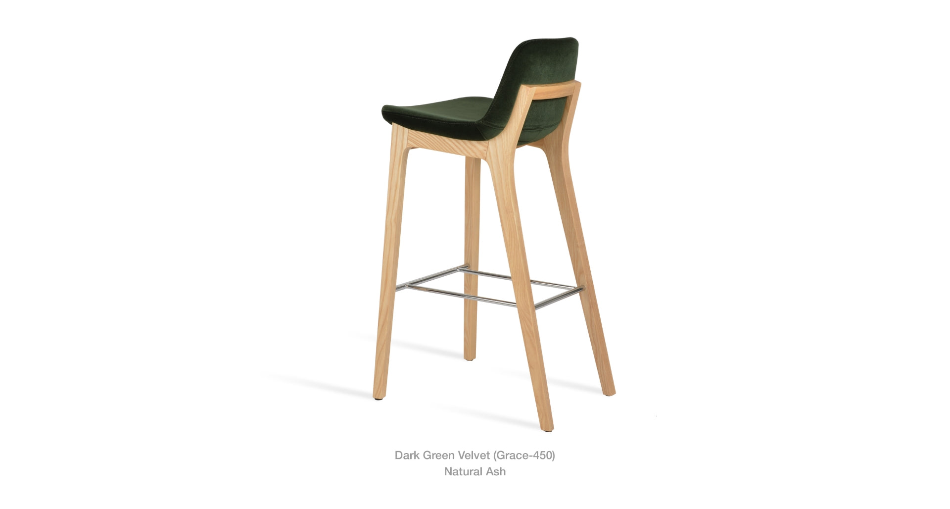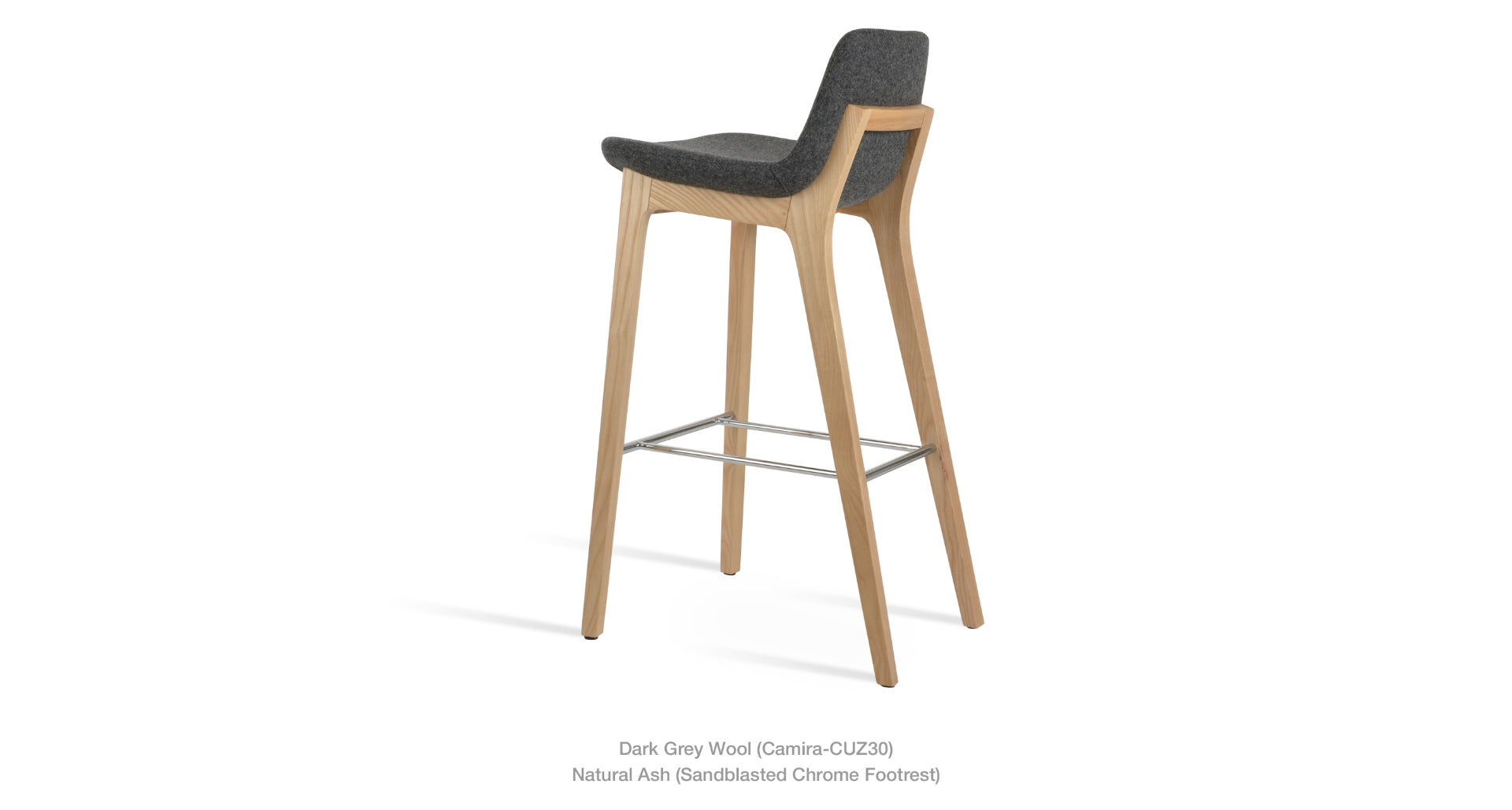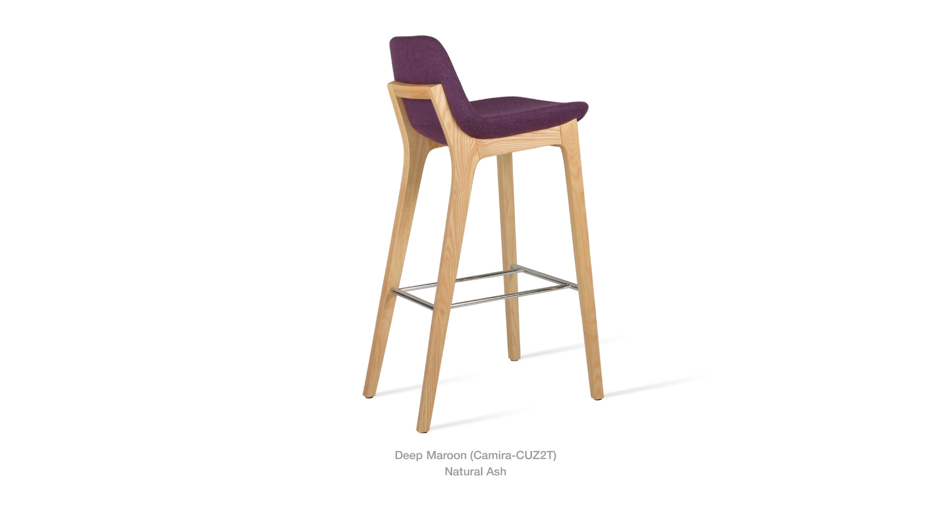 Pera Wood Handle Back is a unique counter and bar stool with a comfortable upholstered seat and backrest on a walnut finish base. The seat has a steel structure with “S” shape springs for extra flexibility and strength. This steel frame is molded by an injecting polyurethane foam. Pera seat is upholstered with a removable velcro slip cover. The stool is specially recommended for commercial use with its durability. Upon request, stainless steel footrest will be used especially for contract projects.