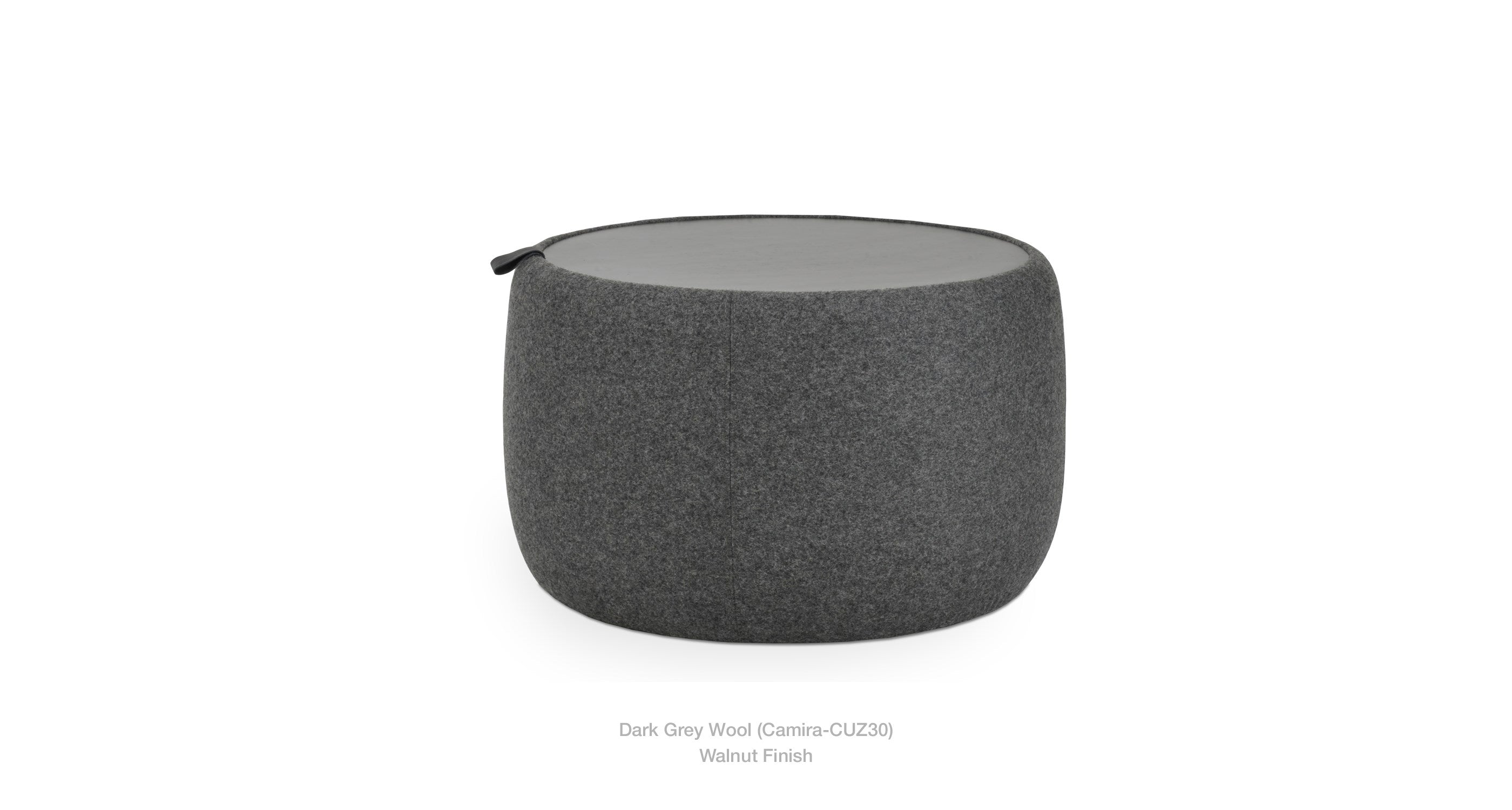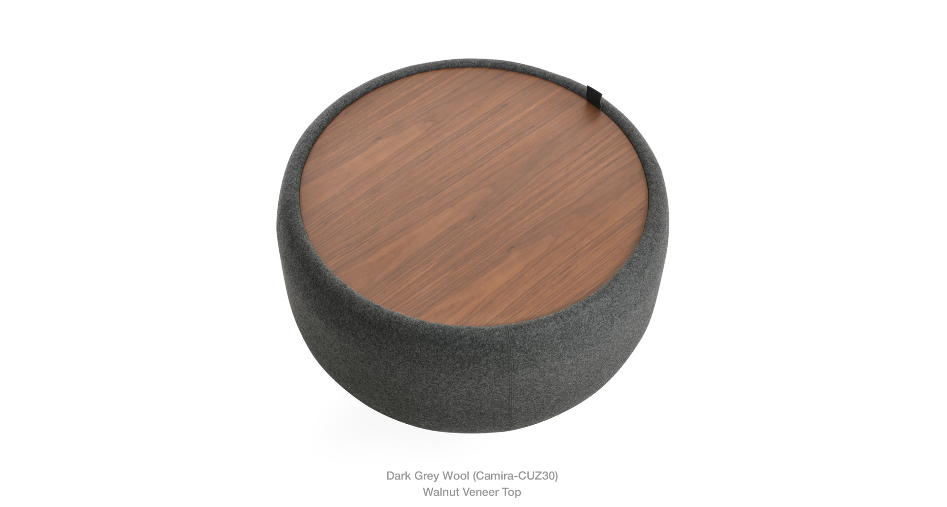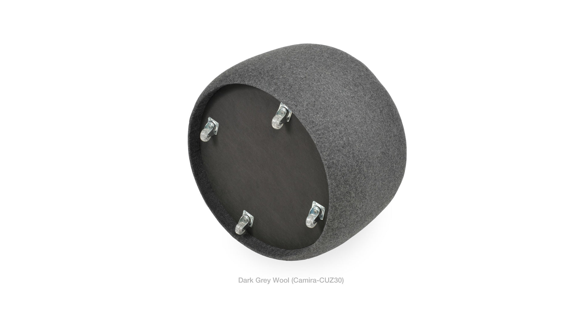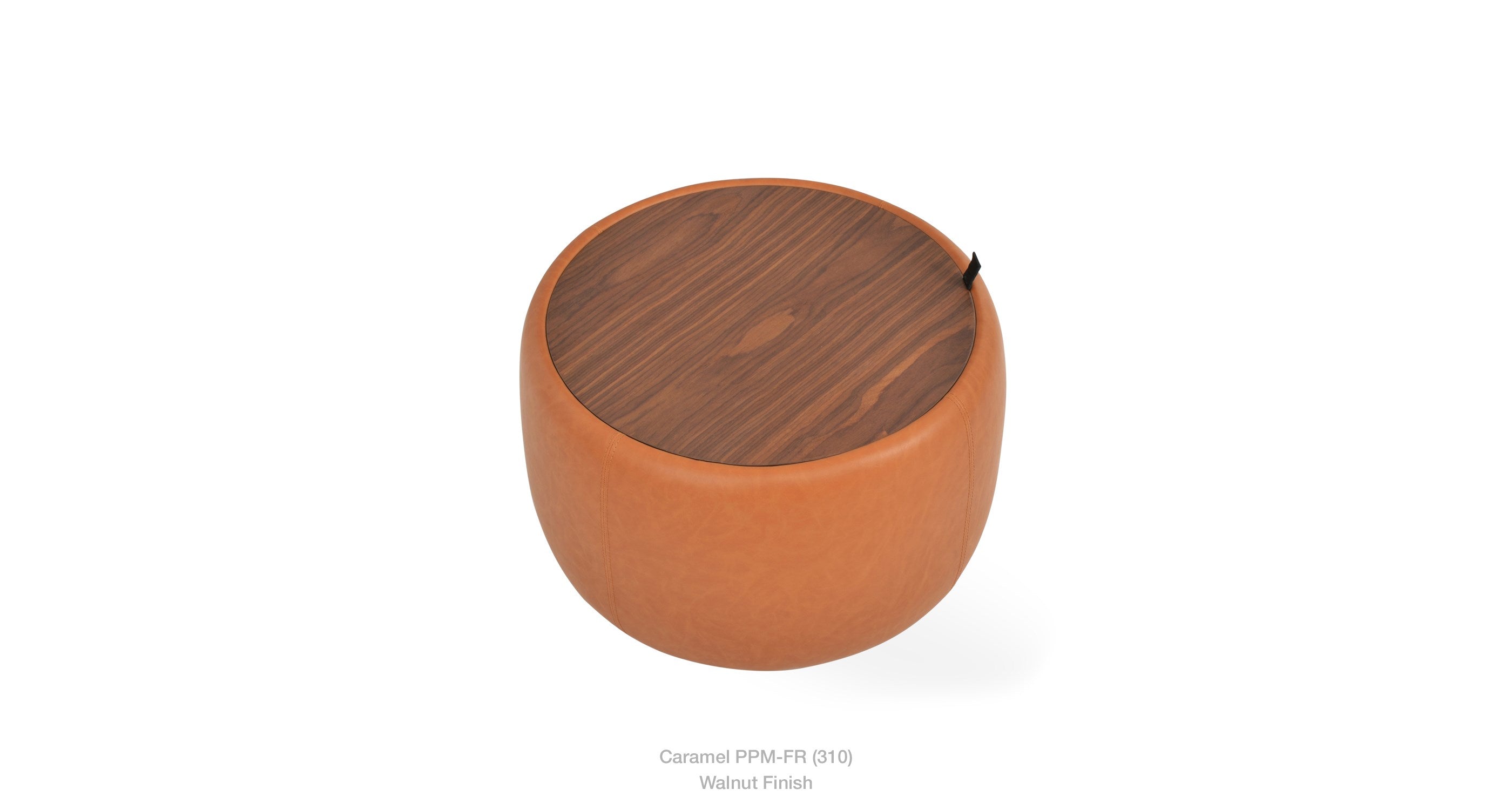 Curvy and little, Planet Ottoman / storage / coffee table can serve as additional seating or provide convenient table top space in any living space. Small in size but refined in detail, the ottoman is upholstered in PPM, Camira Wool and Boucle Fabric that comes with five castors on the bottom for easy maneuvering. The top of the ottoman is beech wood finished in walnut and it can easily be lifted via a small PPM strap detailing and can be used as storage item.