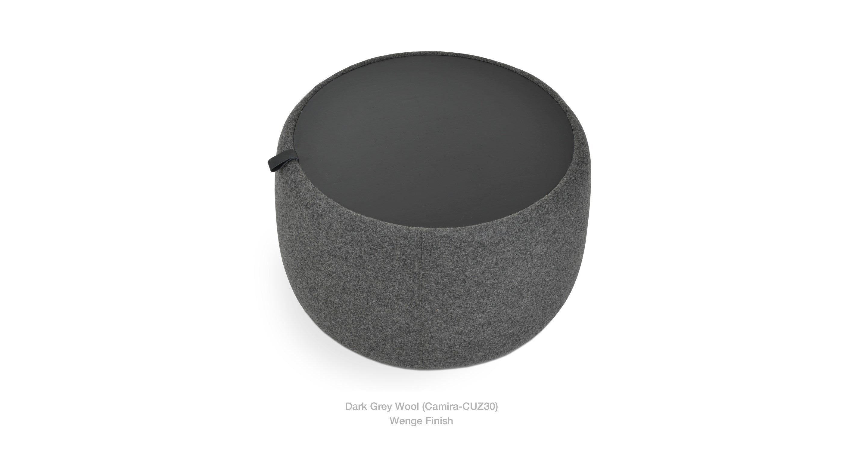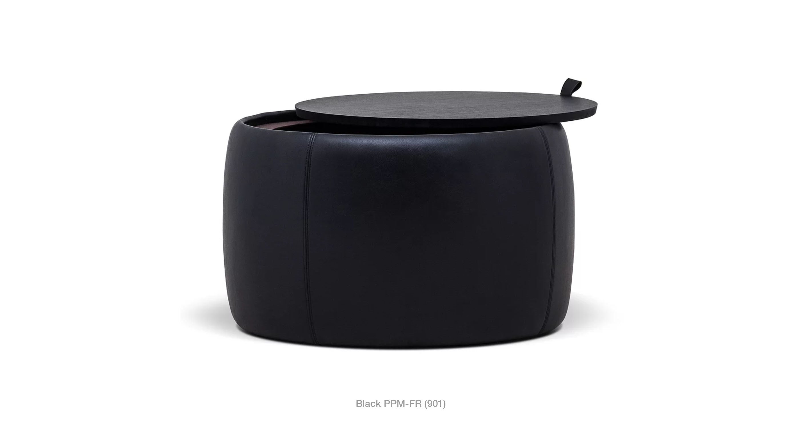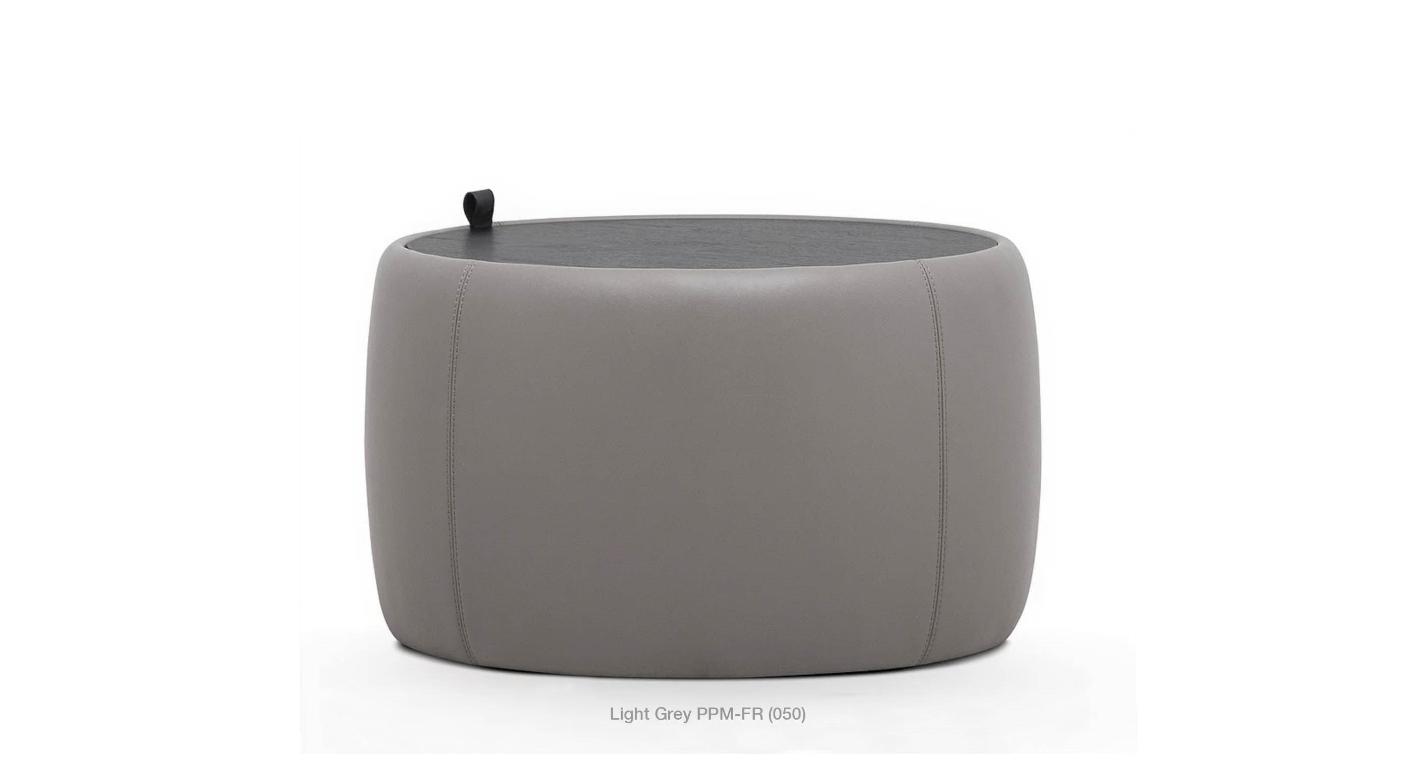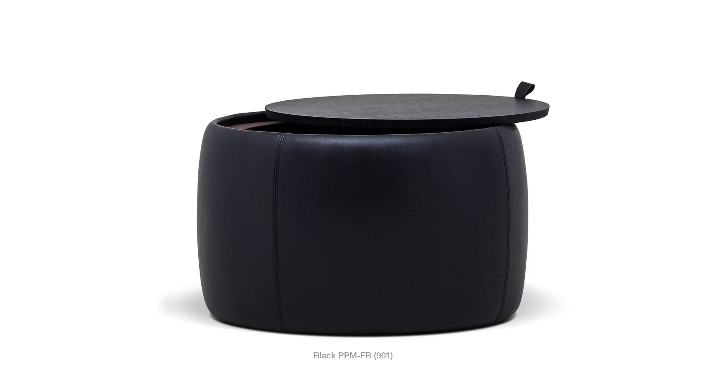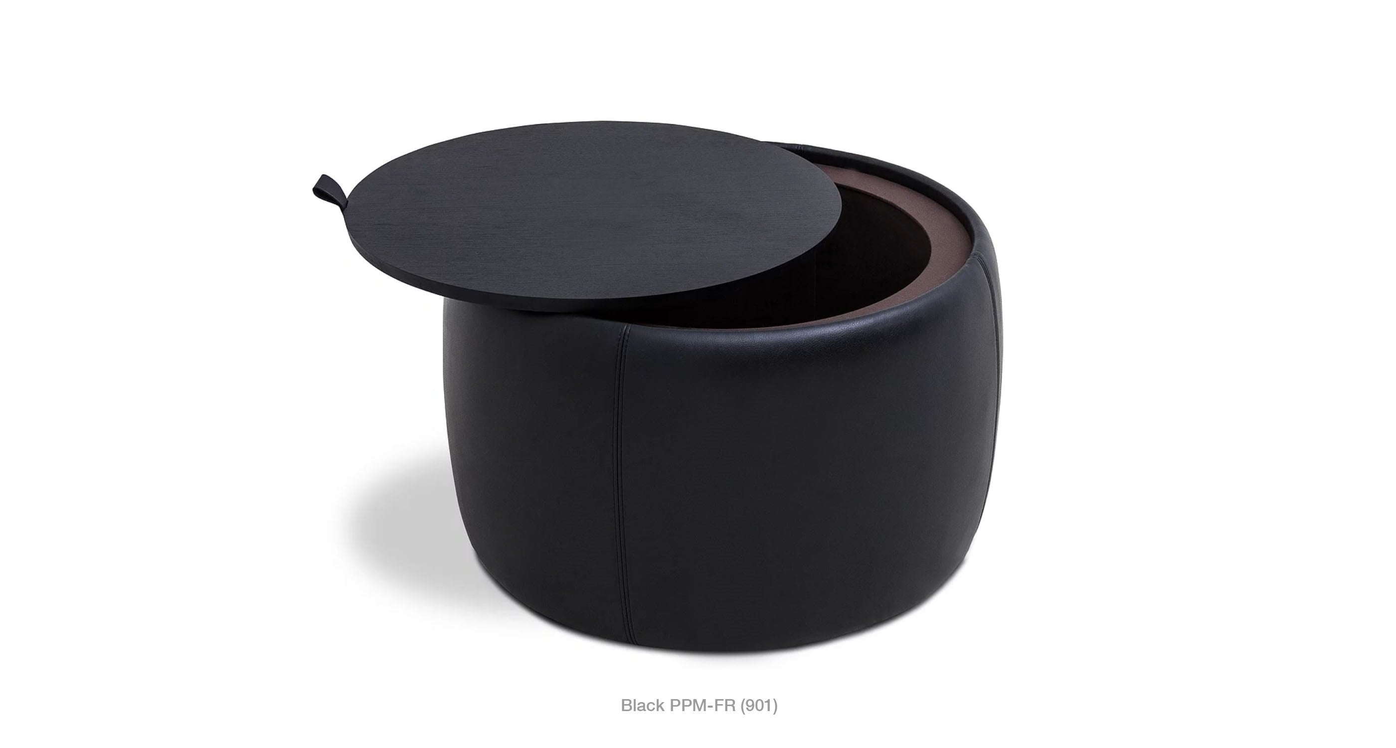 Curvy and little, Planet Ottoman / storage / coffee table can serve as additional seating or provide convenient table top space in any living space. Small in size but refined in detail, the ottoman is upholstered in PPM, Camira Wool and Boucle Fabric that comes with five castors on the bottom for easy maneuvering. The top of the ottoman is beech wood finished in walnut and it can easily be lifted via a small PPM strap detailing and can be used as storage item.
