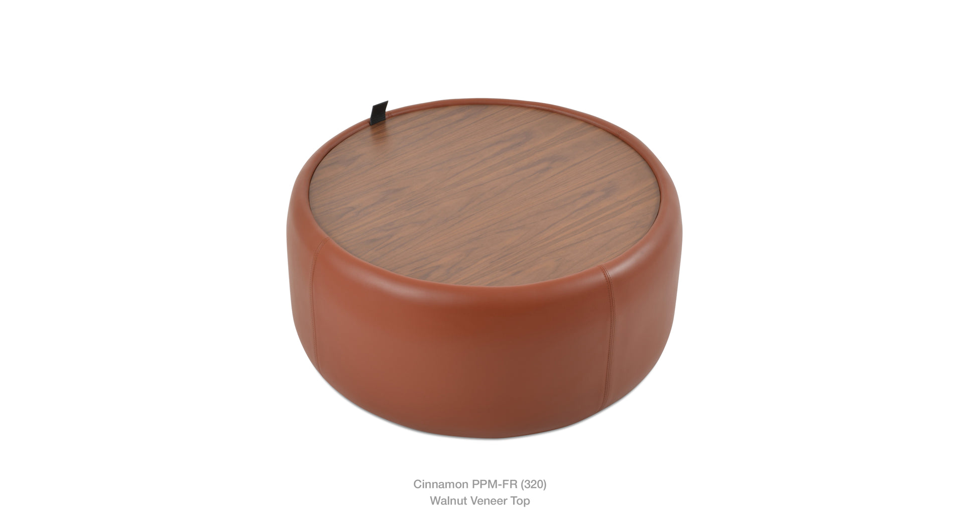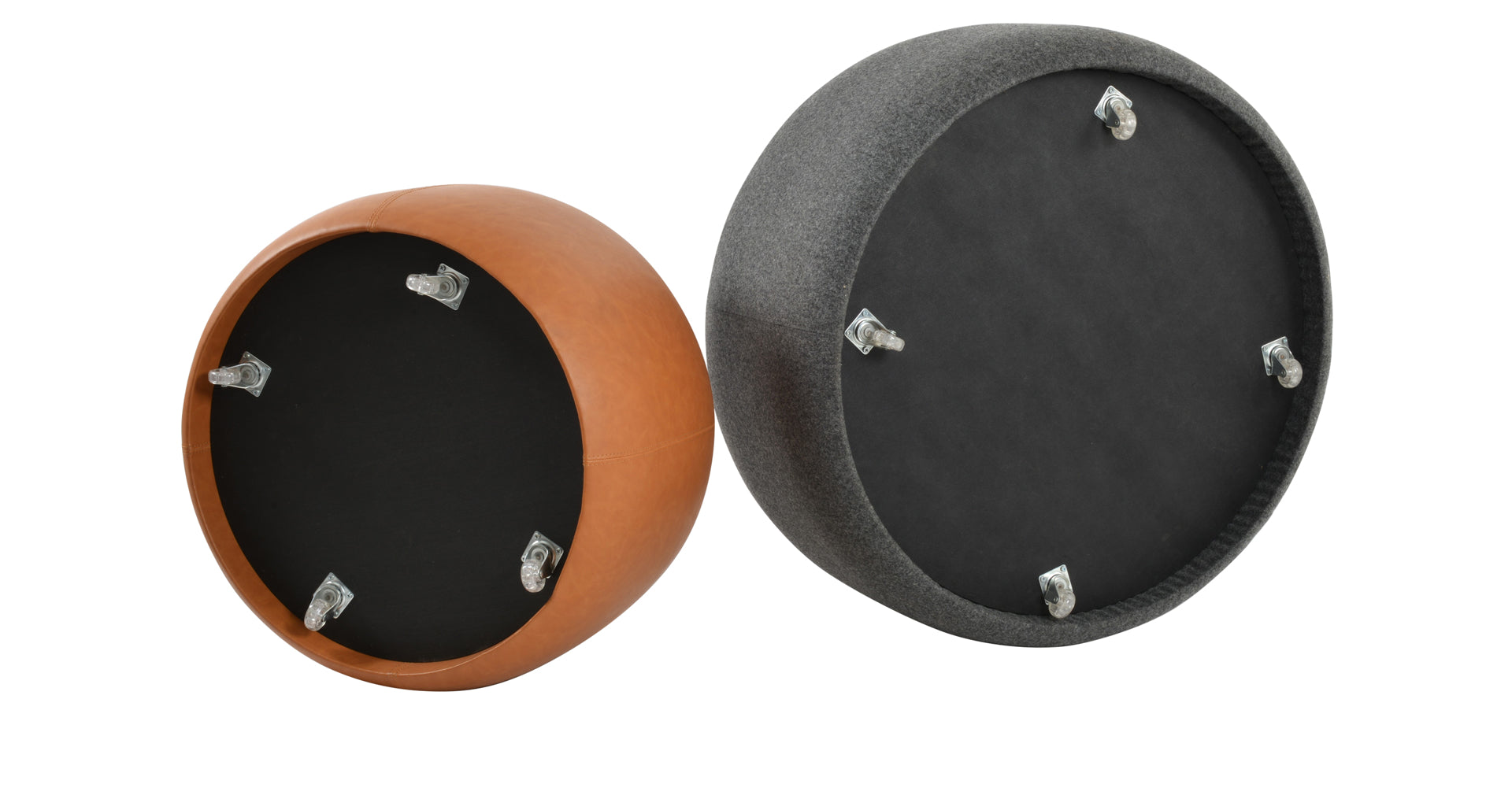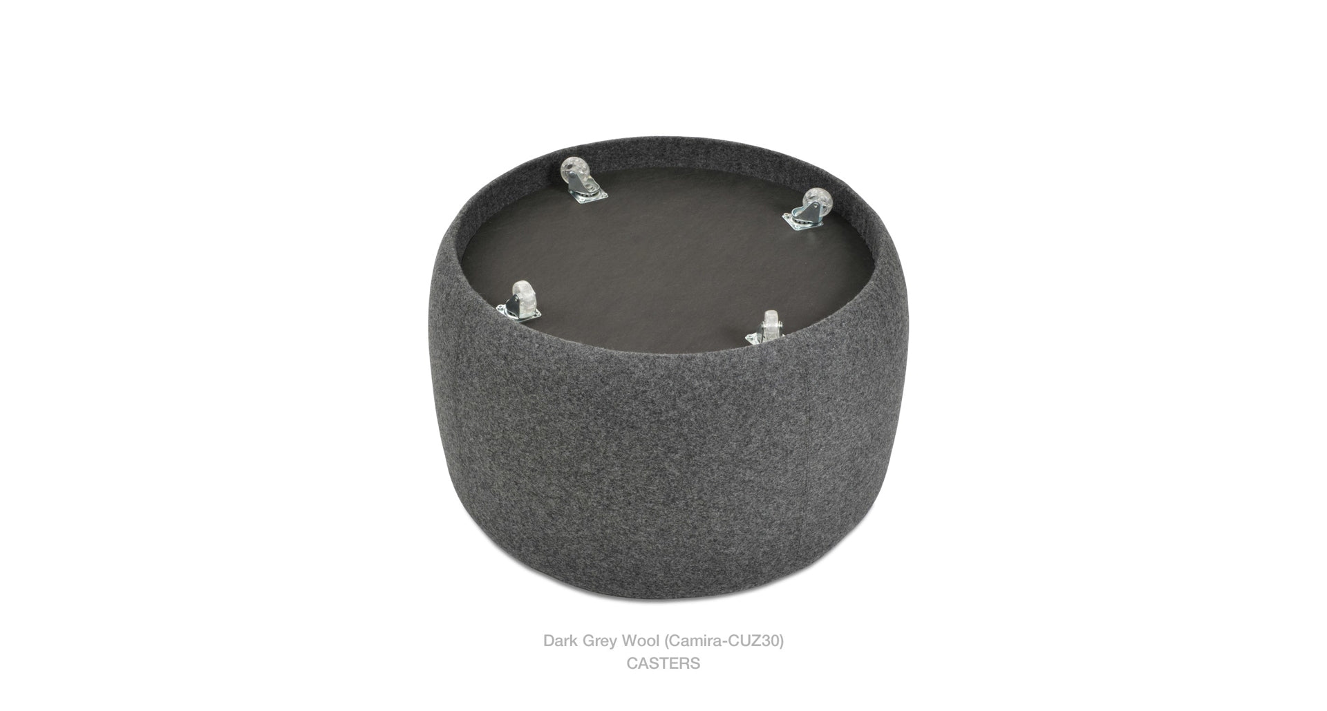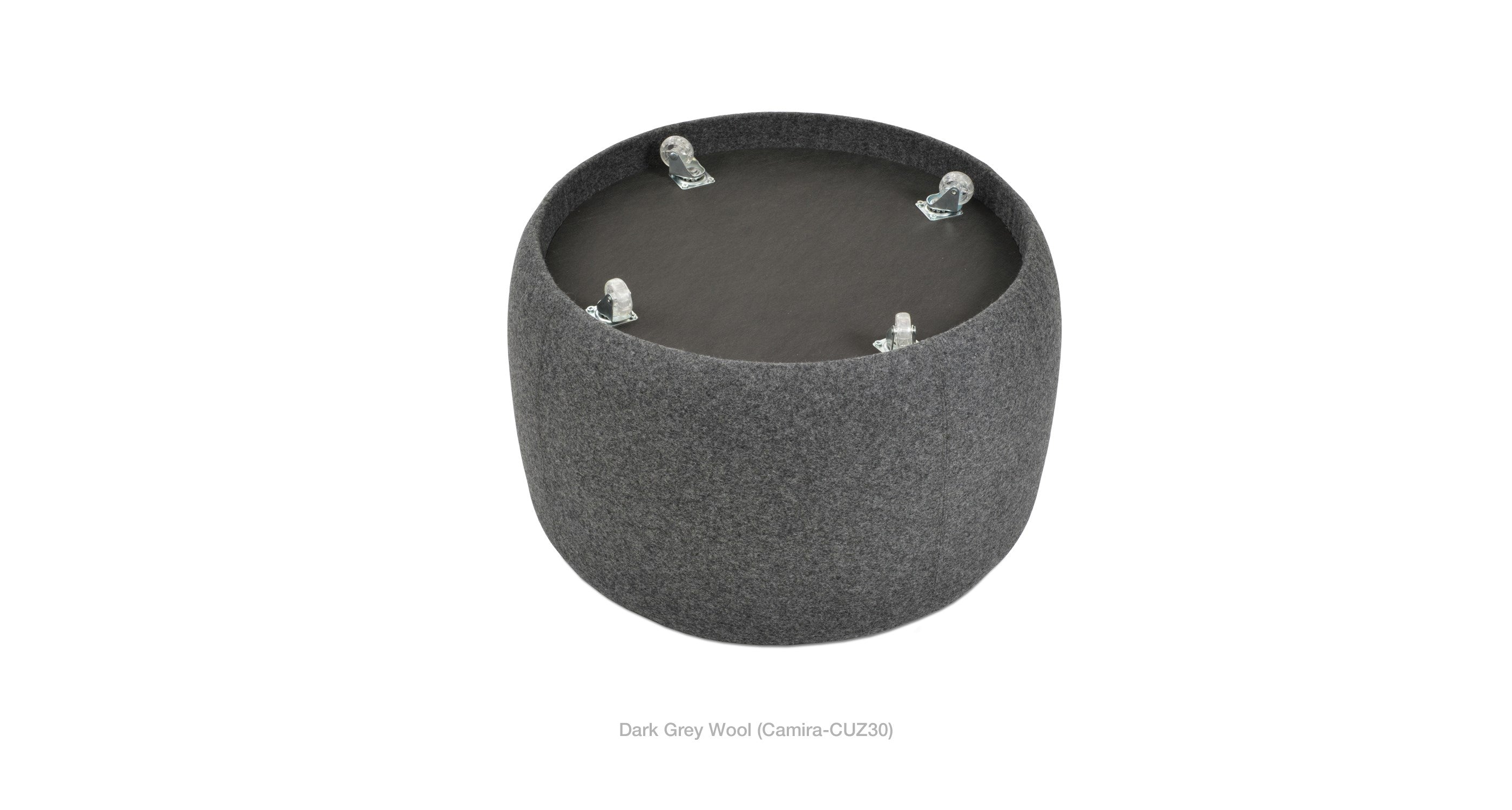 Curvy and little, Planet Ottoman / storage / coffee table can serve as additional seating or provide convenient table top space in any living space. Small in size but refined in detail, the ottoman is upholstered in PPM, Camira Wool and Boucle Fabric that comes with five castors on the bottom for easy maneuvering. The top of the ottoman is beech wood finished in walnut and it can easily be lifted via a small PPM strap detailing and can be used as storage item.