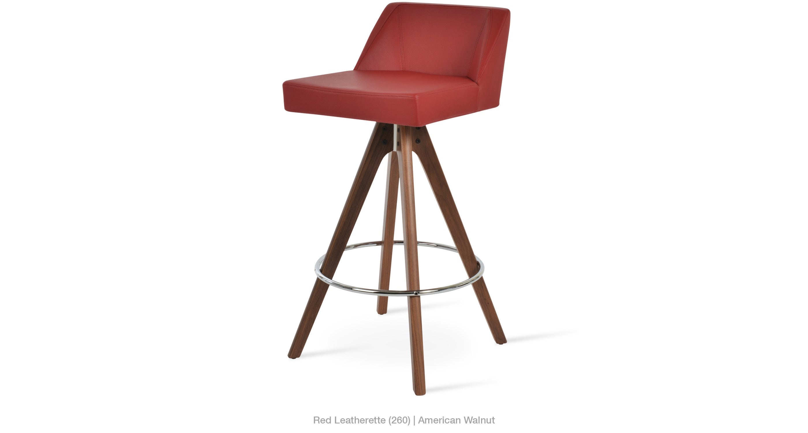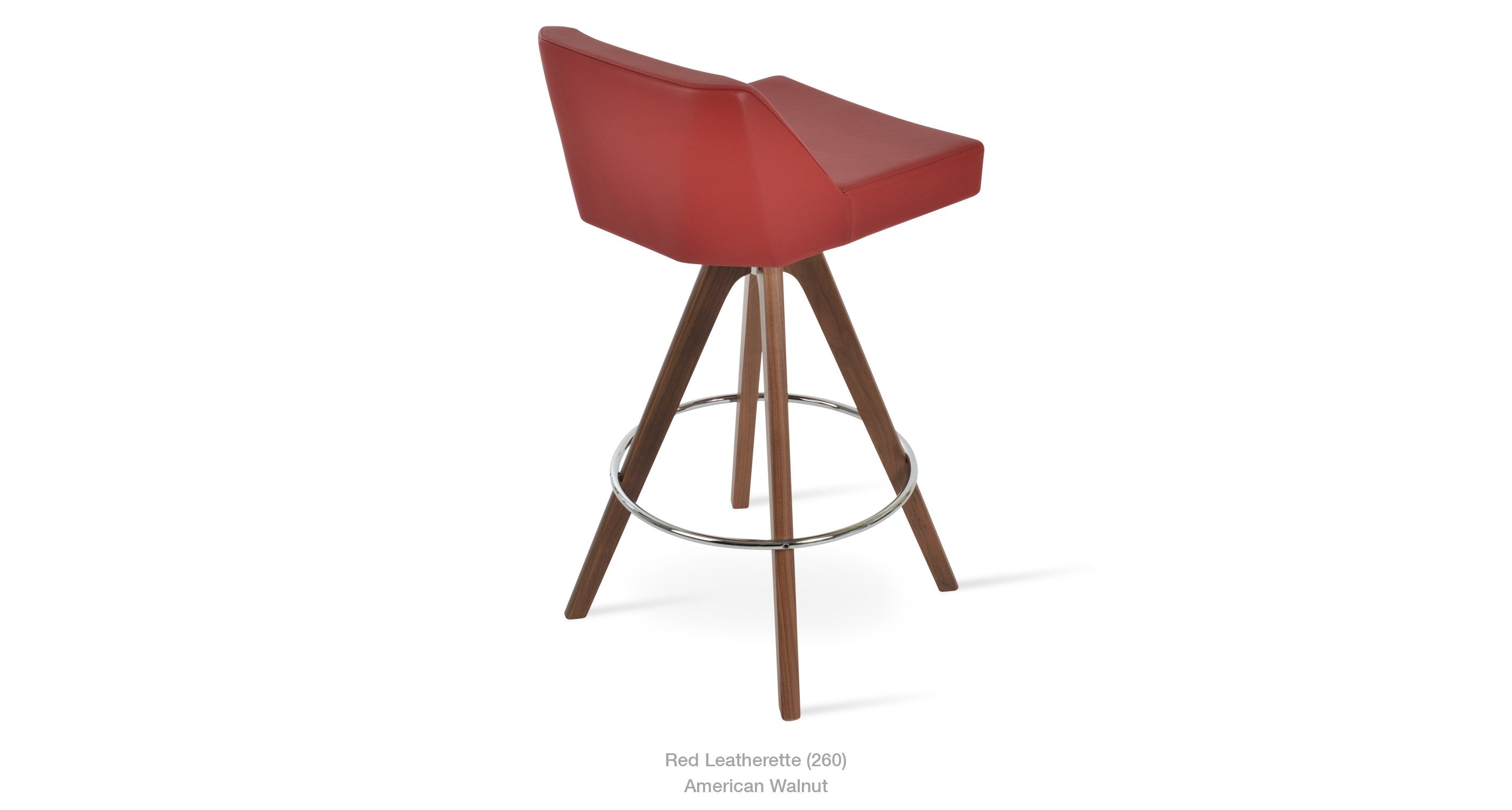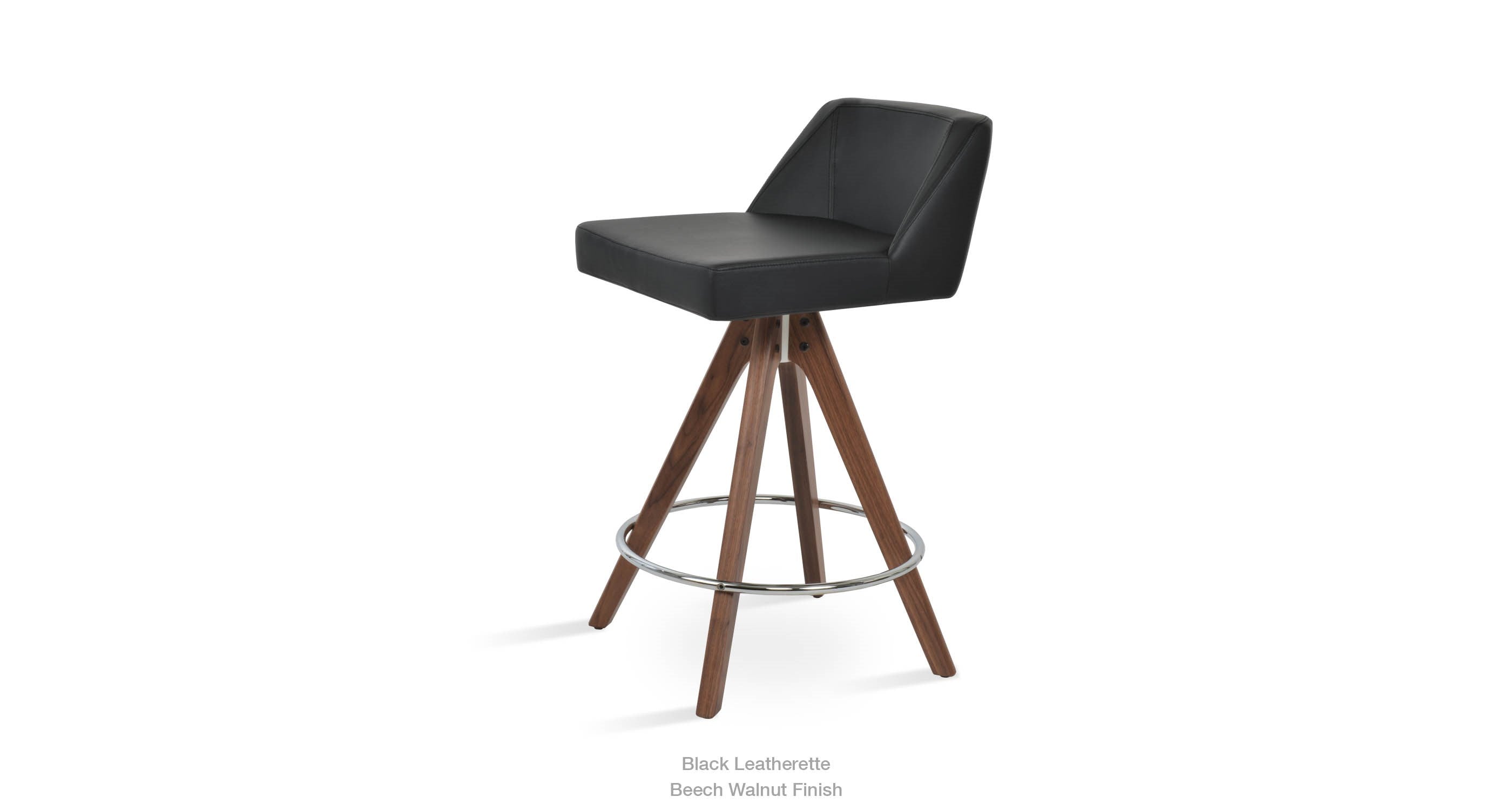 Prisma Pyramid is a contemporary stool with a comfortable upholstered seat on backrest on swivel wood legs available in walnut and natural finish. The seat has a steel structure with “S” shape springs for extra flexibility and strength. This steel frame molded by injecting polyurethane foam. The stool is suitable for both residential and commercial use.