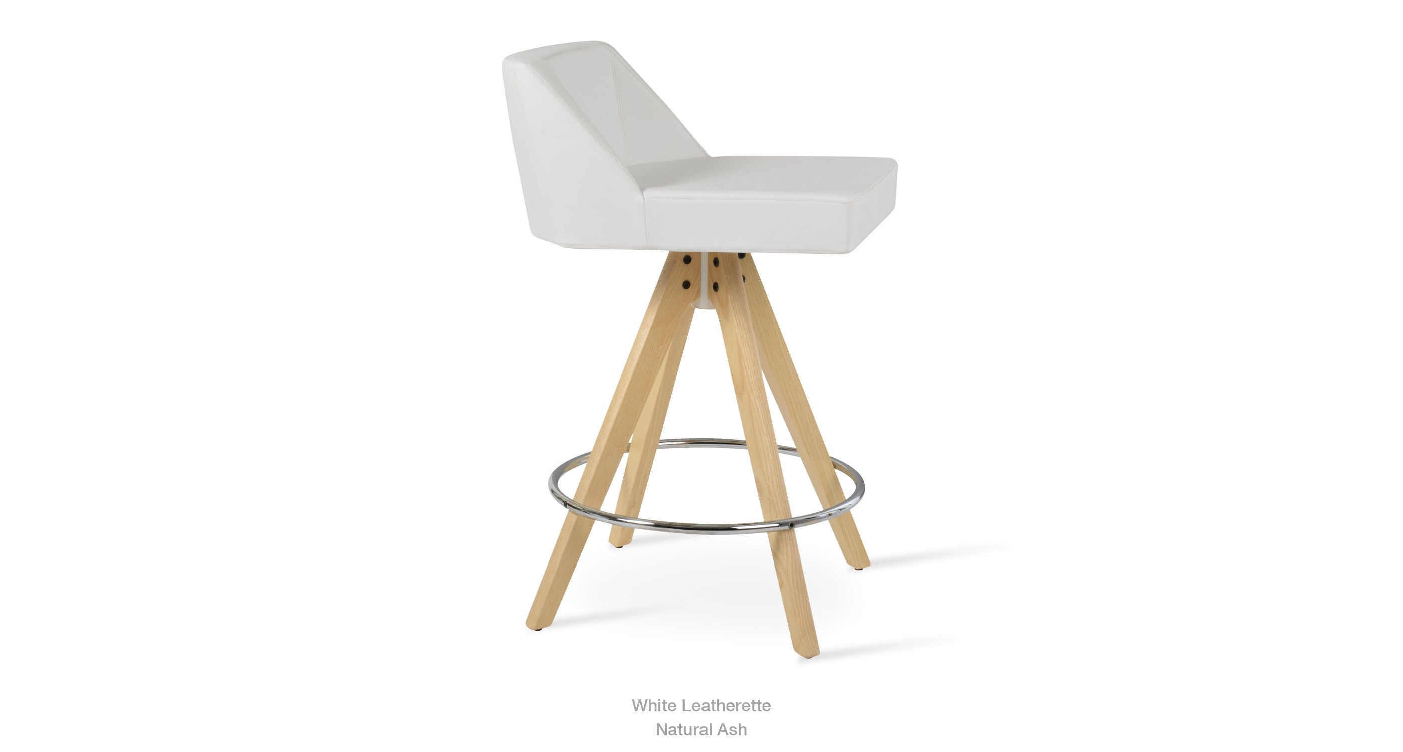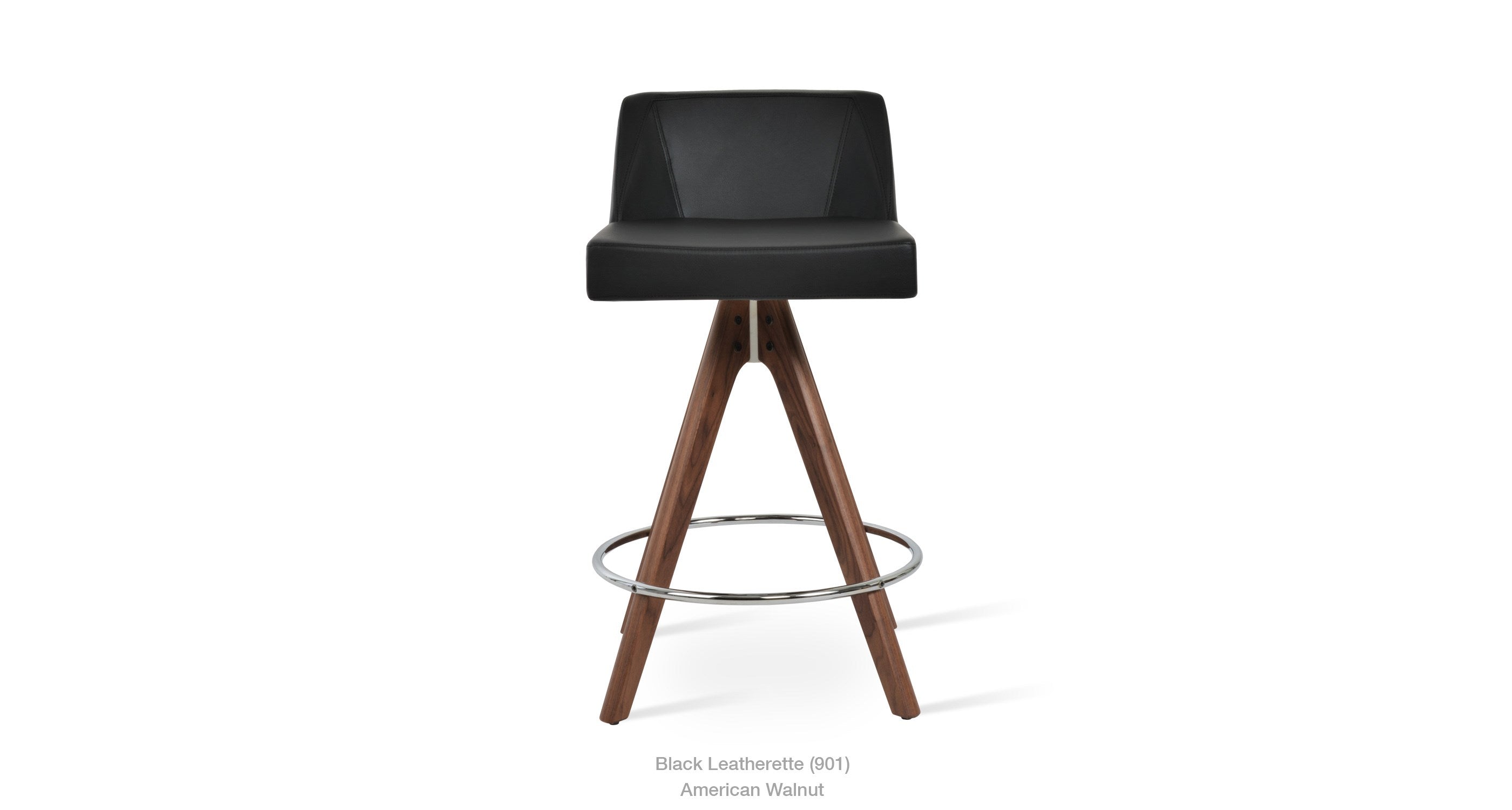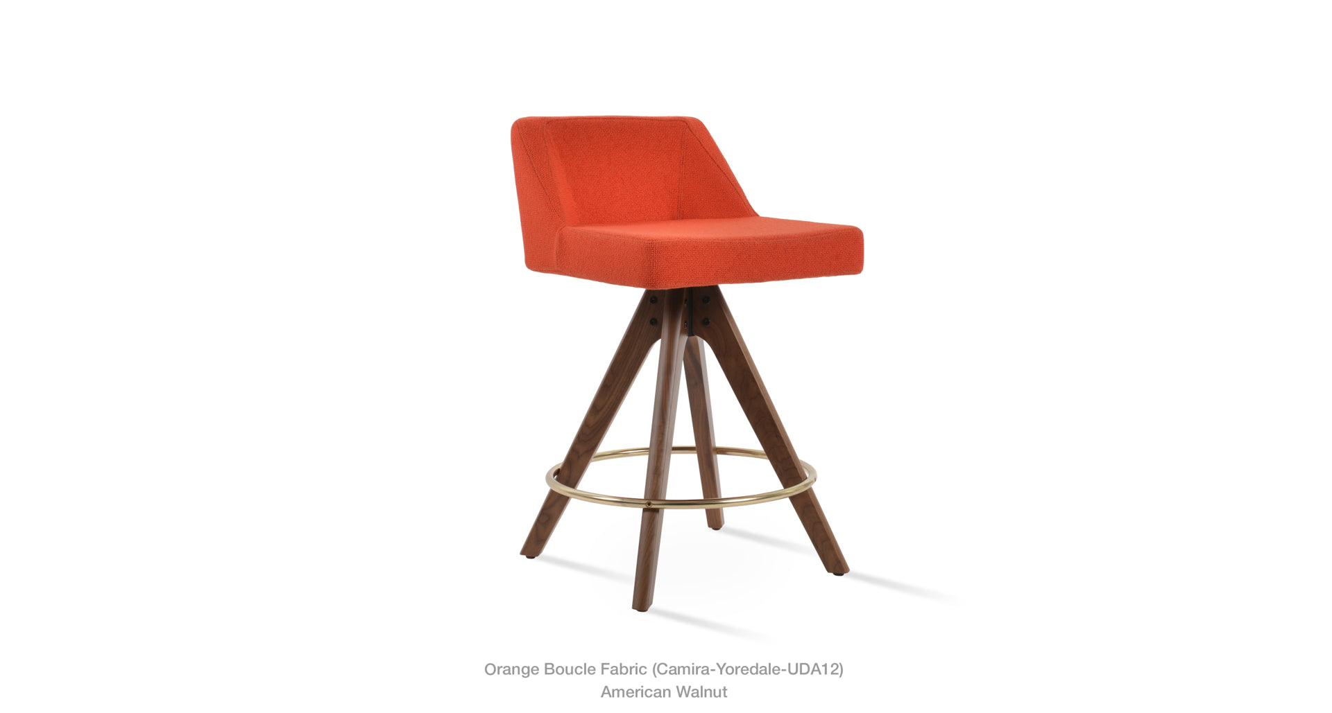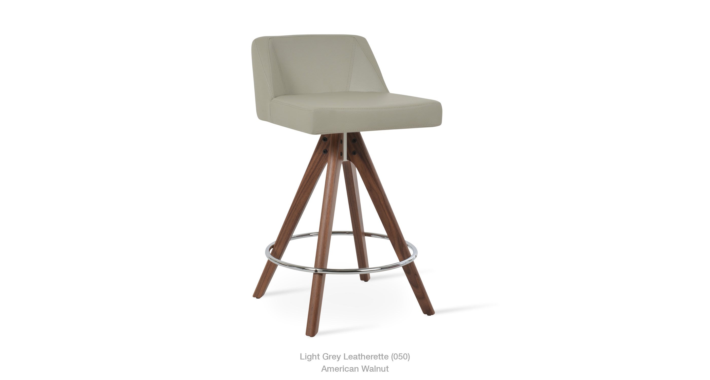 Prisma Pyramid is a contemporary stool with a comfortable upholstered seat on backrest on swivel wood legs available in walnut and natural finish. The seat has a steel structure with “S” shape springs for extra flexibility and strength. This steel frame molded by injecting polyurethane foam. The stool is suitable for both residential and commercial use.