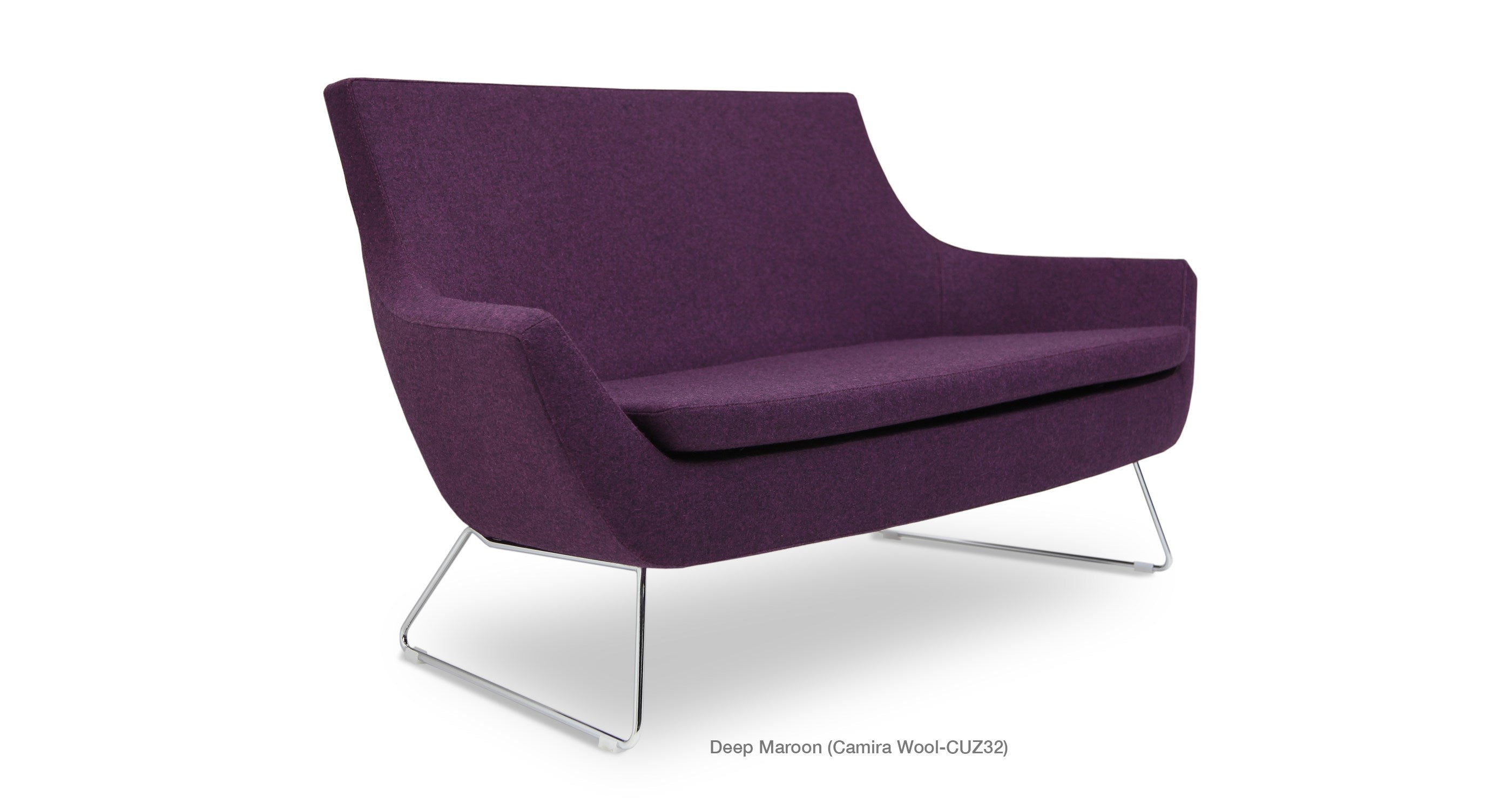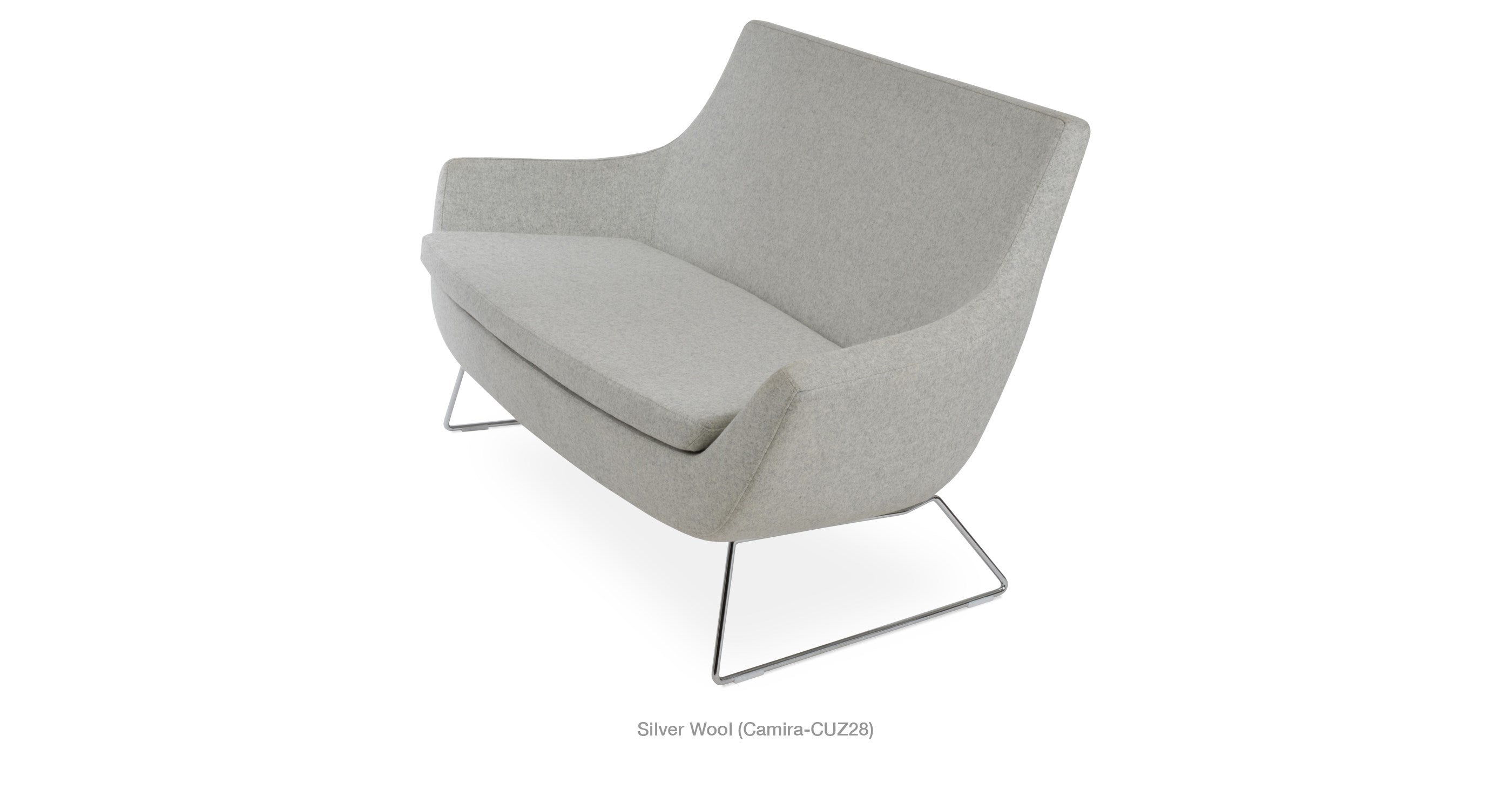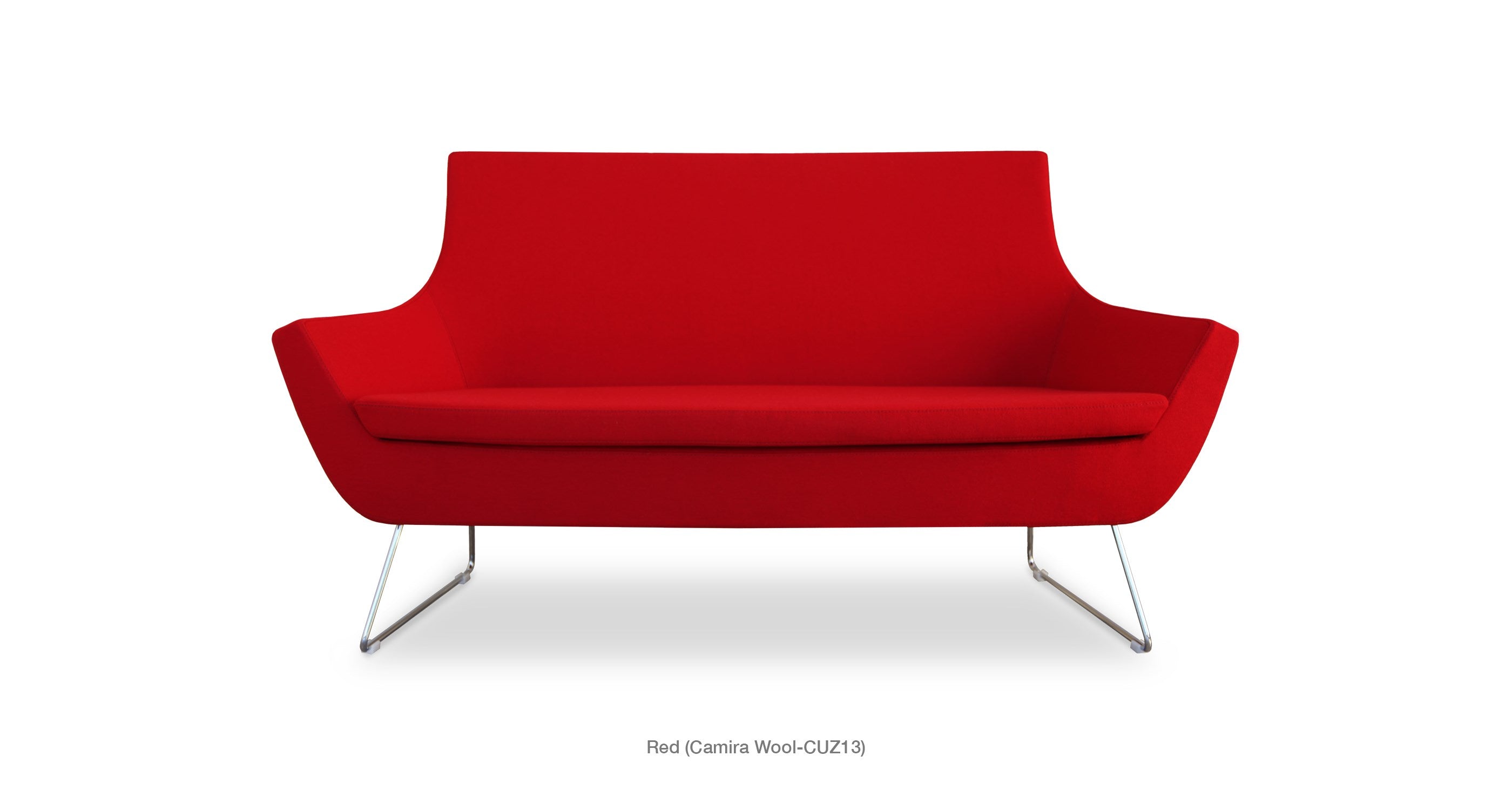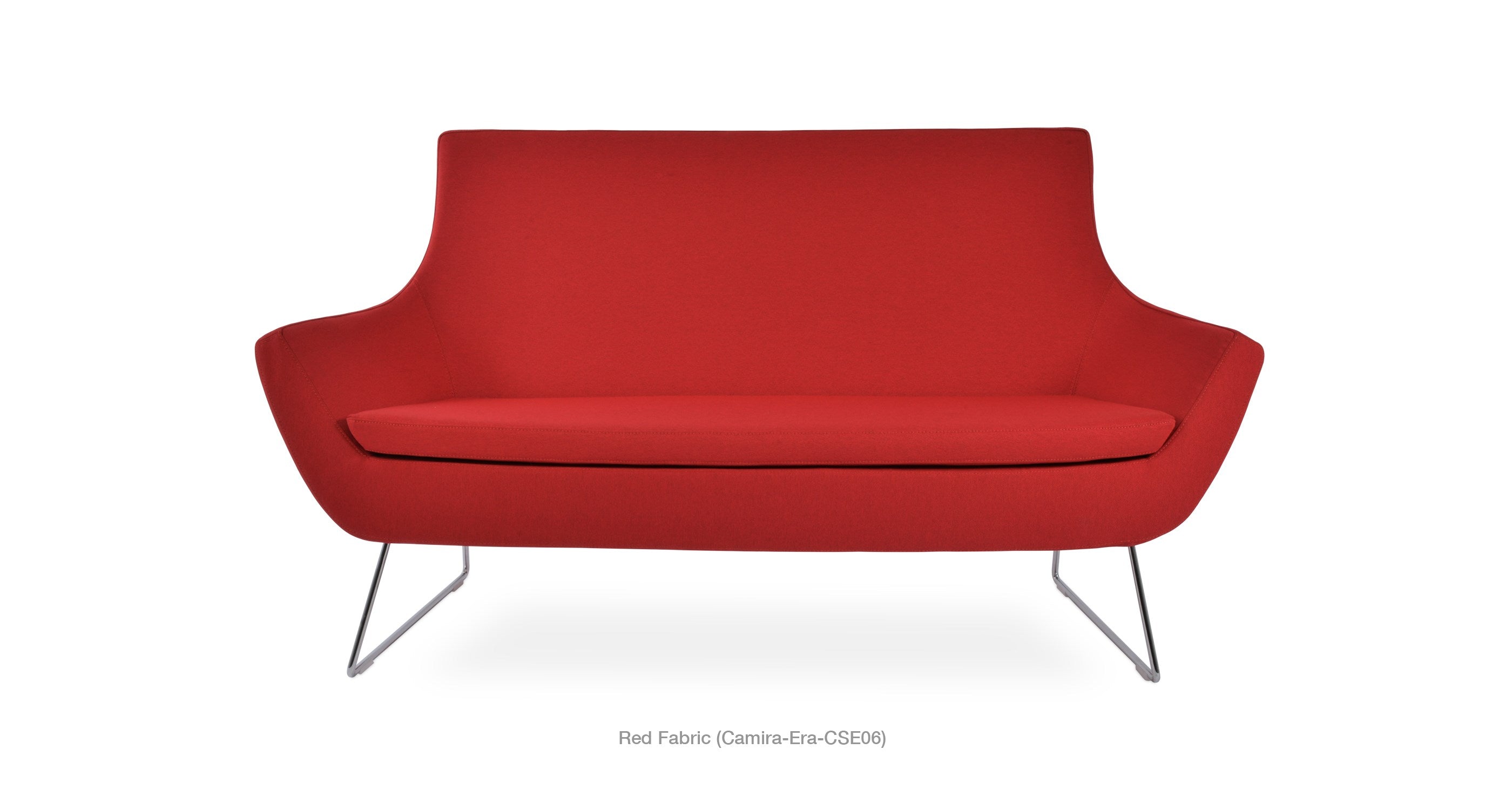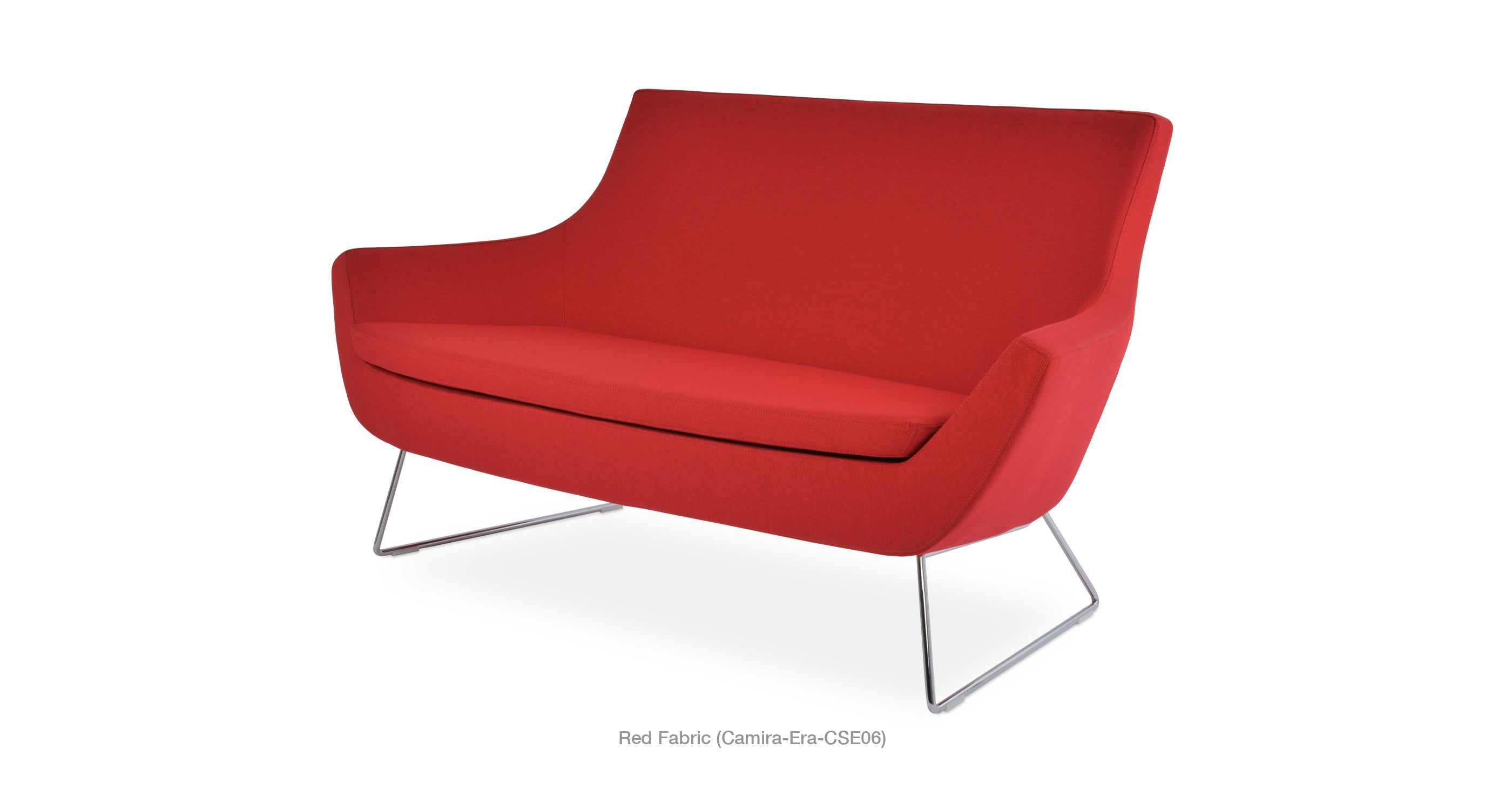 Rebecca is a contemporary sofa with a sled chrome steel wire base. Each leg is tipped with a plastic glide embedded into the metal wire. The padded seat cushion enhances the comfort of the chair. The seat has a steel structure with "S" shape springs for extra flexibility and strength. This steel frame is molded by injecting polyurethane foam. The chair is suitable for both residential and commercial use.