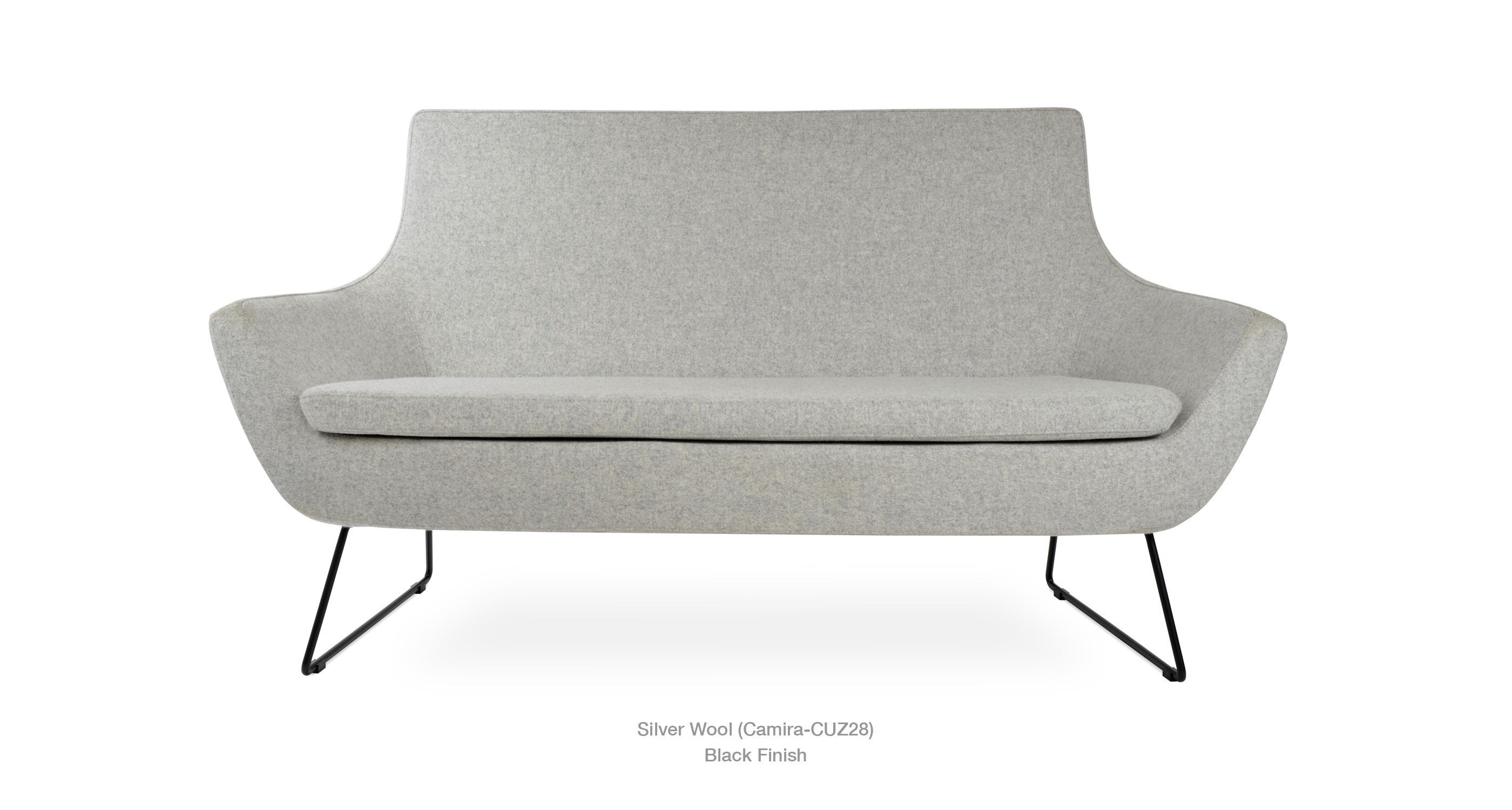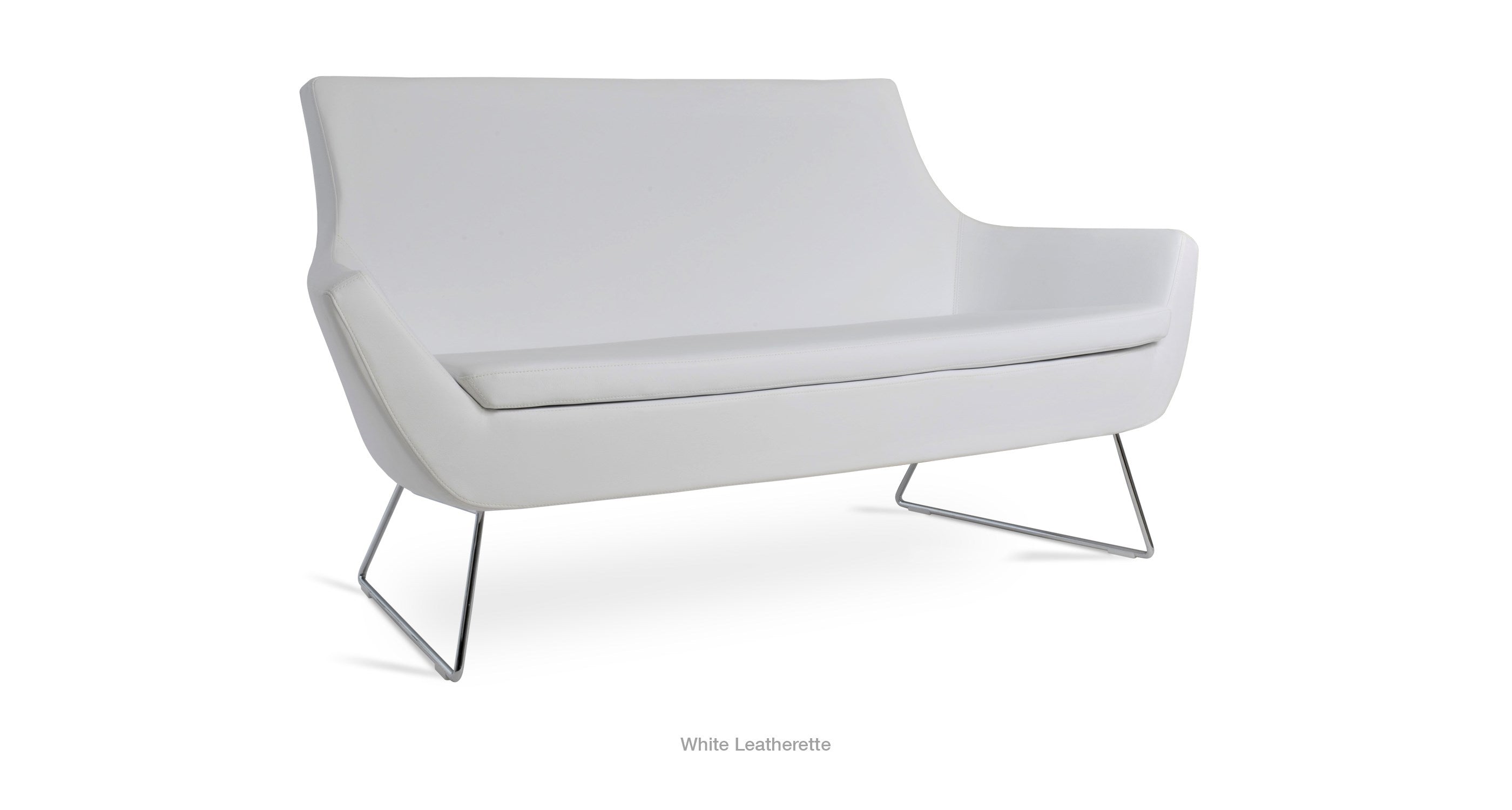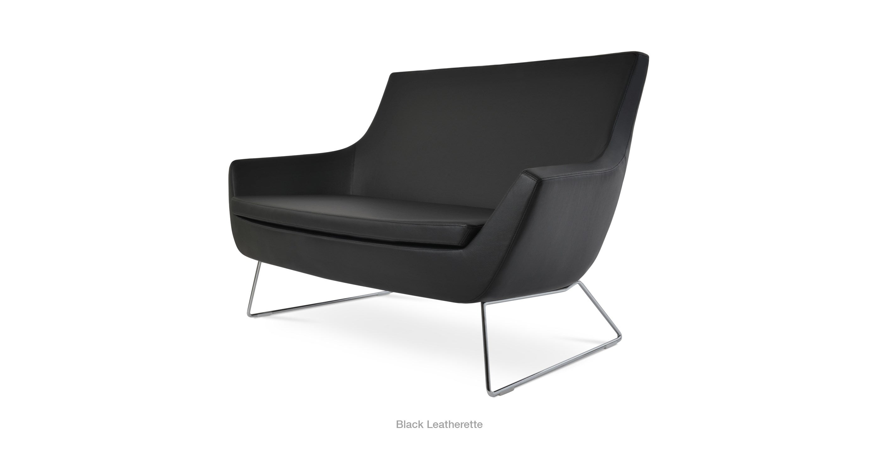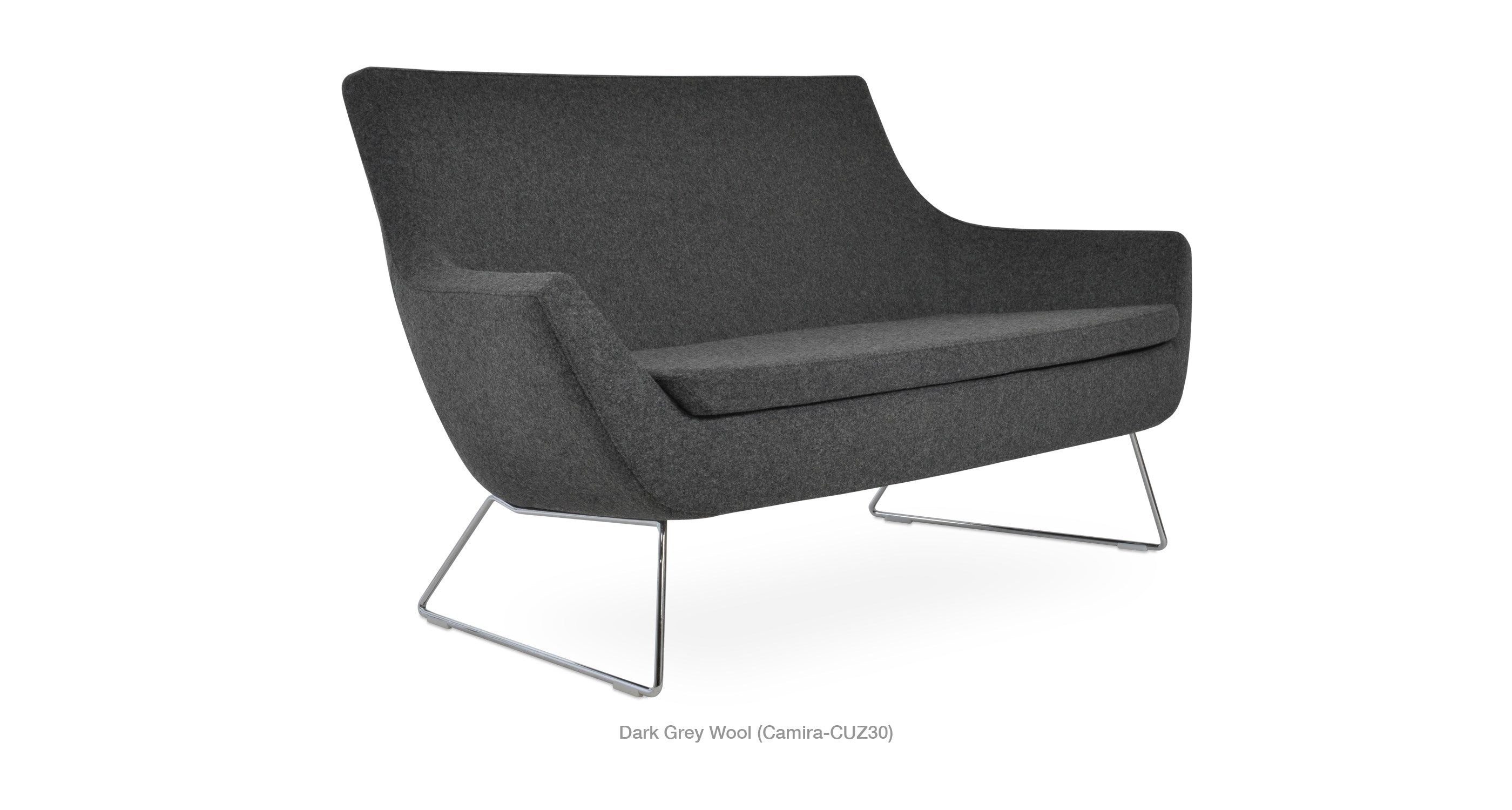 Rebecca is a contemporary sofa with a sled chrome steel wire base. Each leg is tipped with a plastic glide embedded into the metal wire. The padded seat cushion enhances the comfort of the chair. The seat has a steel structure with "S" shape springs for extra flexibility and strength. This steel frame is molded by injecting polyurethane foam. The chair is suitable for both residential and commercial use.