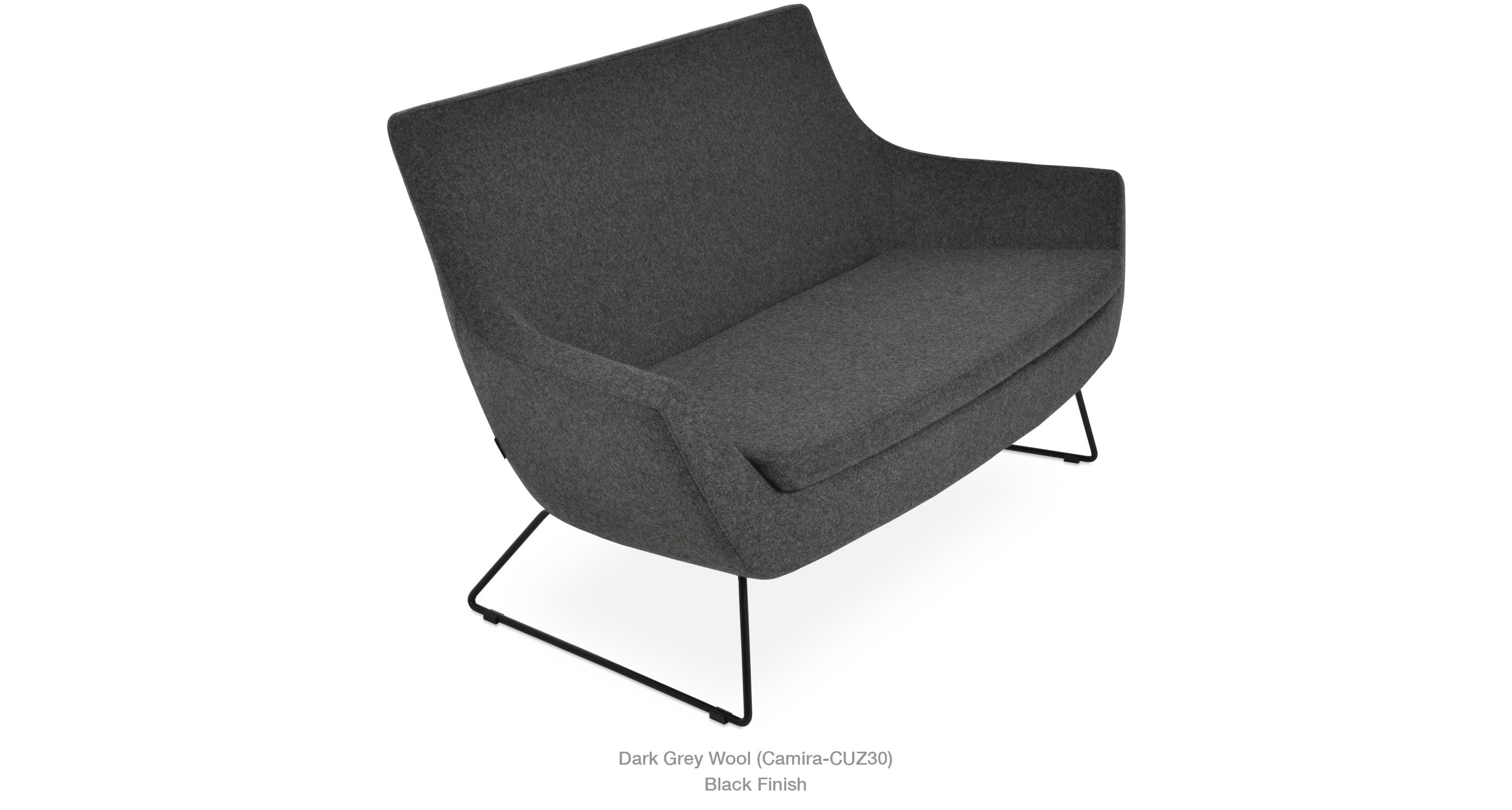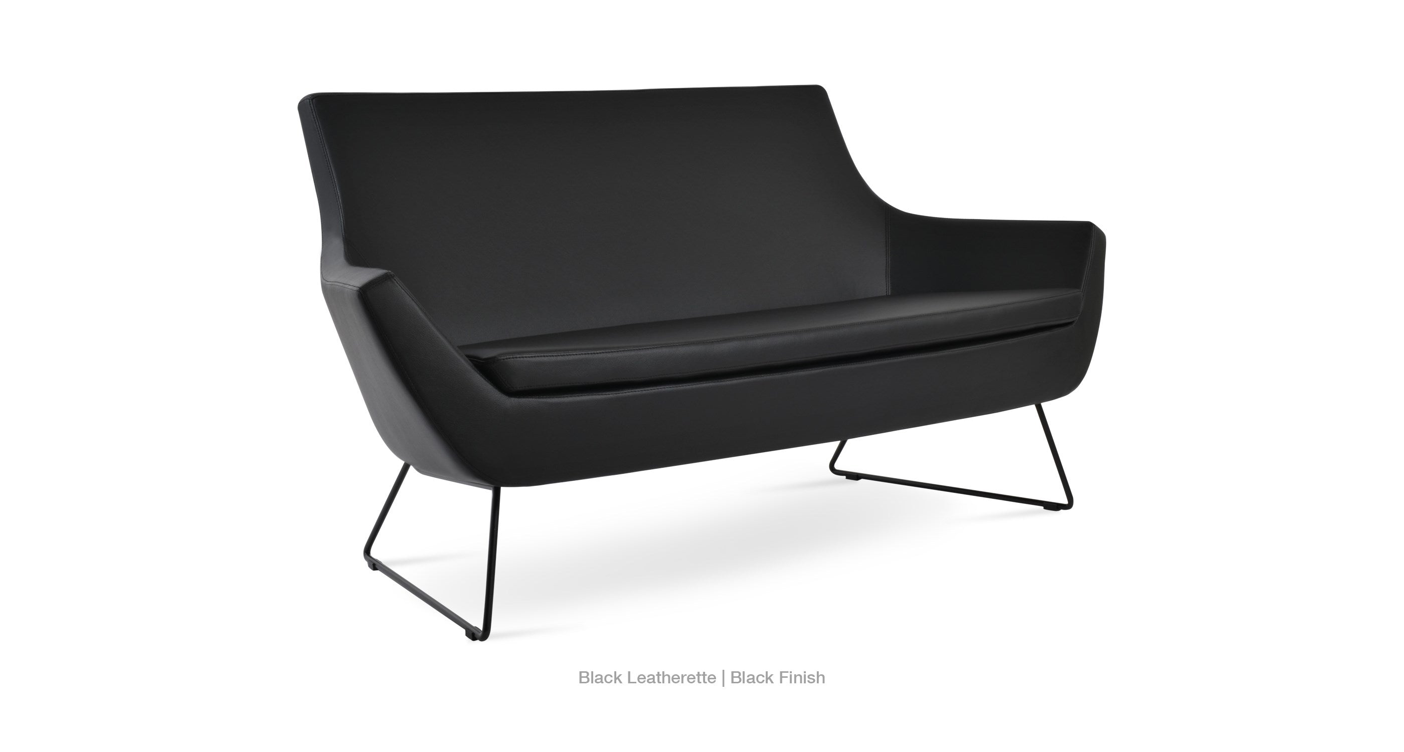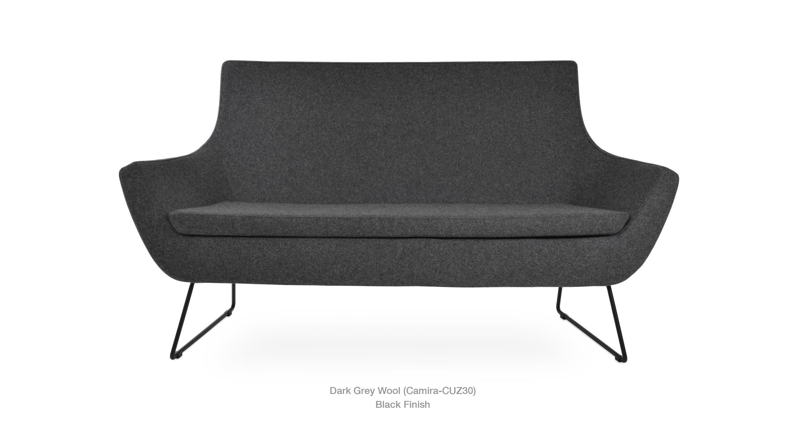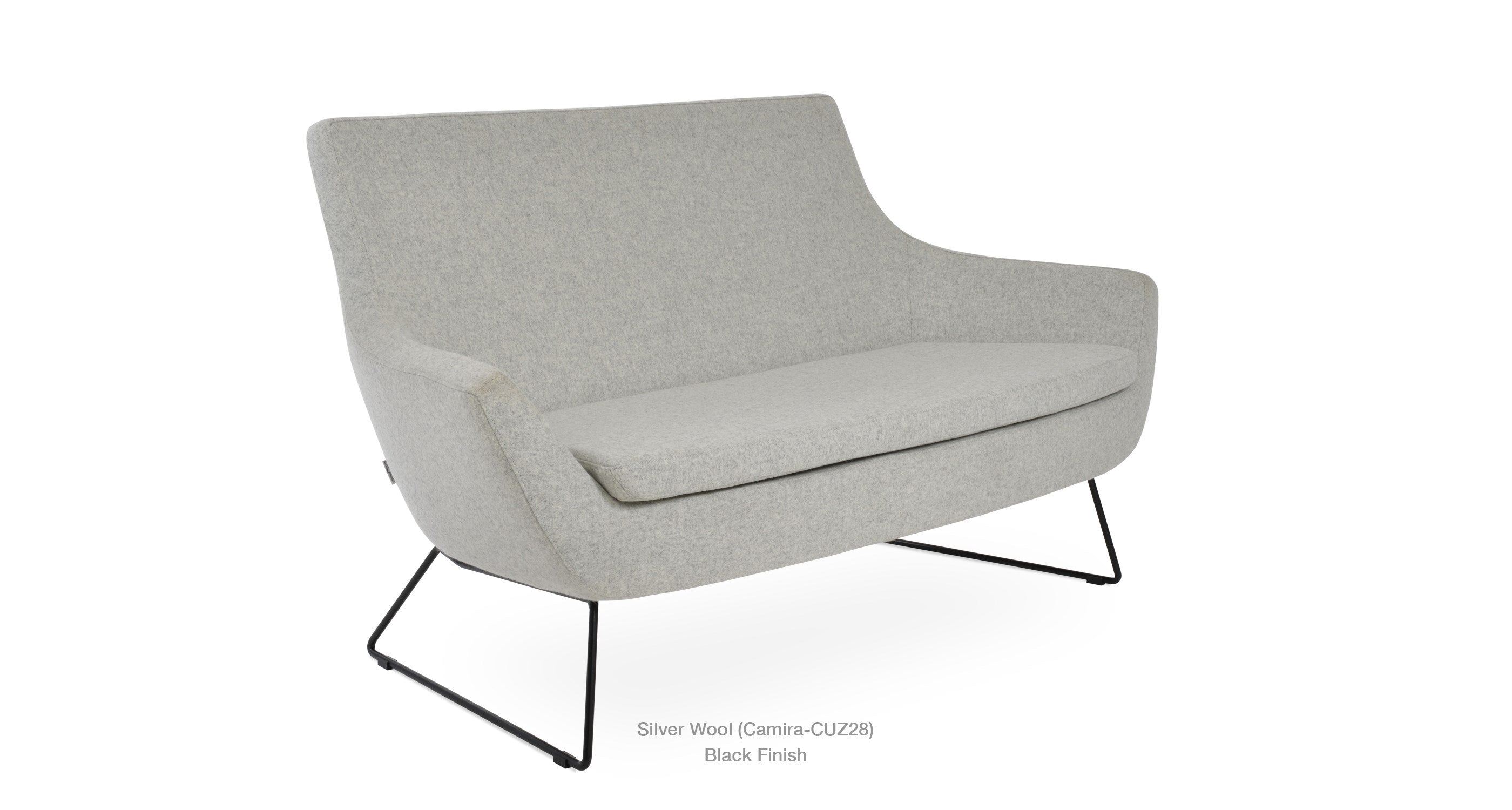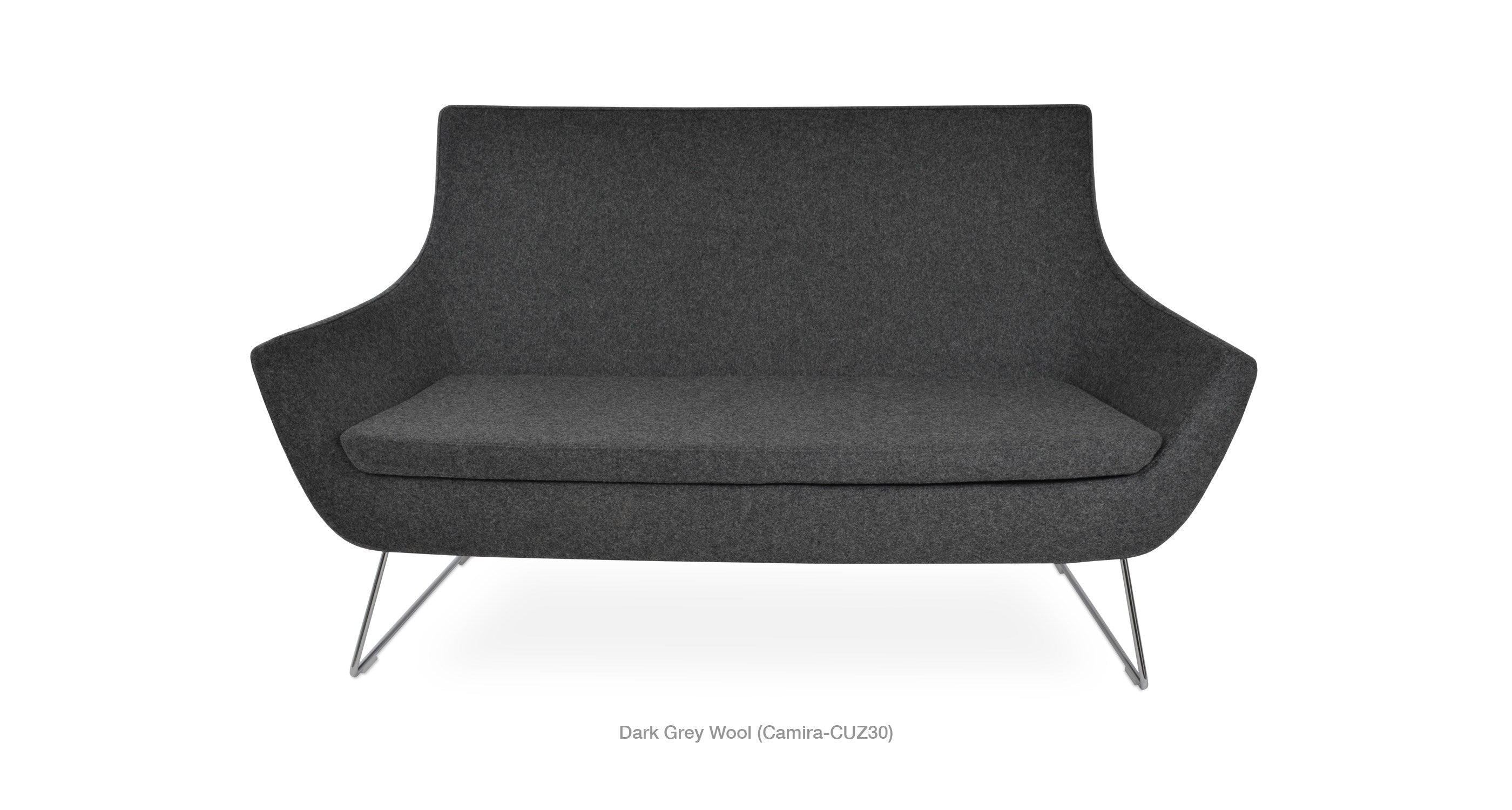 Rebecca is a contemporary sofa with a sled chrome steel wire base. Each leg is tipped with a plastic glide embedded into the metal wire. The padded seat cushion enhances the comfort of the chair. The seat has a steel structure with "S" shape springs for extra flexibility and strength. This steel frame is molded by injecting polyurethane foam. The chair is suitable for both residential and commercial use.