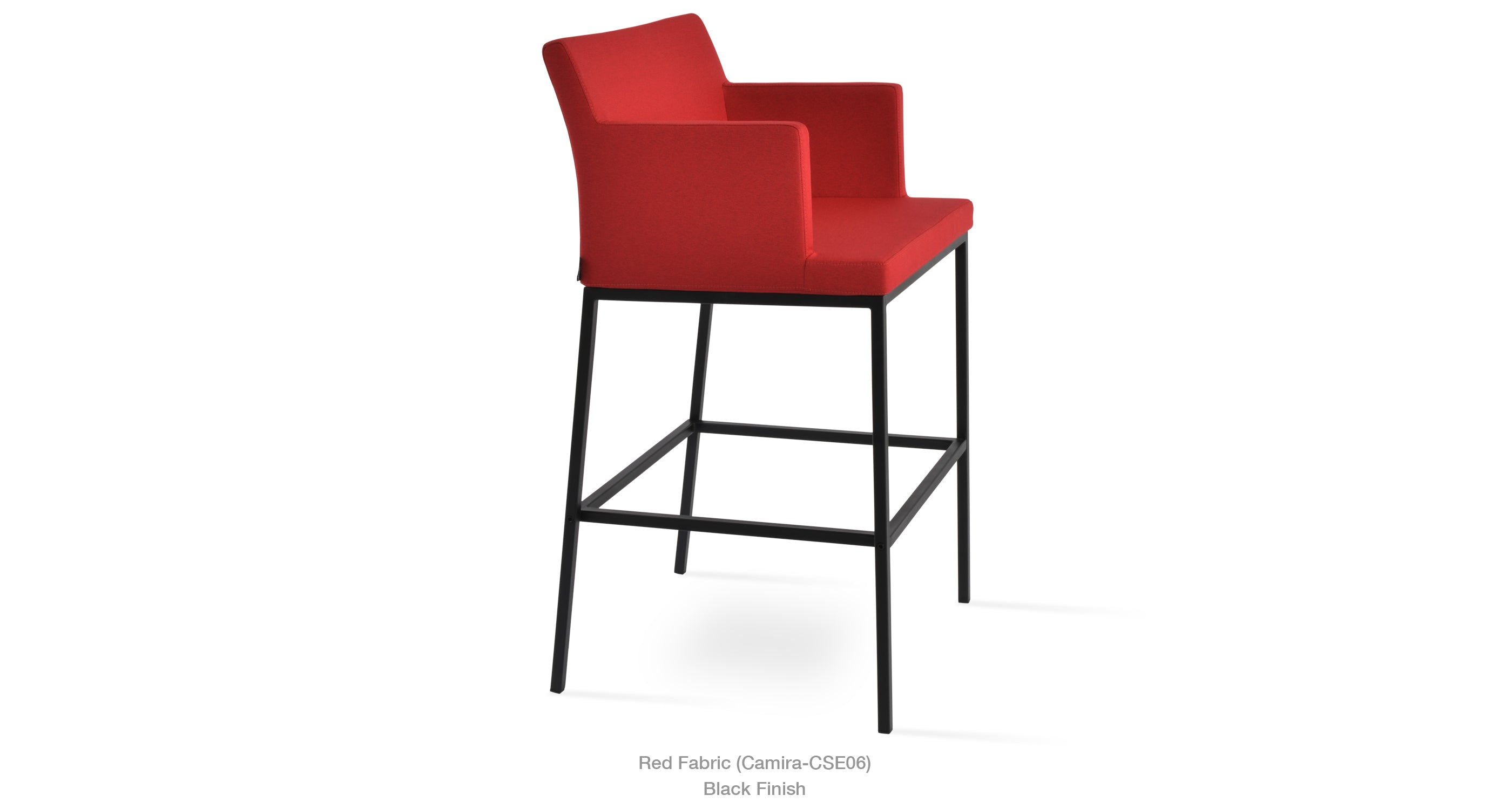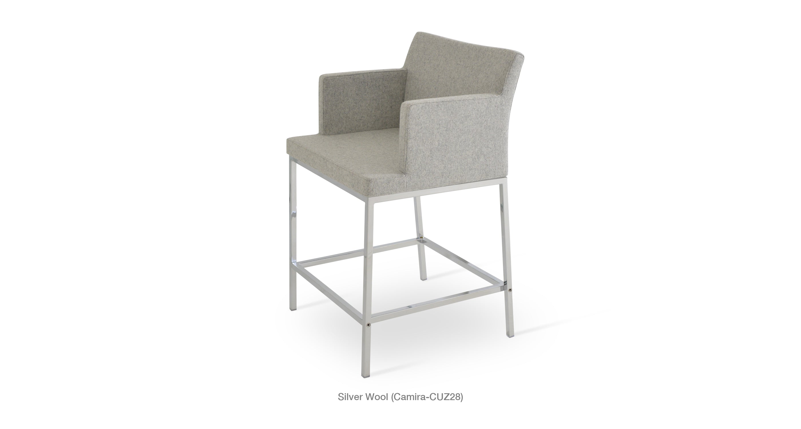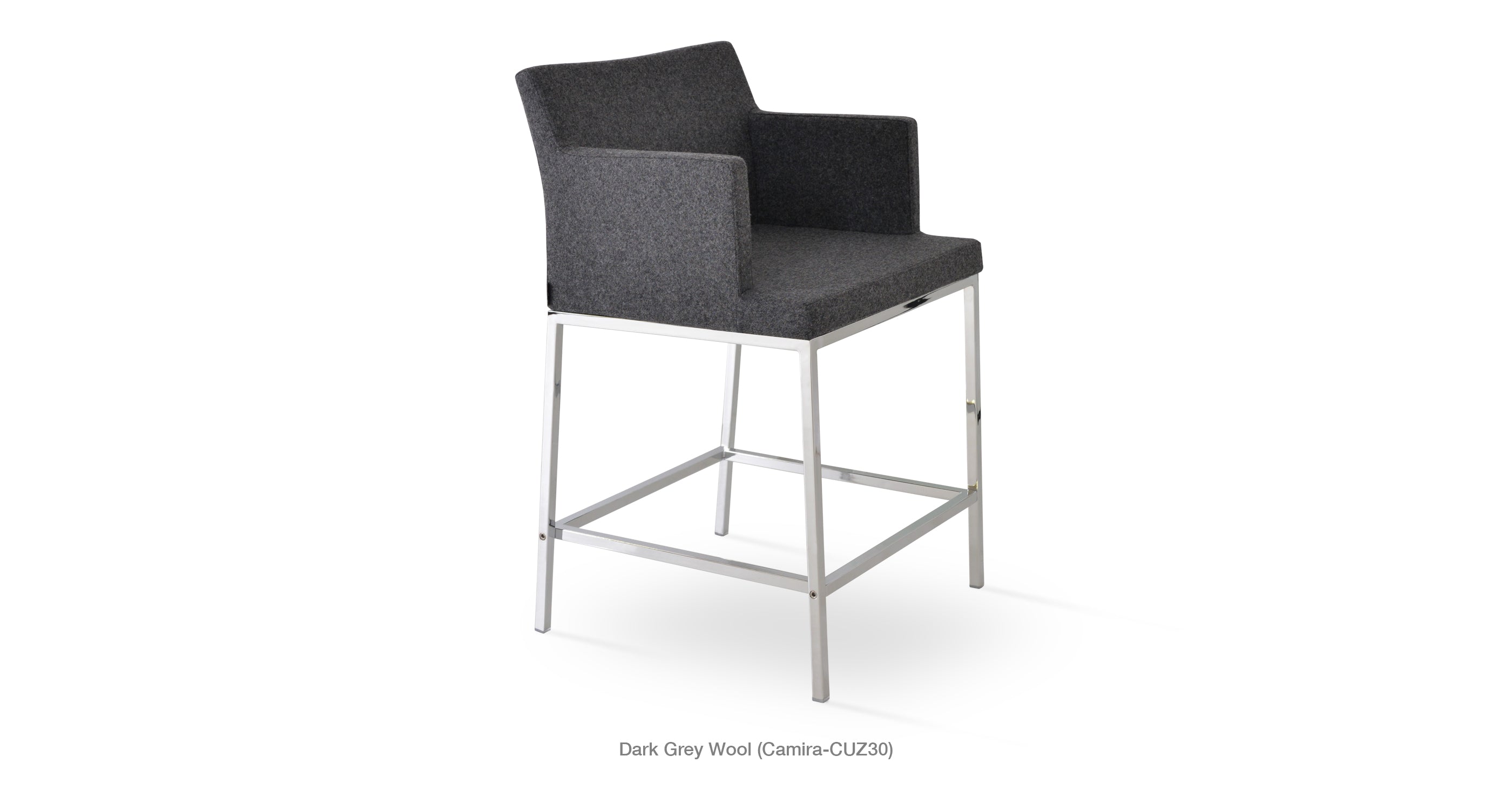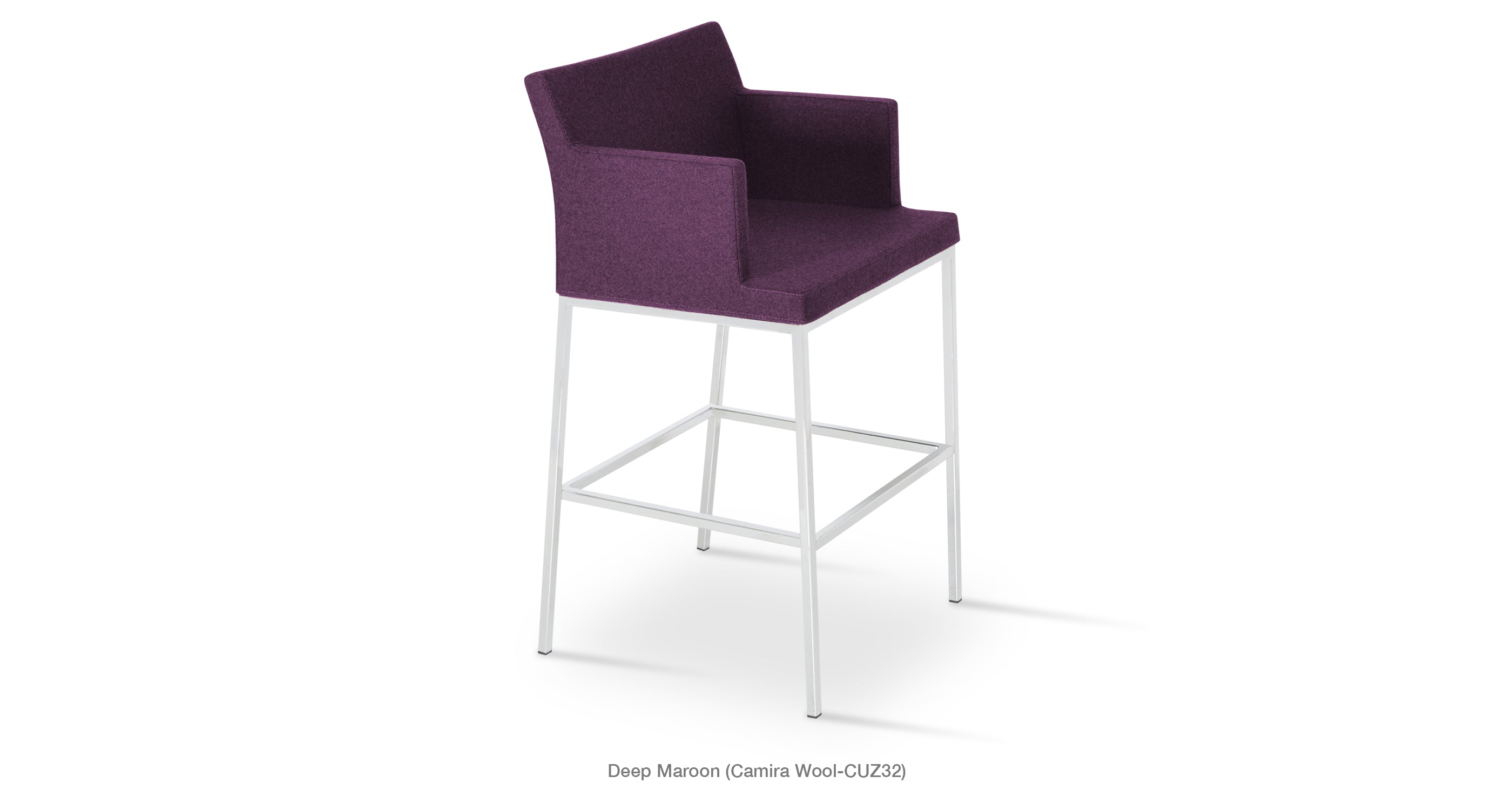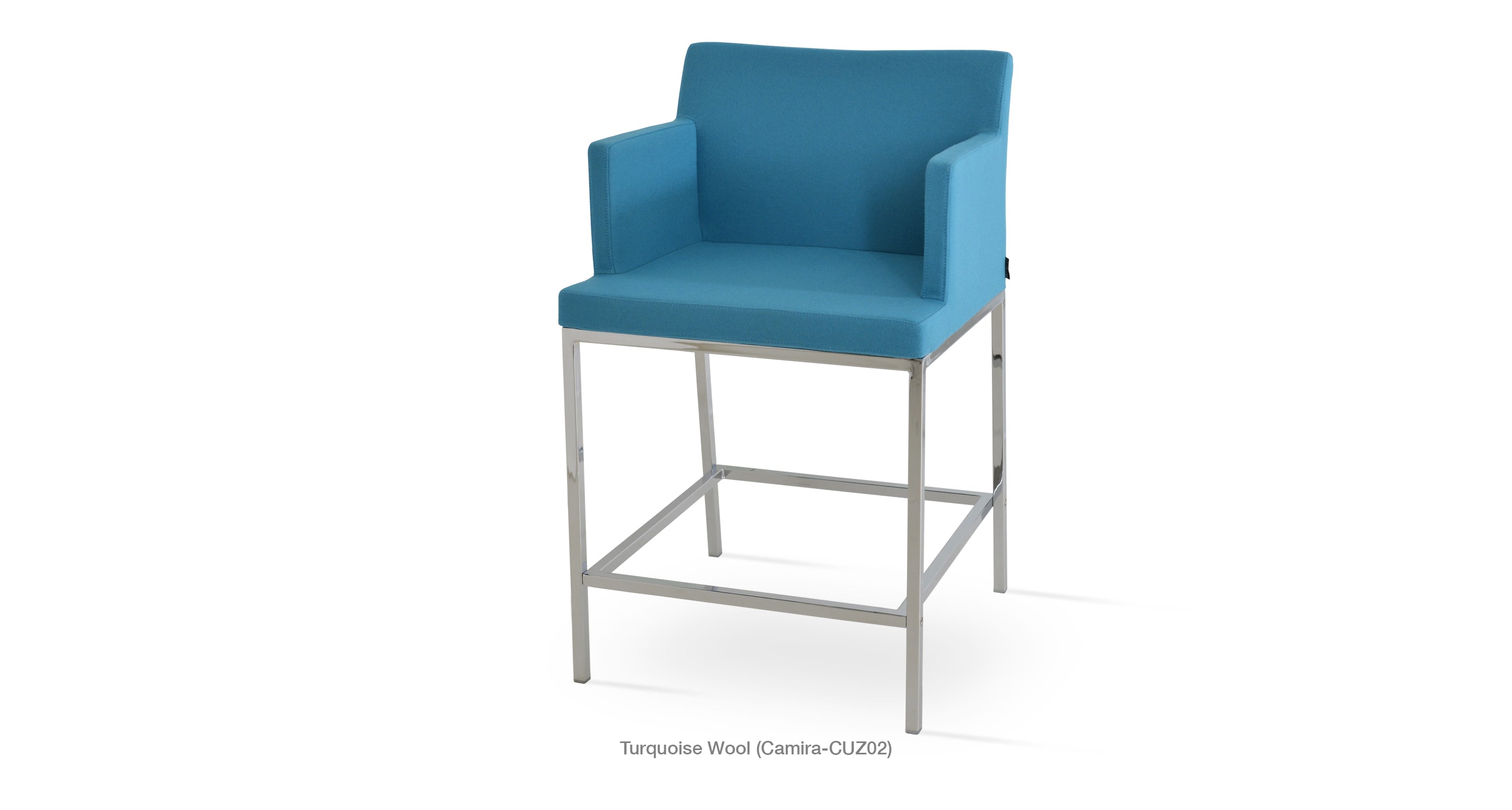 Soho Metal is a contemporary counter and bar stool with a comfortable upholstered seat and backrest on chromed steel legs which are plastic tipped. The seat has a steel structure with “S” shape springs for extra flexibility and strength. This steel frame is molded by an injecting polyurethane foam. Soho seat is upholstered with a removable velcro enclosed leather, PPM or wool fabric slip cover. The stools are suitable for both residential and commercial use.