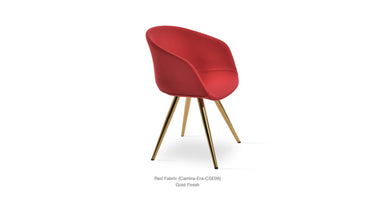 Tribeca Star is a unique dining chair with a comfortable upholstered seat and backrest on a black coated steel base. Each leg is tipped with a plastic glide screwed into the foot. The seat has a steel structure with “S” shape springs for extra flexibility and strength. This steel frame is molded by an injecting polyurethane foam. The Star-Ring Base is available in black powder with gold brass and walnut veneer steel with stainless steel polished ring. Tribeca Star is suitable for both residential and commercial use.