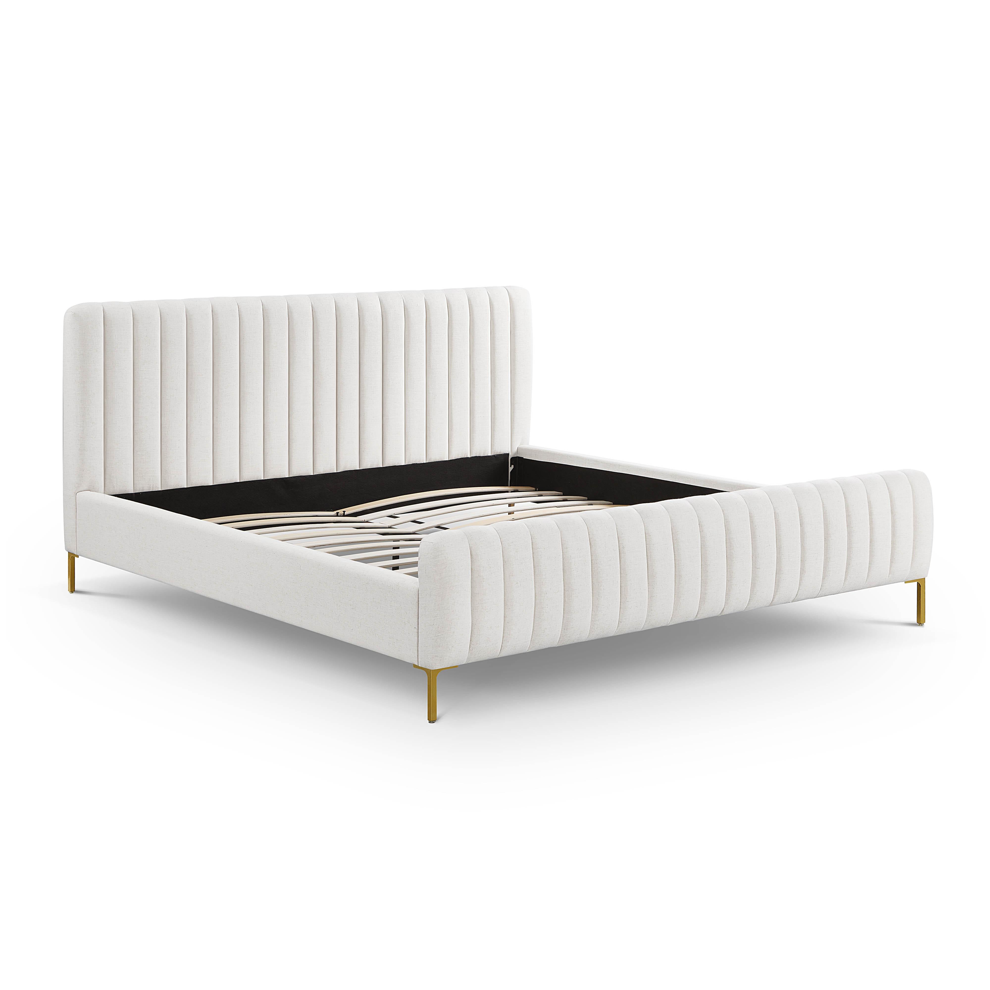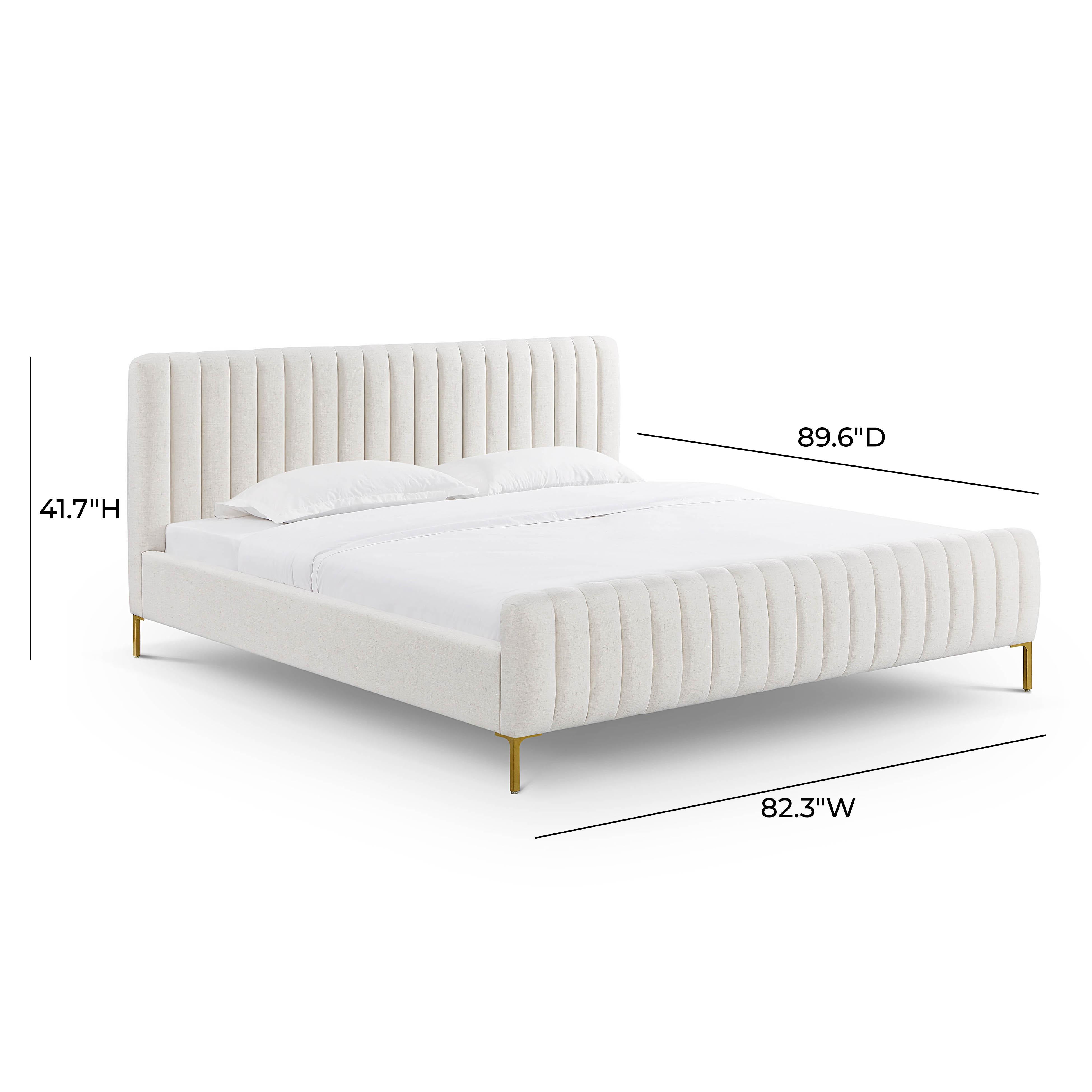 We can't guarantee your dreams will come true, but at least we can help you dream in style. The Angela bed features glam design, channel tufting and gold legs that pop against the sumptuous upholstery. Available in queen or king and multiple color and fabric options.