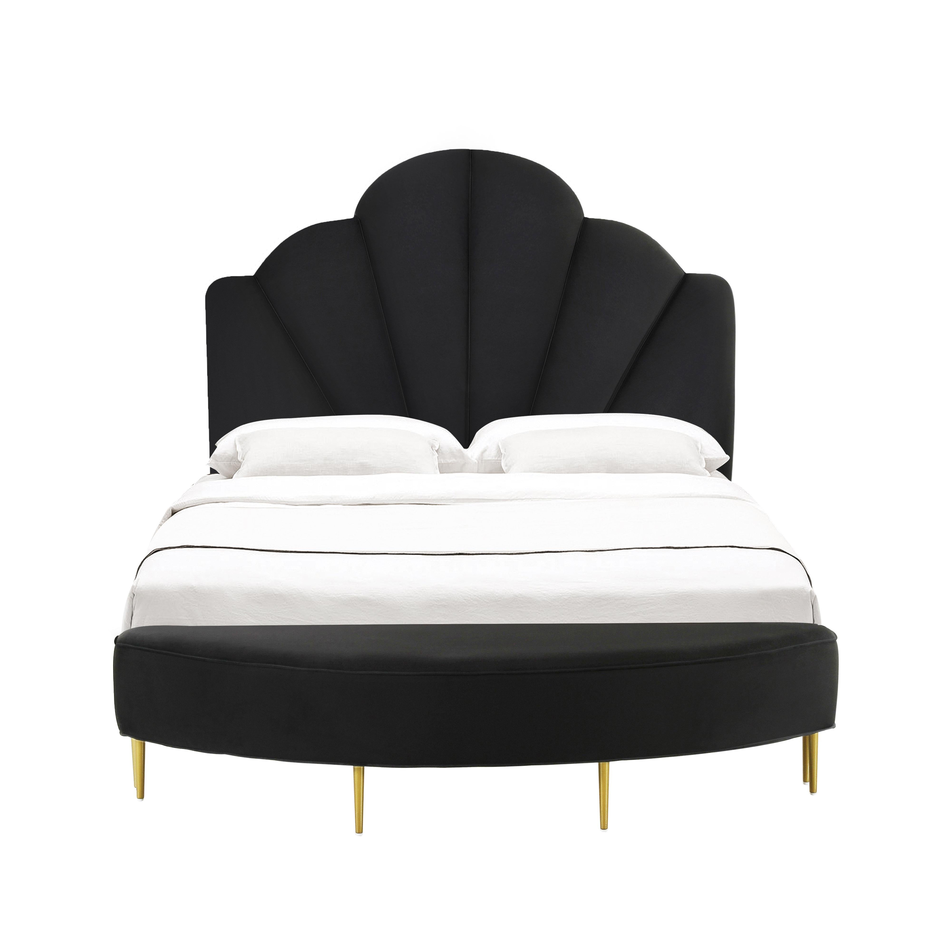 The Bianca bedroom collection brings a sense of luxury with an air of eccentricity. The shell-like silhouette of the bed is dreamy and dramatic. The pine wood frame is upholstered in sumptuous velvet fabric, making it the perfect backdrop for relaxation and breakfast in bed. The matching velvet bench is ideal for extra seating; its soft curve and gold iron legs make it a glamorous accent piece for any space!