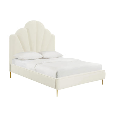 The Bianca bedroom collection brings a sense of luxury with an air of eccentricity. The shell-like silhouette of the bed is dreamy and dramatic. The pine wood frame is upholstered in sumptuous velvet fabric, making it the perfect backdrop for relaxation and breakfast in bed. The matching velvet bench is ideal for extra seating; its soft curve and gold iron legs make it a glamorous accent piece for any space!