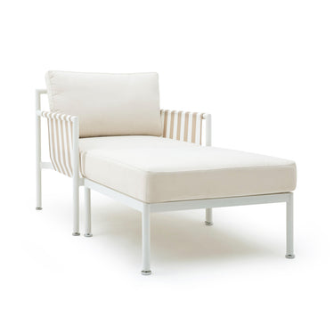We're bringing the Riviera to you with the Dunes Cream Outdoor Collection, designed with an aluminum frame to prevent rust and ensure longevity, making it a durable addition to your backyard or patio. Crafted with outdoor-grade, UV-resistant polyester fabric and a powder-coated aluminum finish, this collection is built to withstand the elements while maintaining its chic appeal. The sectional features reversible cushions for easy stain management and high-density foam for indoor-level comfort, all while bringing the signature style of the French Riviera to your space with its stylish stripes. Plus, adjustable levelers offer the perfect solution for uneven outdoor surfaces, ensuring your sectional remains stable and wobble-free on any terrain.