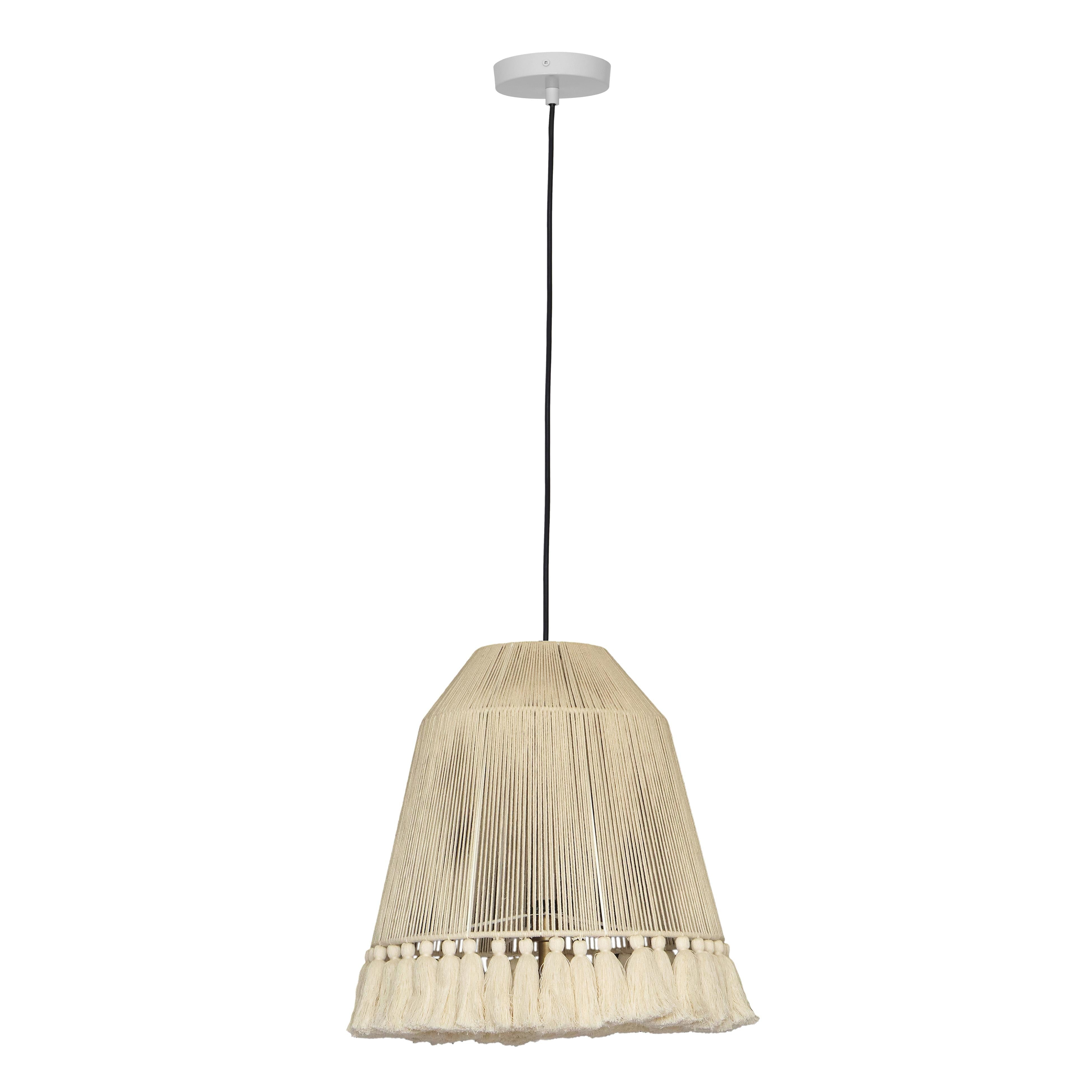 The Helen White Cotton Tasseled Pendant Lamp is a stylish and trendy lighting fixture that is designed to add a touch of bohemian flair to any room of your home. The lamp's white cotton shade is adorned with tassels, creating a visually stunning and playful look. Available in 2 sizes.