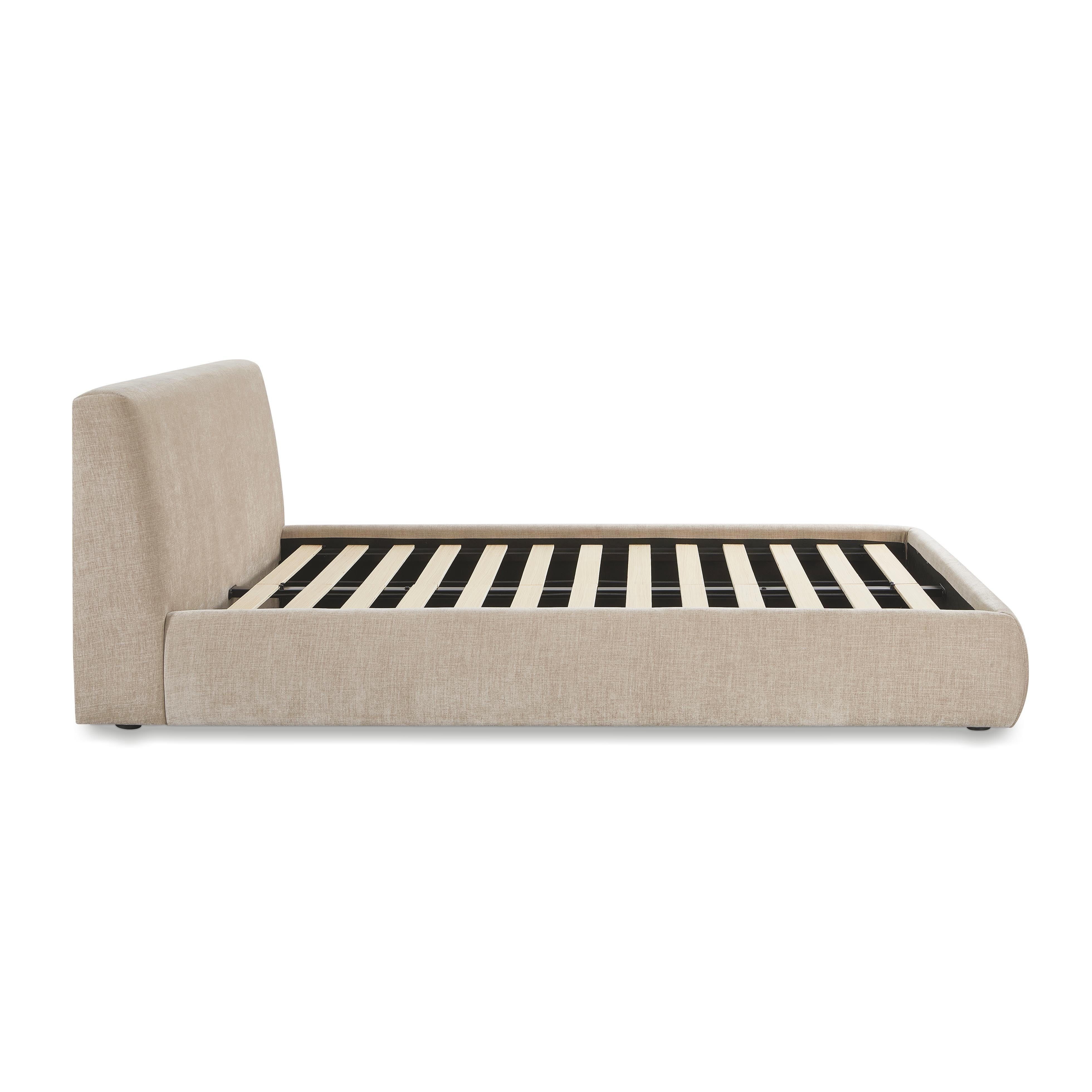 Indulge in the luxurious comfort of the Isla Bed, available in king or queen sizes and designed to elevate your sanctuary. Choose between cream upcycled linen, a cream jacquard, or textured velvet in black or taupe. Its elegantly rounded rails and footboard, along with mitered corners, create a soft, inviting silhouette. The plush headboard invites you to lean back and unwind, making the Isla Bed the perfect haven for restful nights and dreamy mornings.