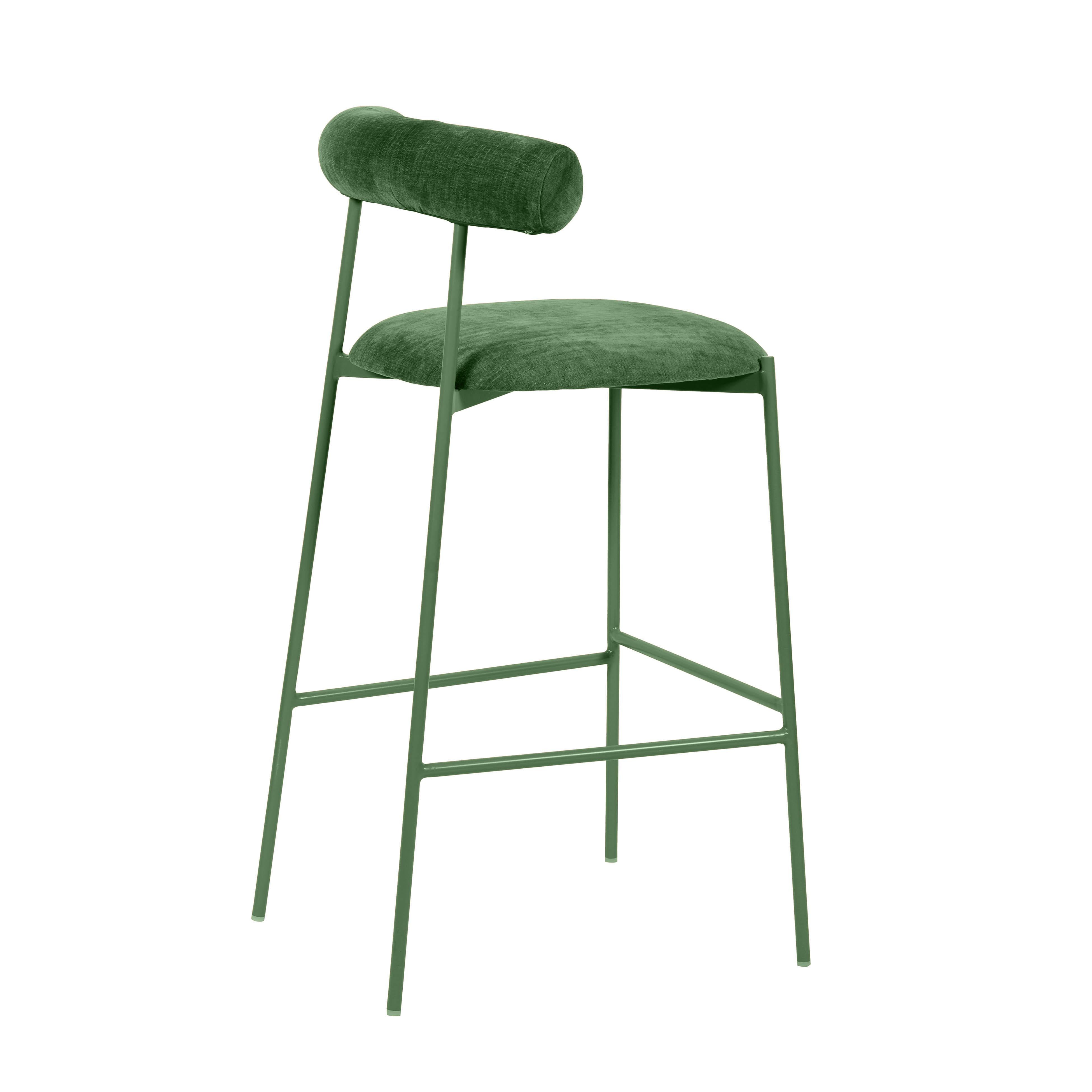 Introducing the Liliana Stool, available in vibrant, punchy colors like mauve, forest green, and taupe. Choose between counter or bar height to suit your space perfectly. With its sleek Memphis-inspired design and a tone-on-tone look, where the legs match the upholstery, this stool effortlessly combines style and comfort for a chic addition to any setting.