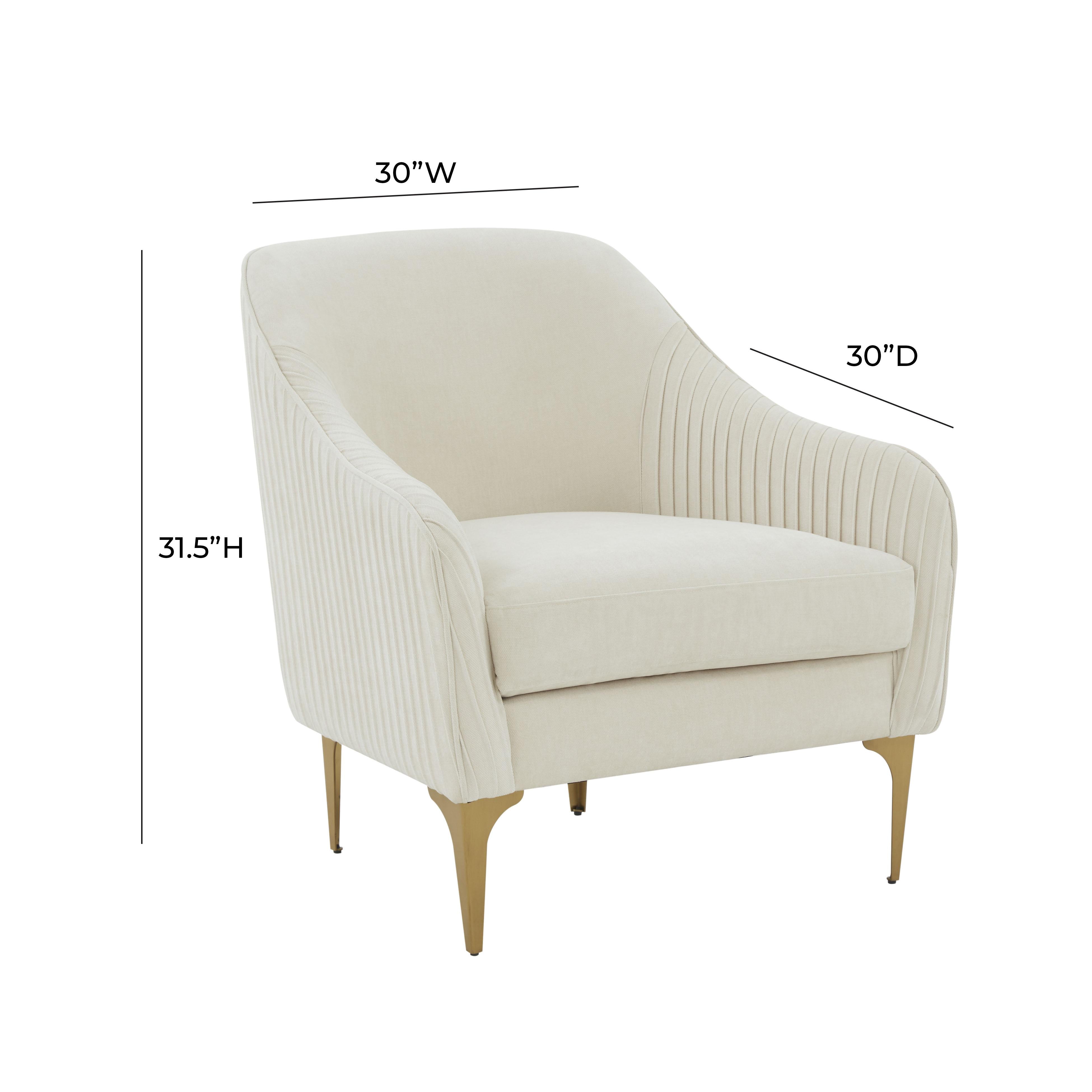 The Serena Accent Chair makes modern design soft and cozy and is sure to become your favorite spot. Available in three colors, this accent chair features a stylish pleated back and is upholstered in a luxurious blue distressed velvet for lots of texture. The clean lines are complemented by tall metal legs finished in brass. Look no further than the Serena Accent Chair for the perfect addition to your home.