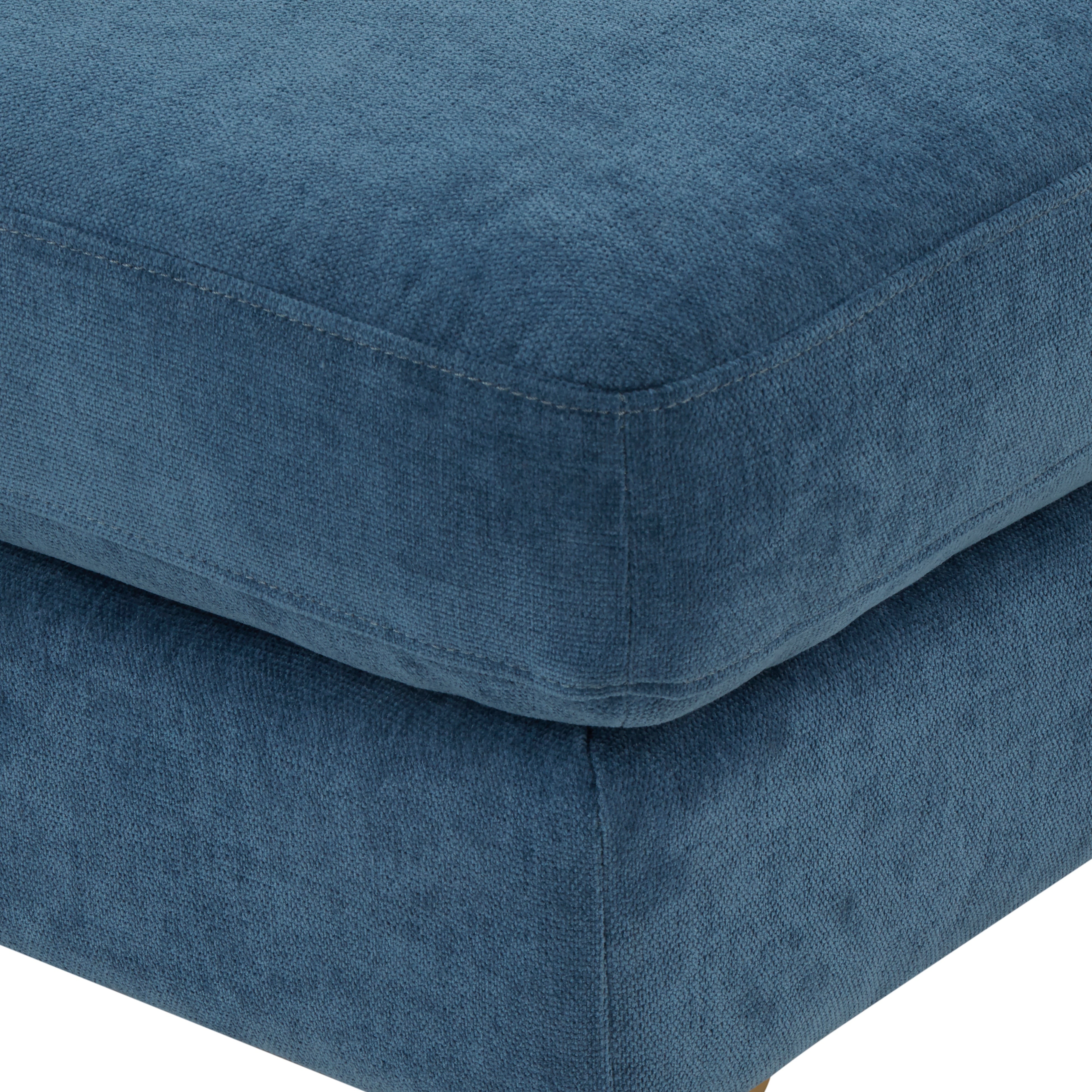 The Serena Collection makes modern design soft and cozy. This ottoman is upholstered in a luxurious blue distressed velvet for lots of texture, and is available in three colors. The clean lines are complemented by tall metal legs finished in brass. Look no further than the Serena Collection for the perfect addition to your home.