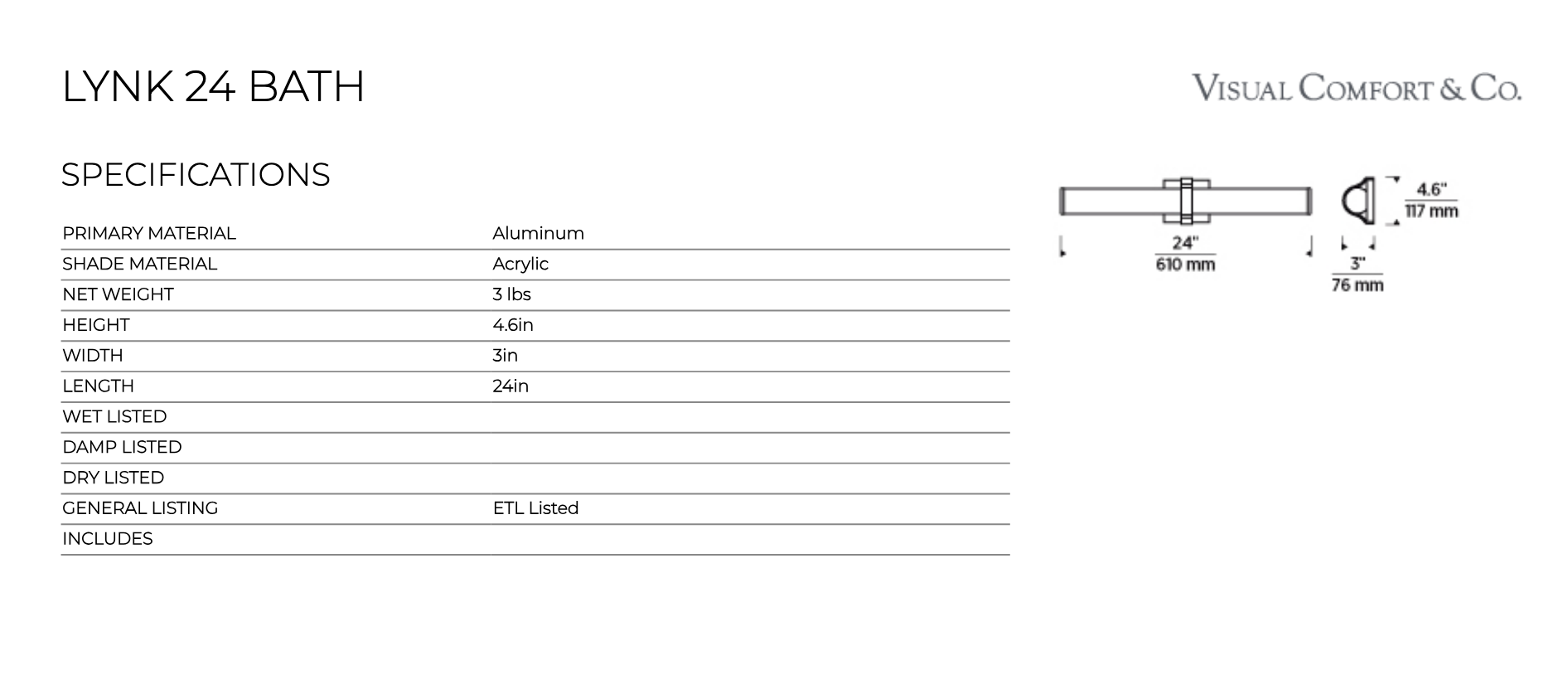 Visual Comfort Lynn 24" Linear Bath Bar | Horizontal/Vertical LED Mount
