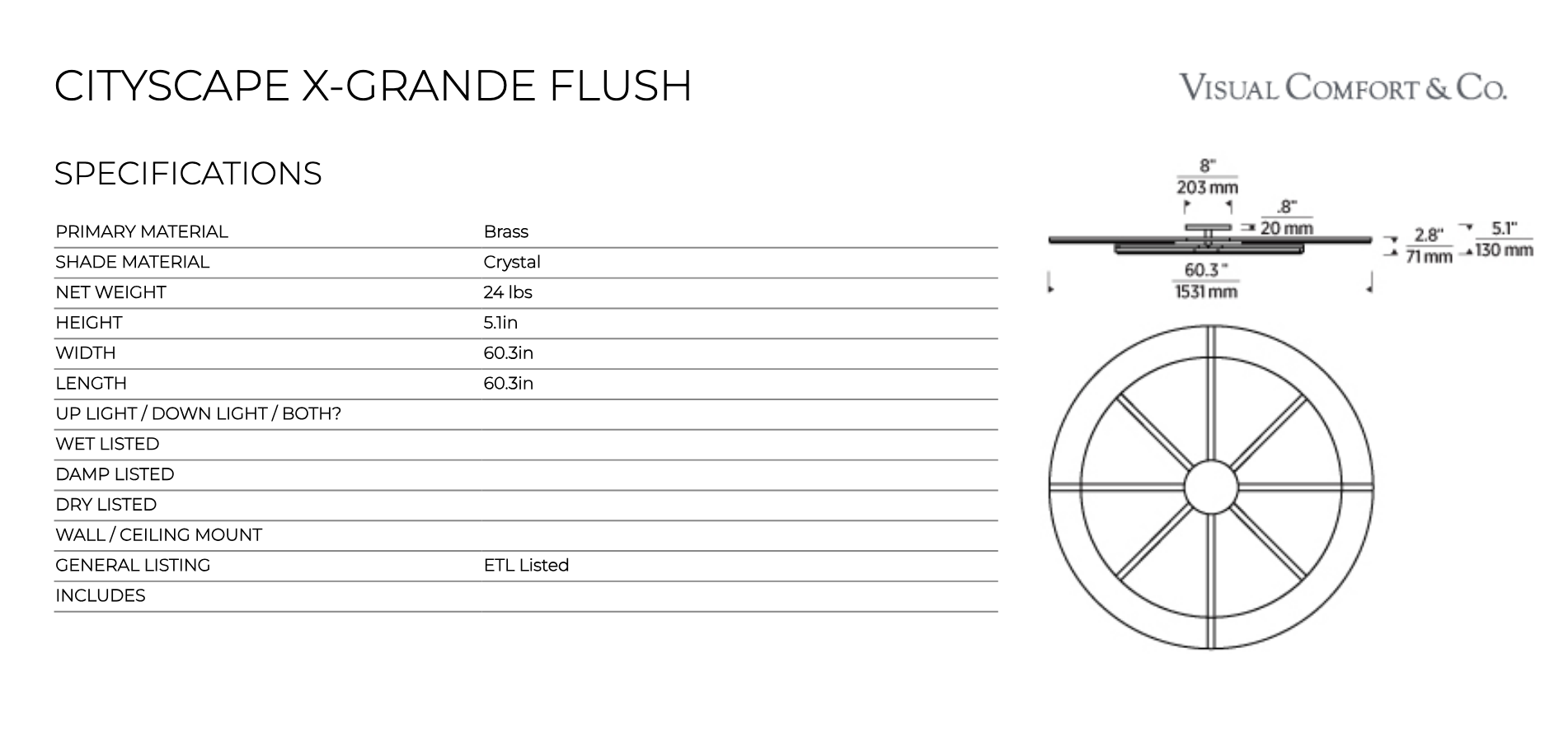 Cityscape X-Grande 60.3" Geometric Brass LED Flush Mount | Visual Comfort - NEW