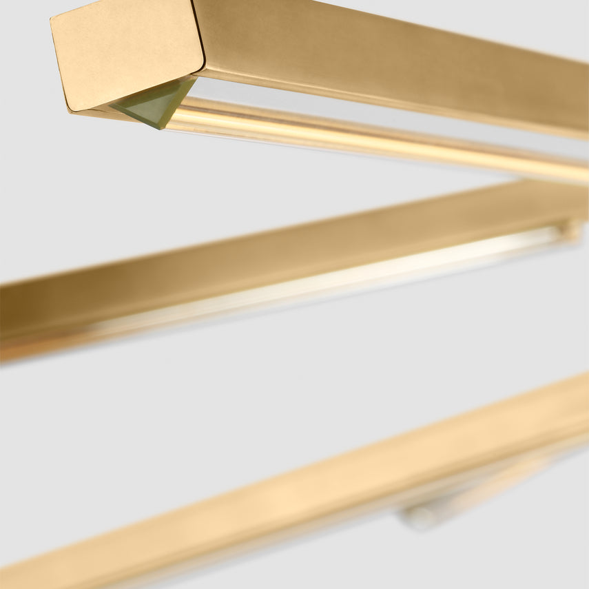 The Cityscape X-Grande Geometric Flush Mount by Sean Lavin is a striking 60.3" wide fixture featuring an expertly crafted brass frame with an intricate geometric design. Integrated 88.7W LED lamping delivers 4352 lumens of warm 2700K (or 3000K) light with 90 CRI, providing a harmonious blend of bold form and sensible function. Ideal for both residential and commercial spaces, this dimmable ceiling mount light creates a dramatic effect in dining rooms, bedrooms, or any area desiring a luxurious and modern aesthetic. Available in Hand Rubbed Antique Brass and Bronze, its natural brass finish will develop a unique patina over time. It is protected by a 1-year warranty, with the LED module covered for 5 years.