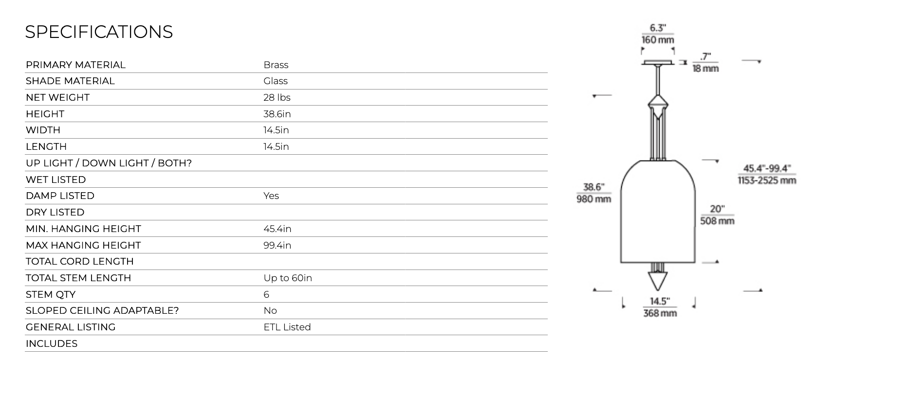 - Fixture Dimensions: 14.5" W x 14.5" L x 38.6" H