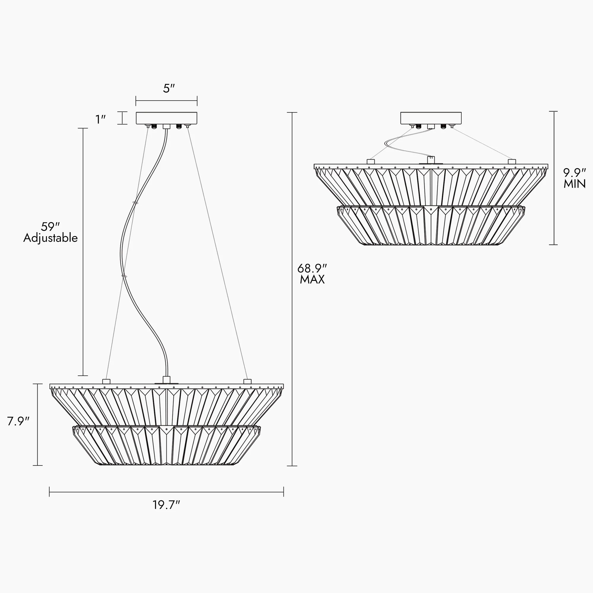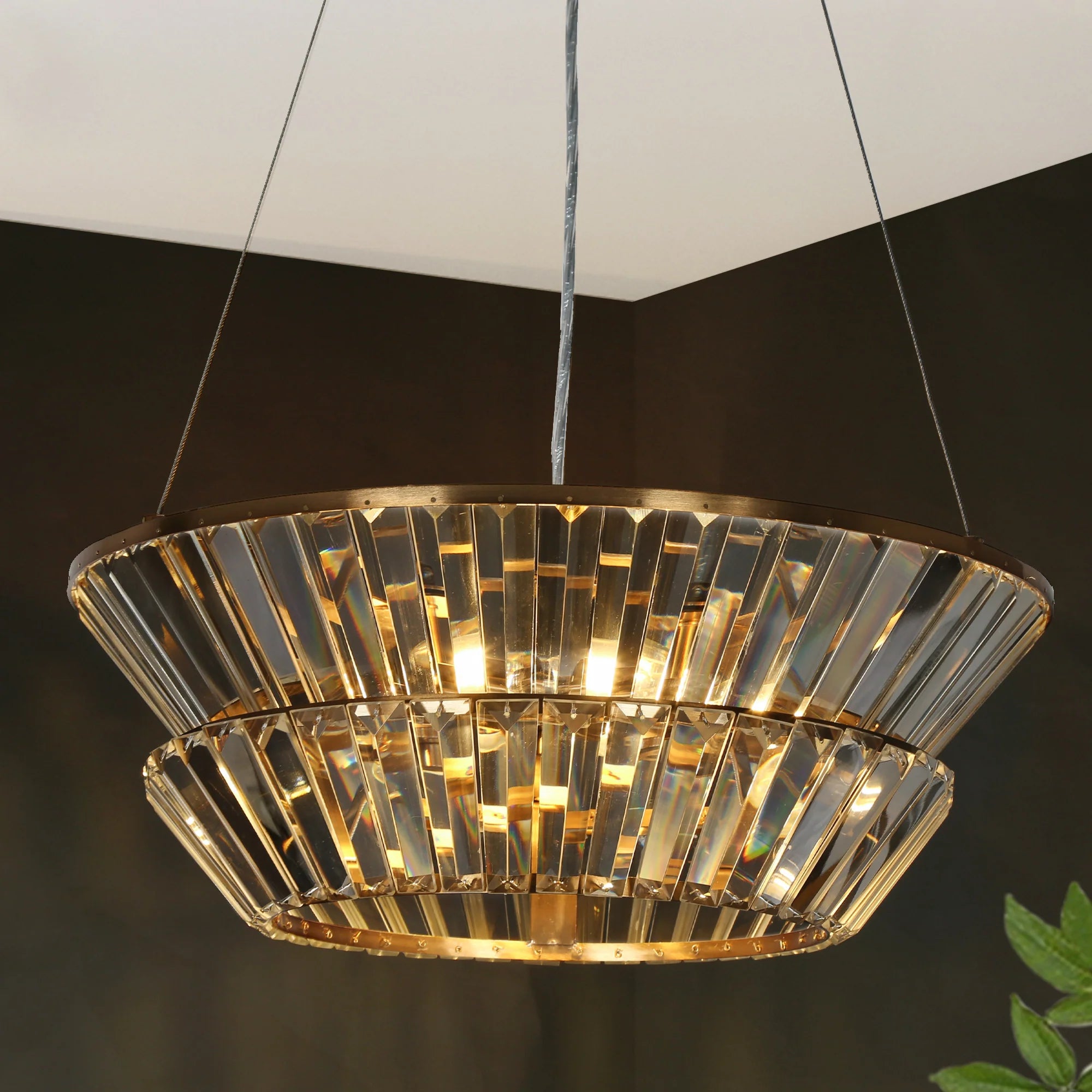 Feinaqy 20" Brass 2-Tiered Modern Crystal Chandelier HA05117